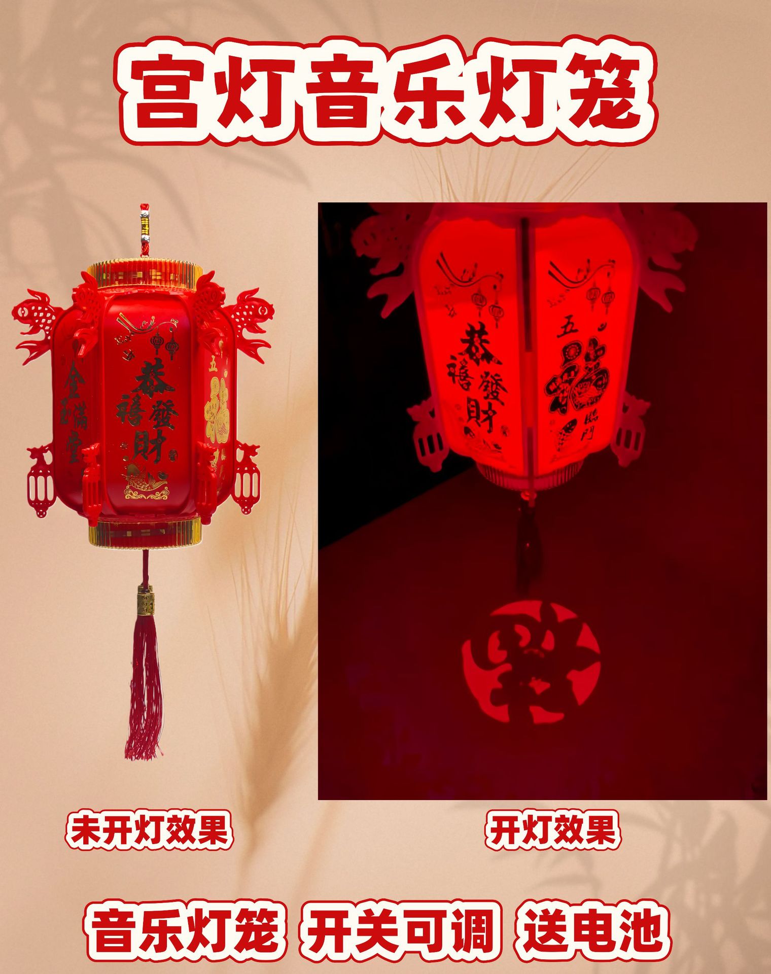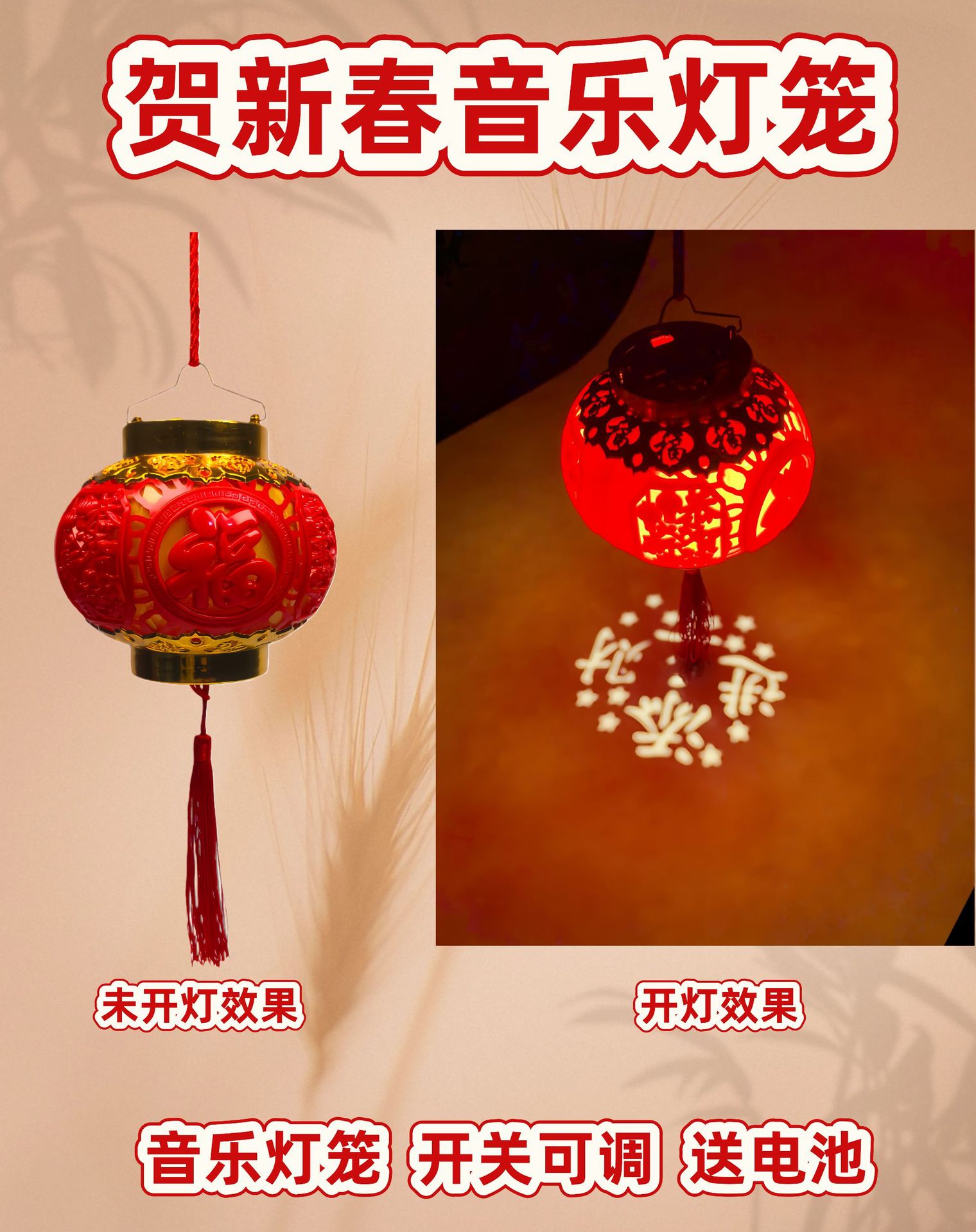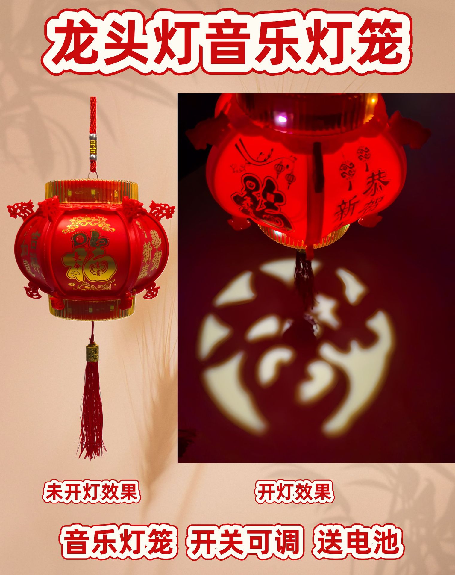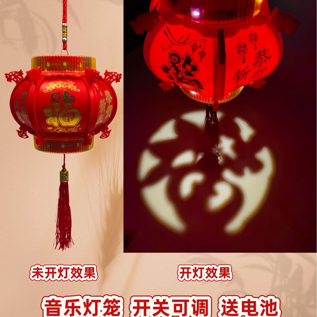 2026马年新款元旦新年春节小灯笼过年儿童手提发光音乐元宵节玩具