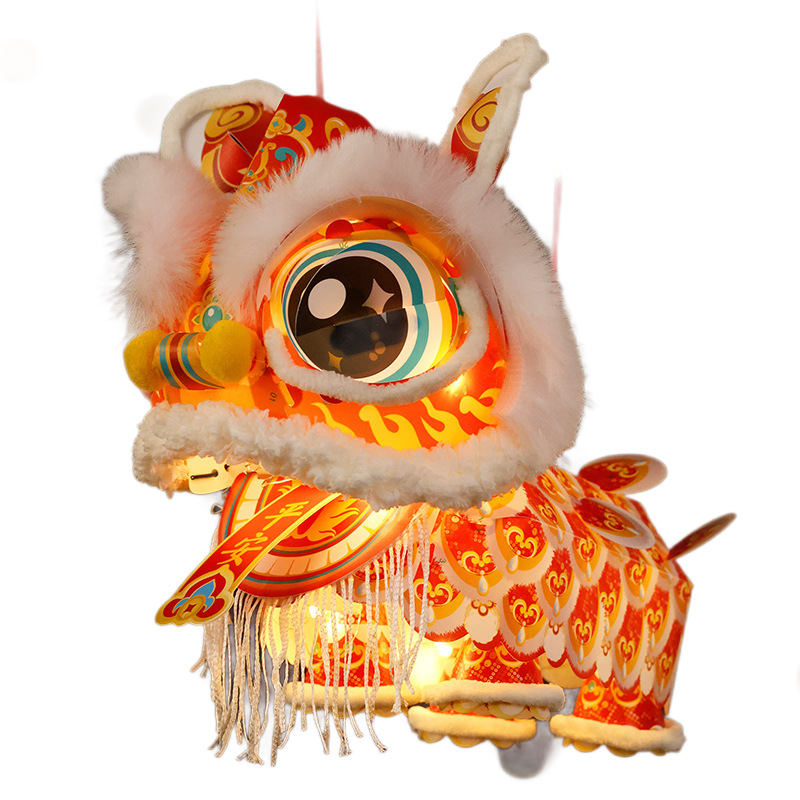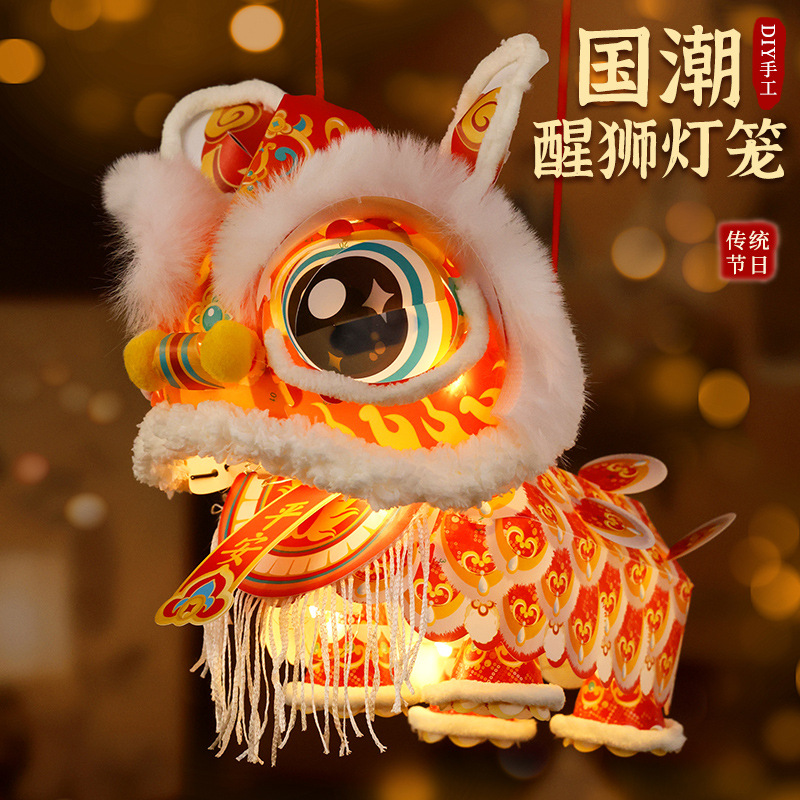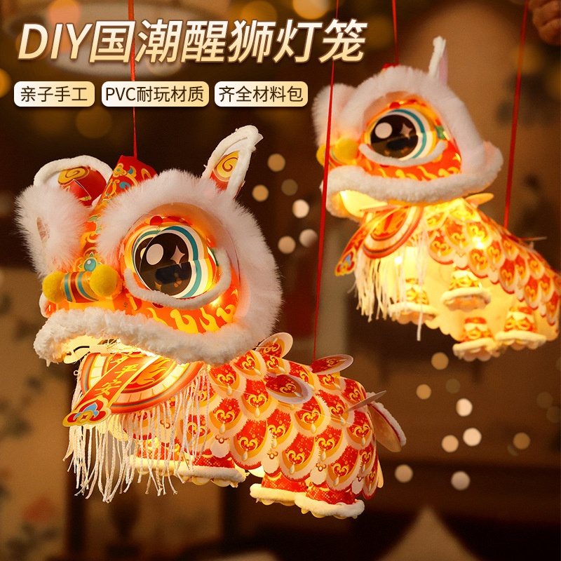 2026新款新年元旦瑞宝醒狮灯笼手工diy儿童制作材料古风狮子花灯