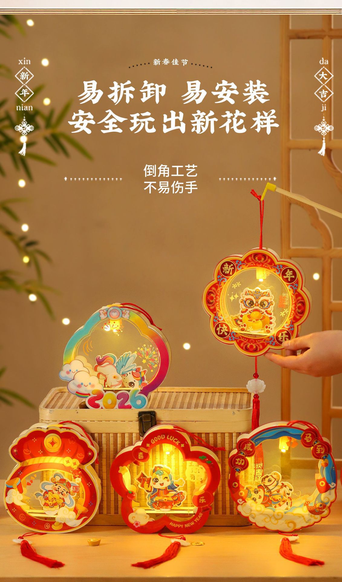 2026马年新春灯笼DIY材料包元旦儿童幼儿园手工手提摇摇乐灯花灯