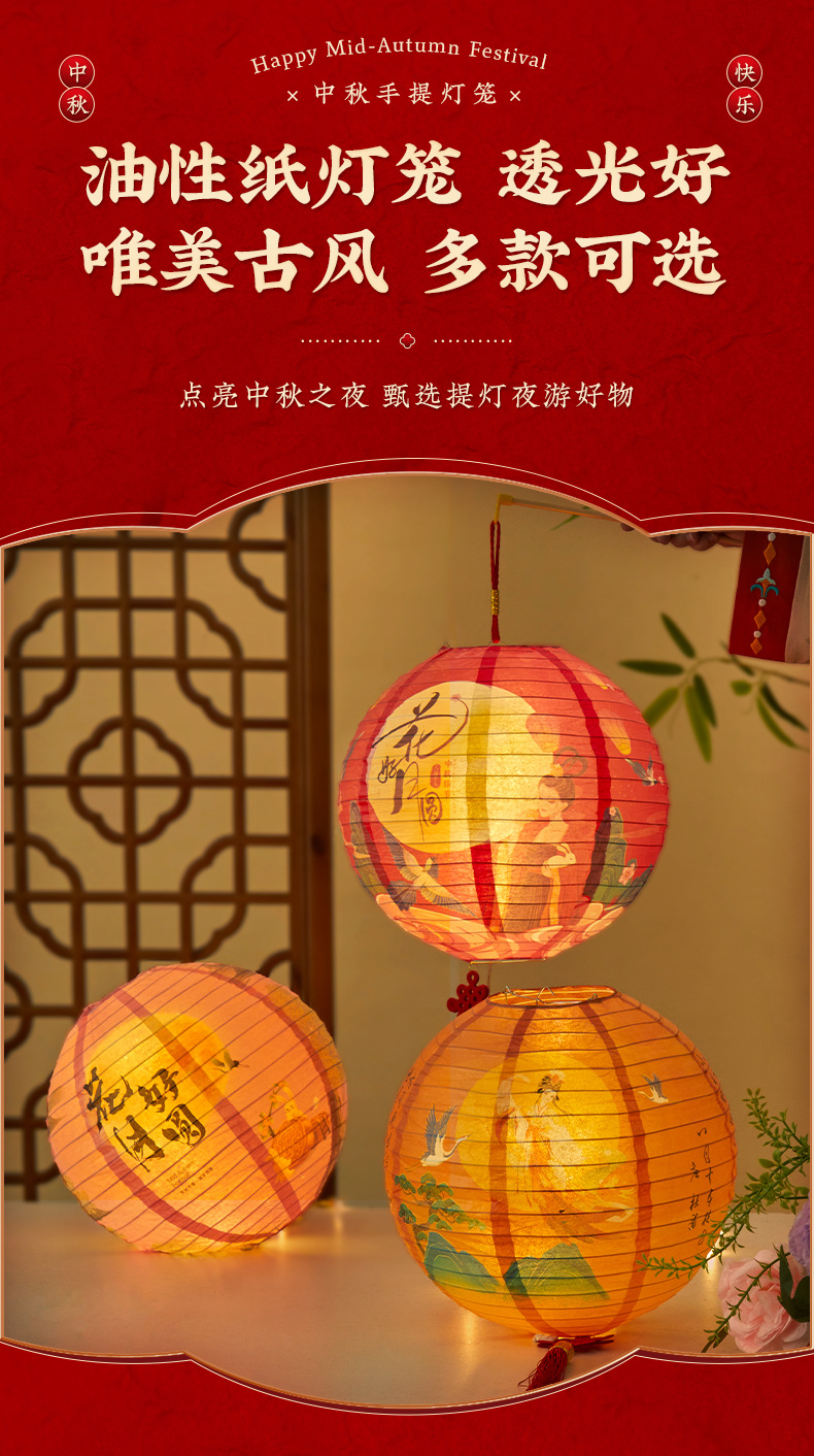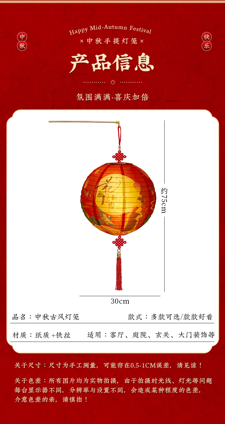 中秋节儿童古风手提灯笼拍照氛围感发光国风诗词汉服古装写真道具