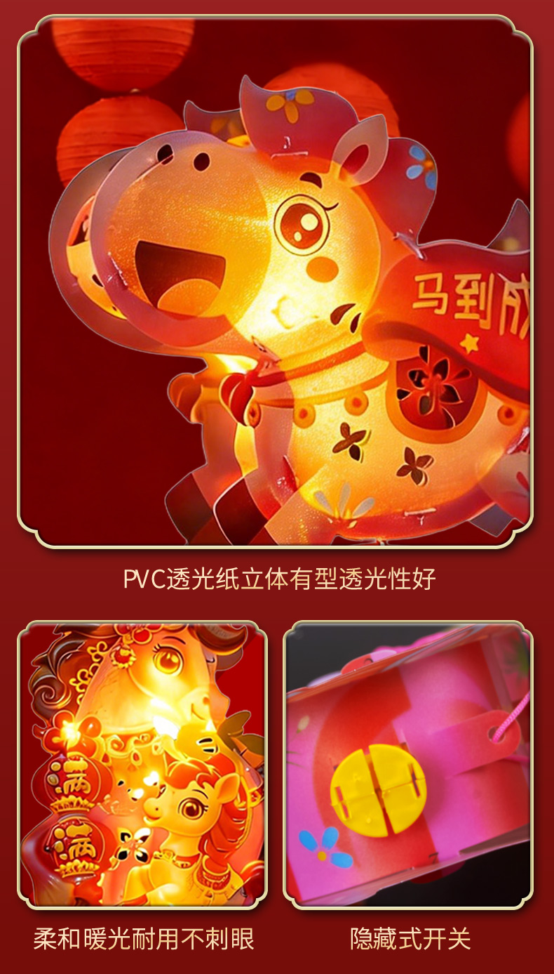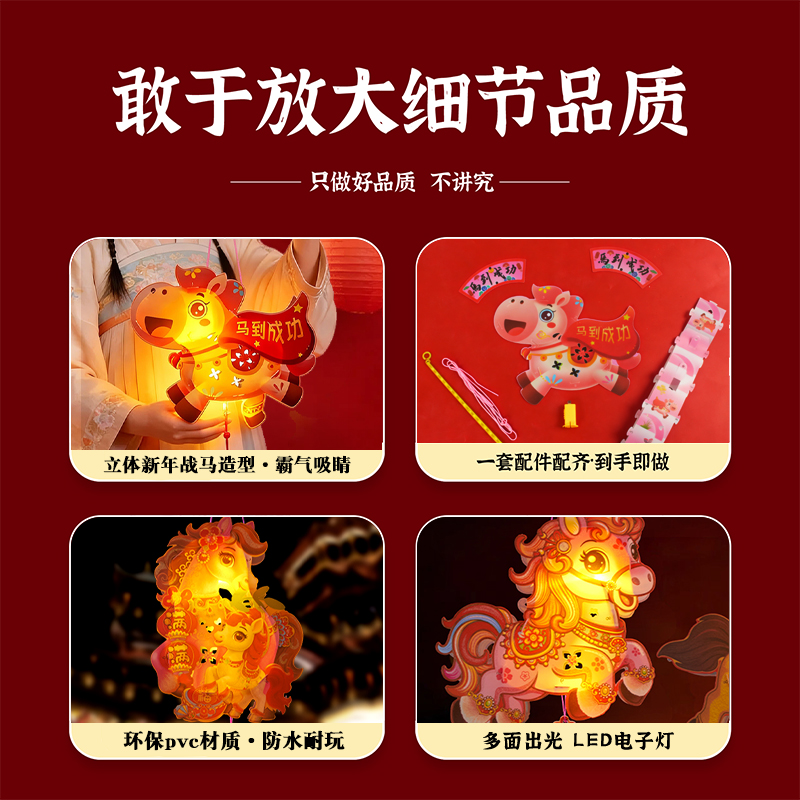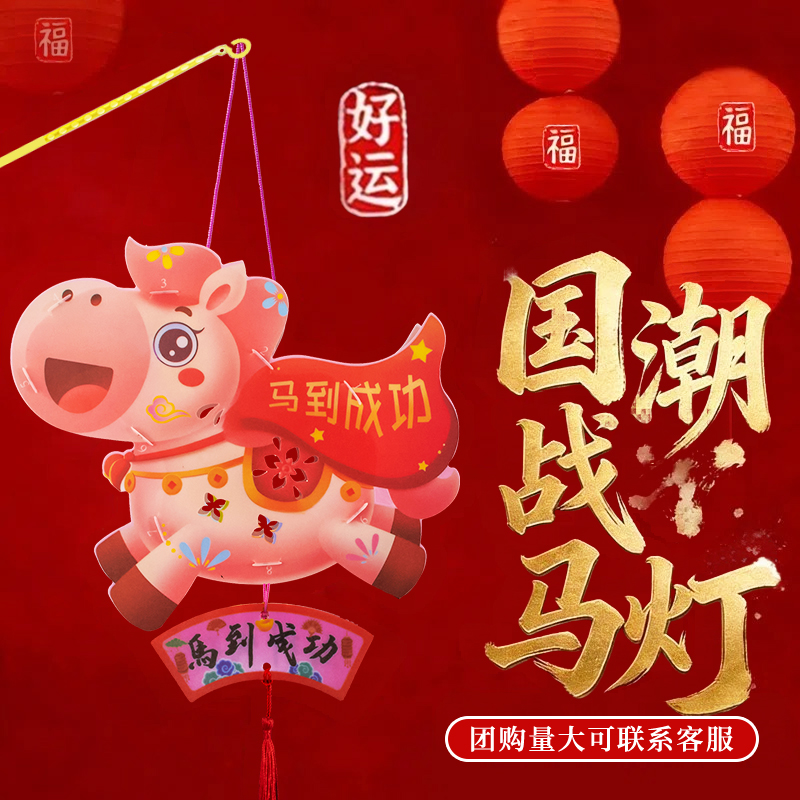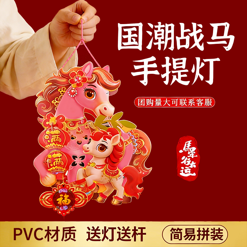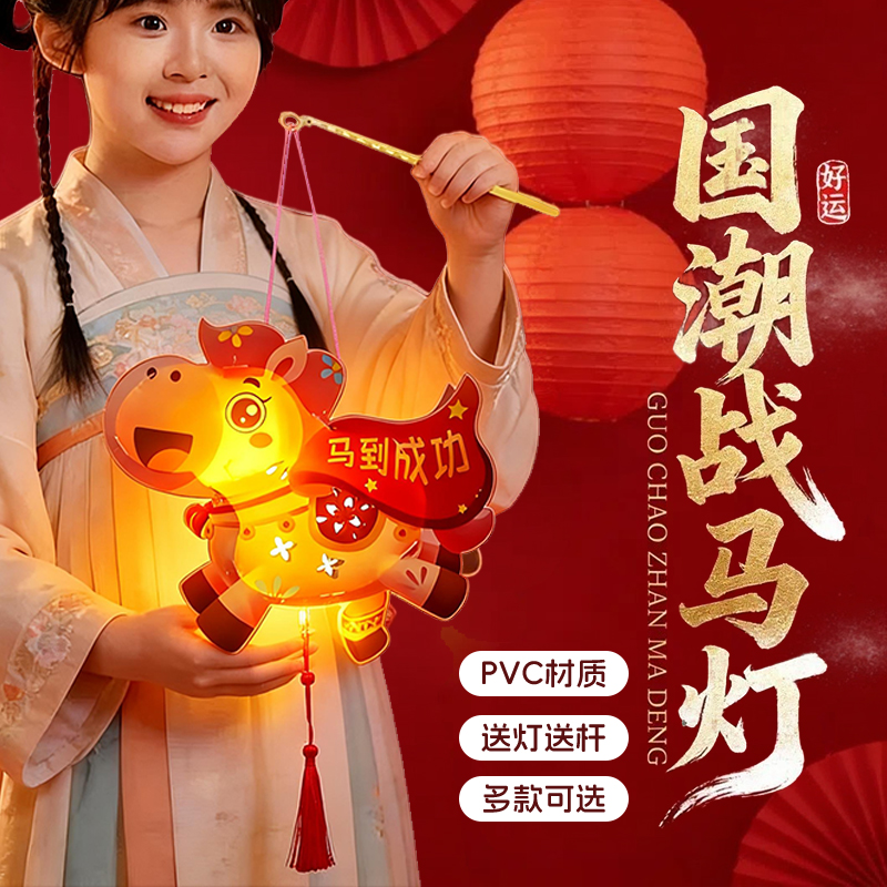 ✅新年diy灯笼手工制作材料包儿童手提发光马年战马花灯亲子活动