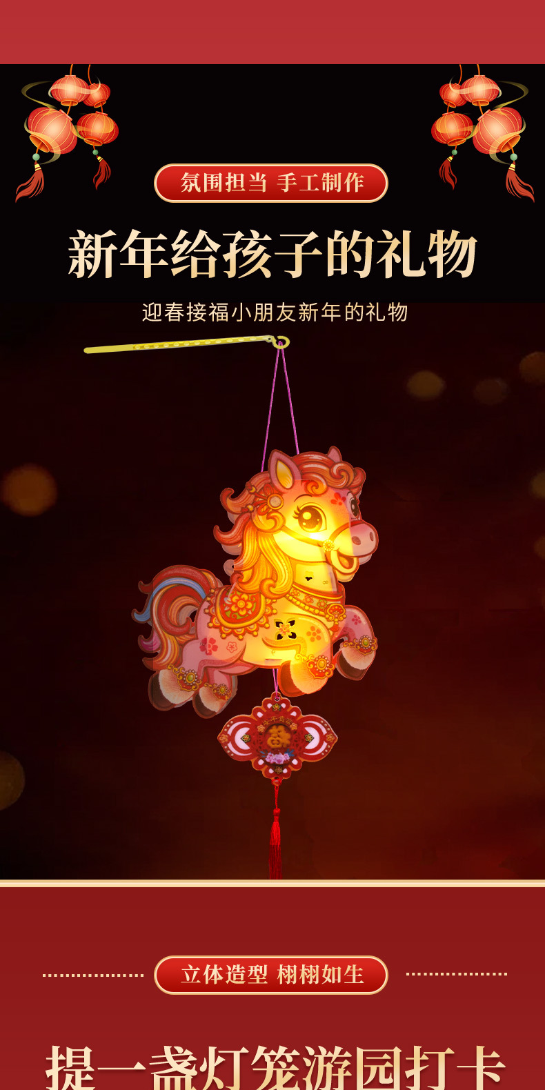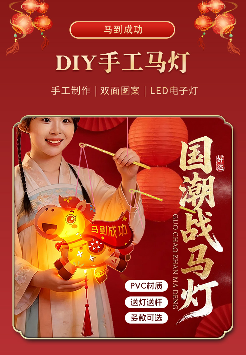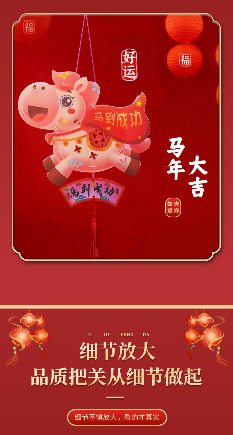 ✅新年diy灯笼手工制作材料包儿童手提发光马年战马花灯亲子活动