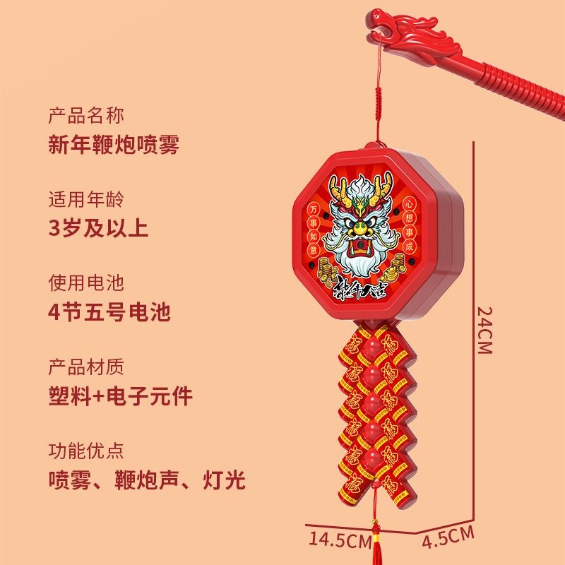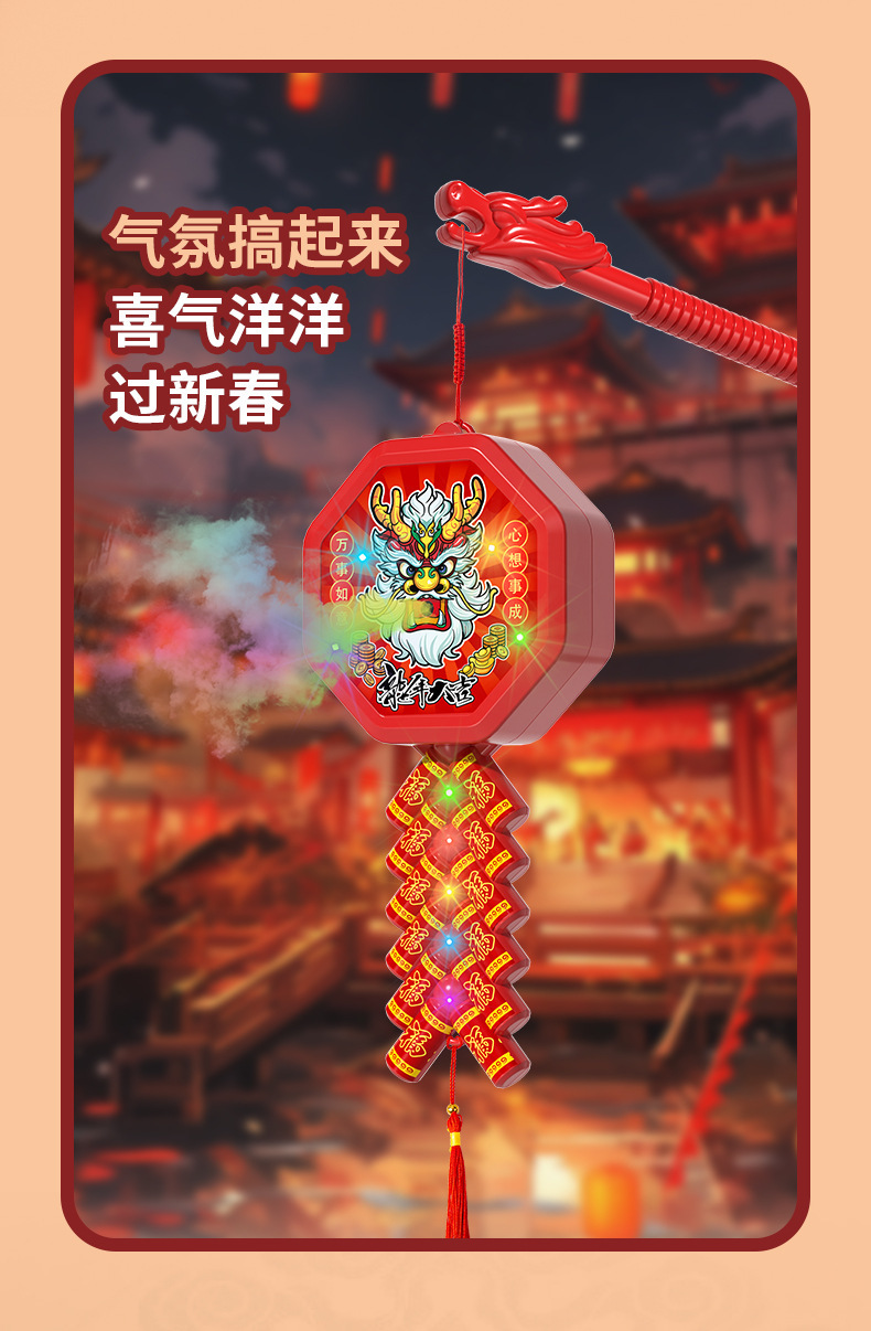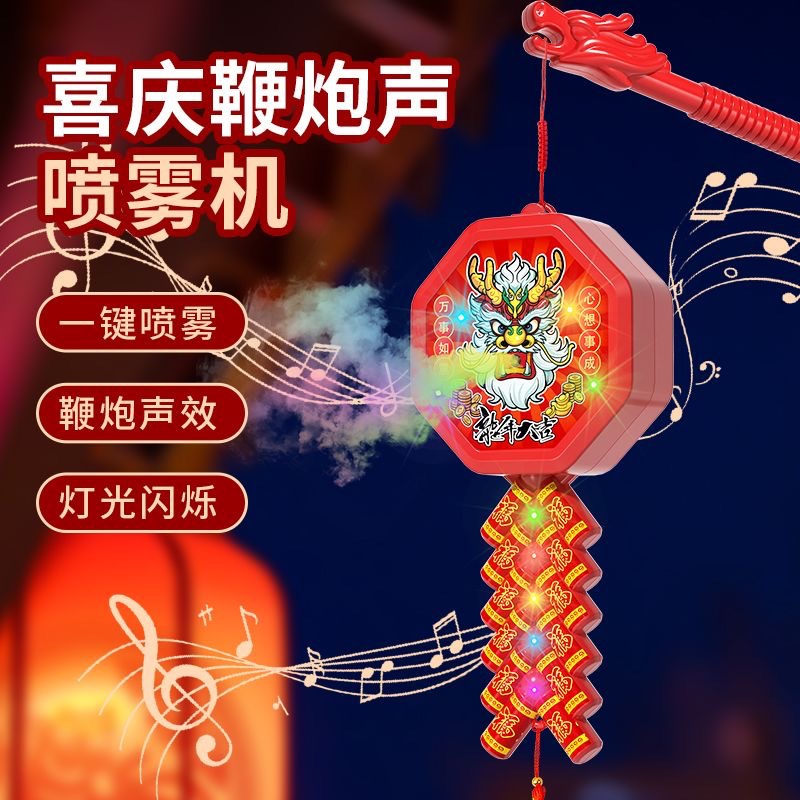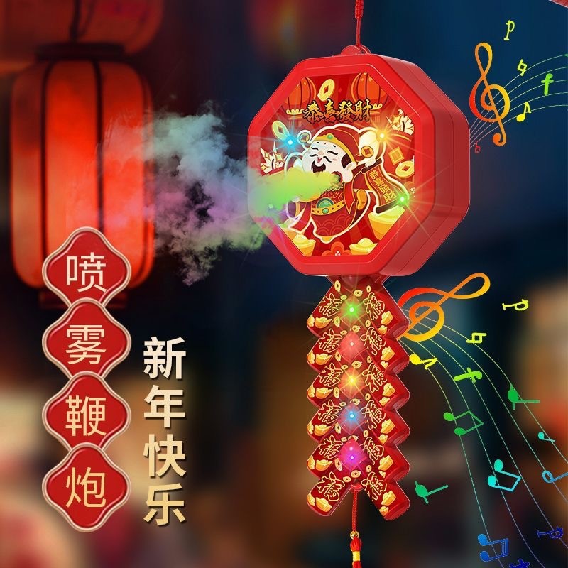 新款新年电动喷雾鞭炮手提灯笼儿童礼物玩具春节元宵夜市摆批发