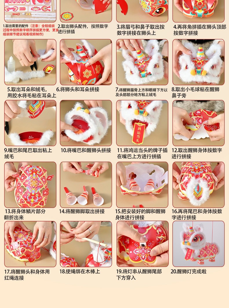 2026新款狮子灯笼 新年节日手工diy儿童材料包新年手提花灯玩具