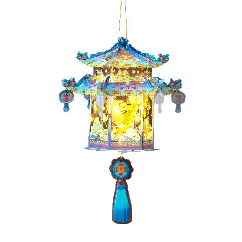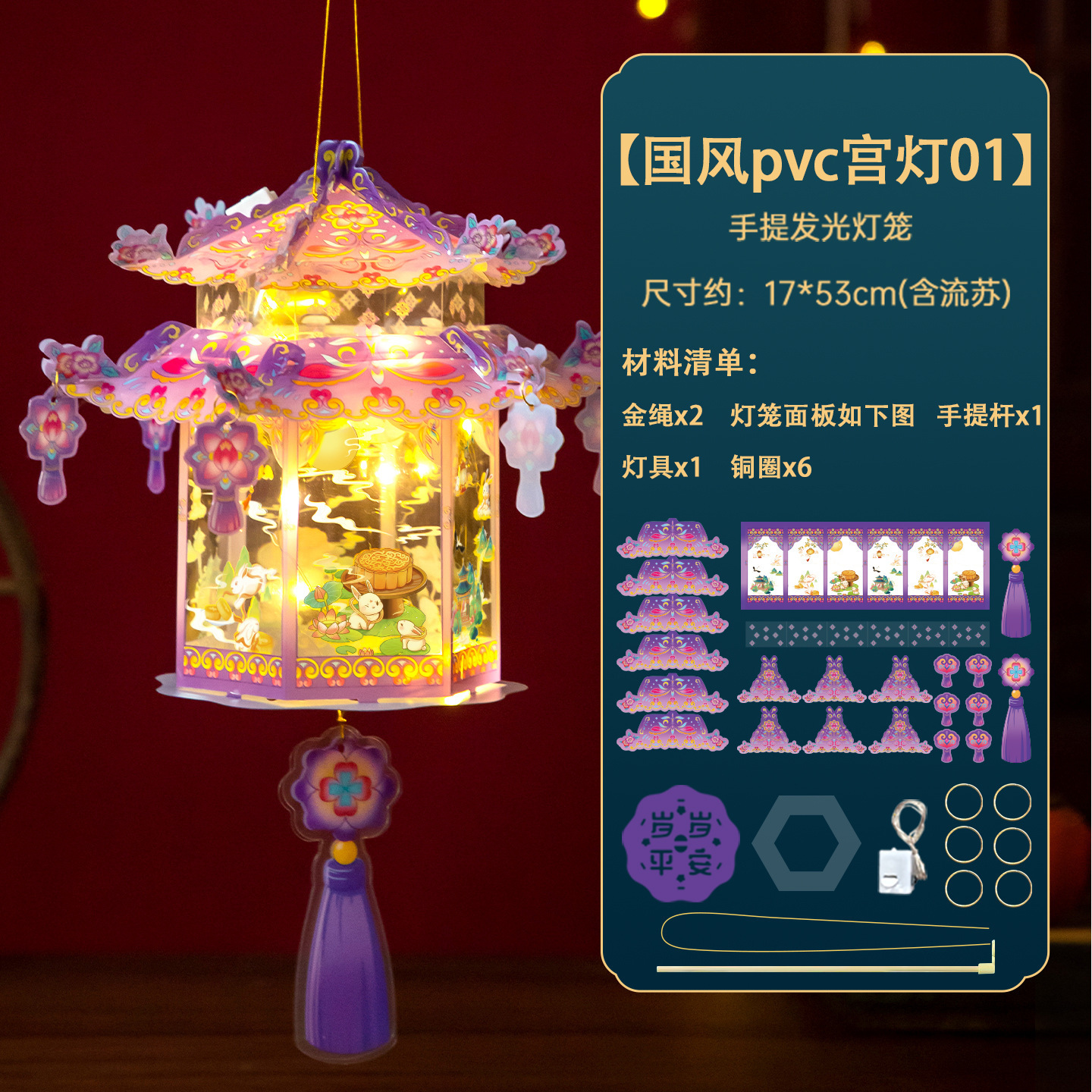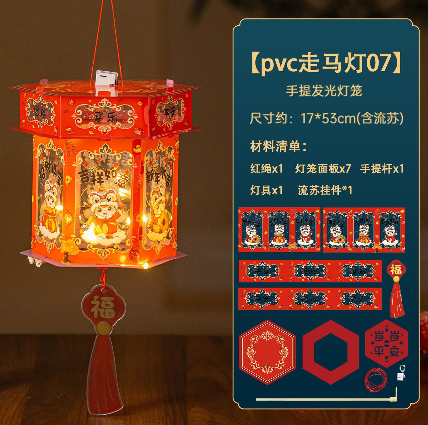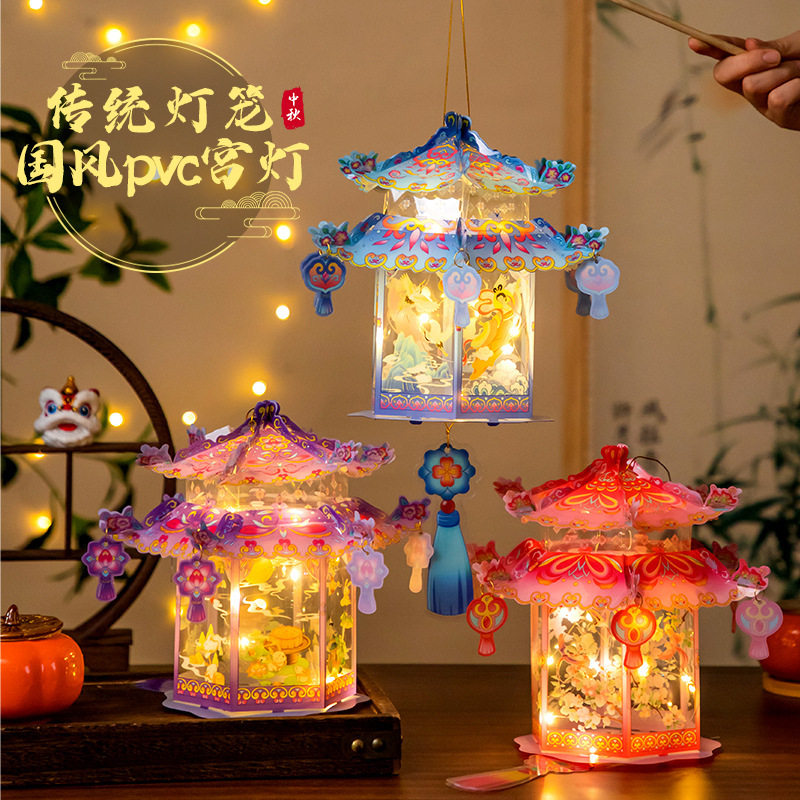 新年儿童手提古风宫灯春节过年手工DIY发光PVC灯笼材料包摆摊批发