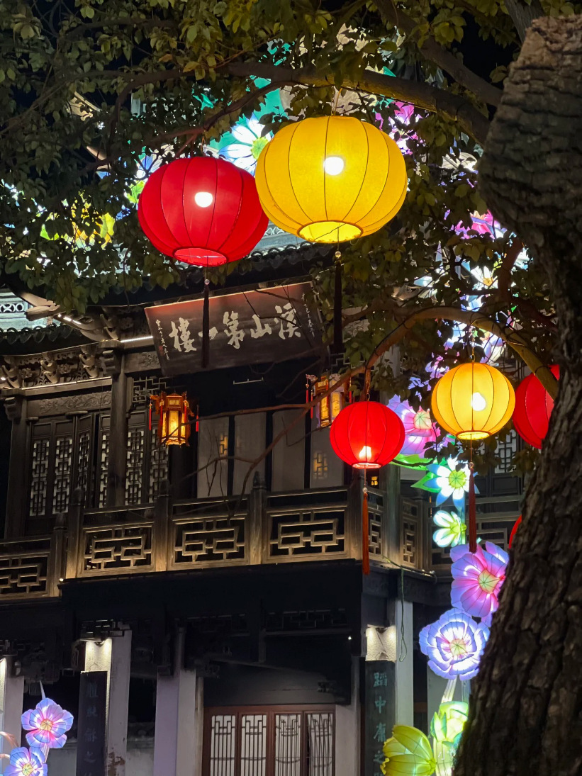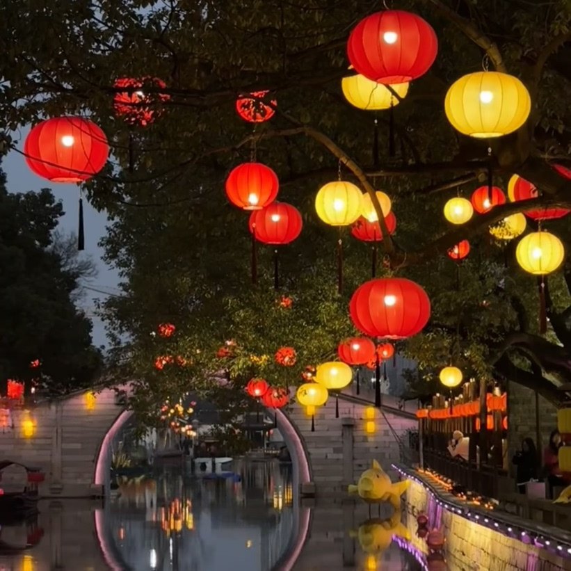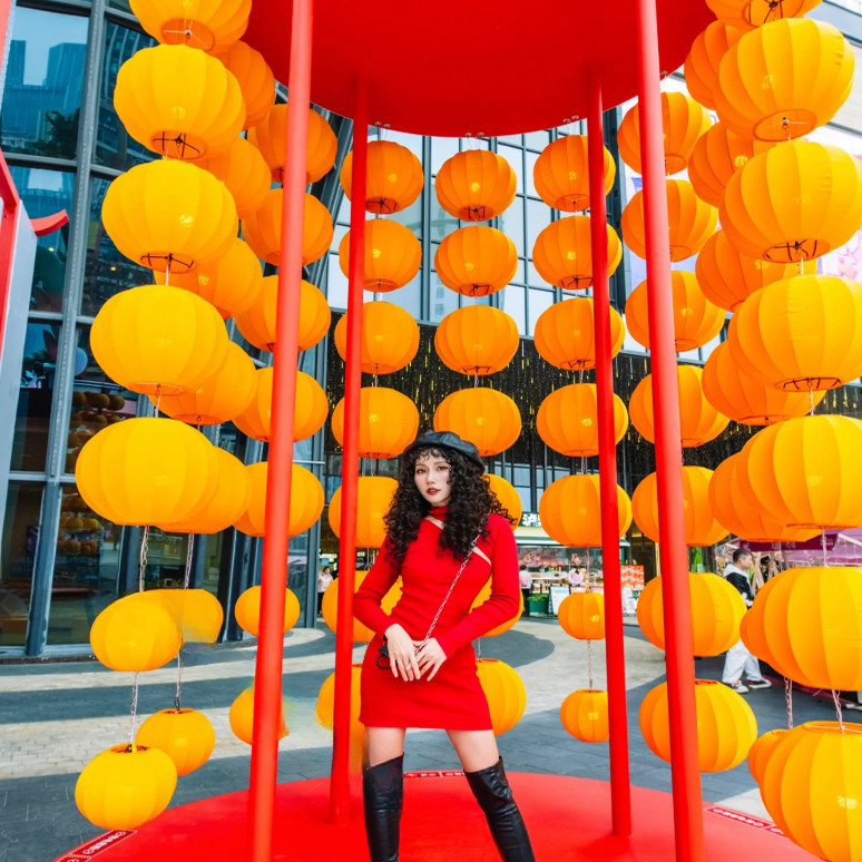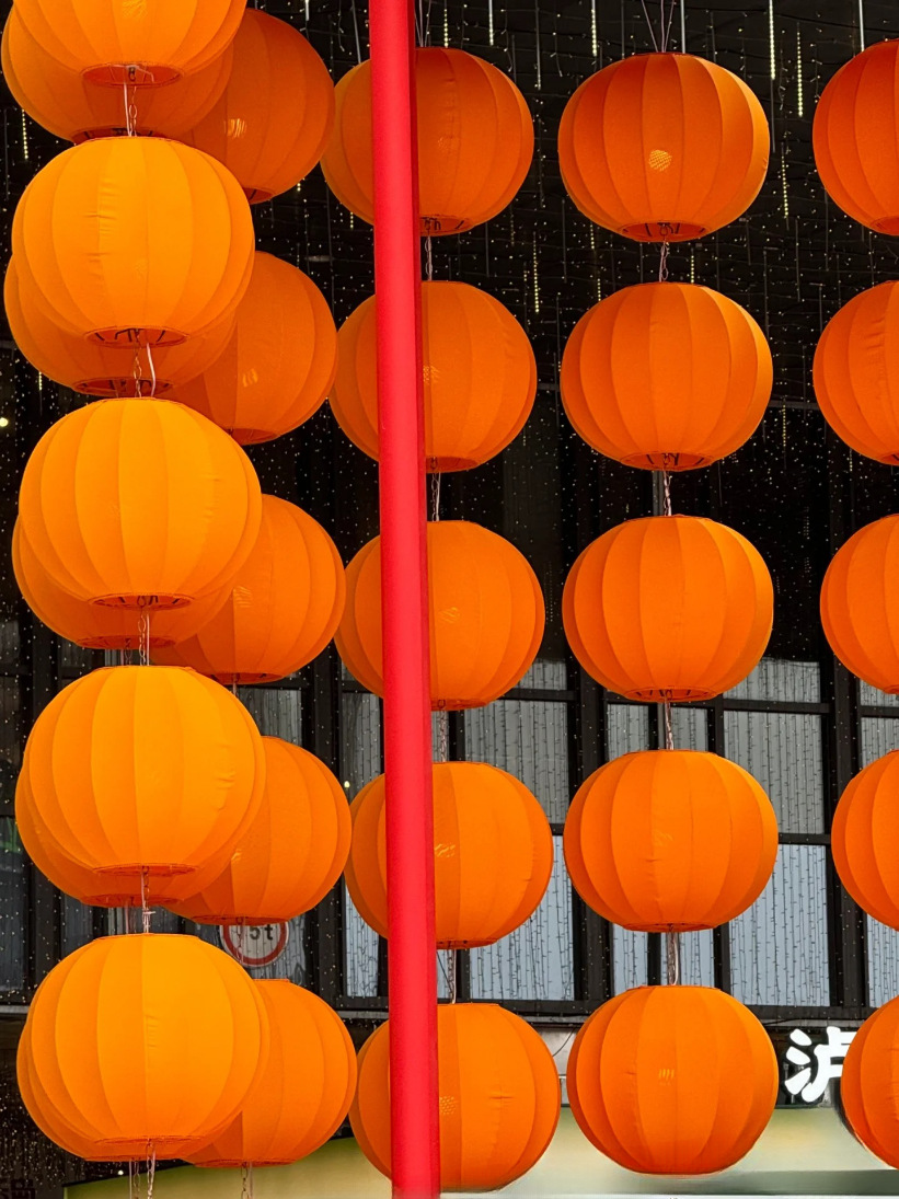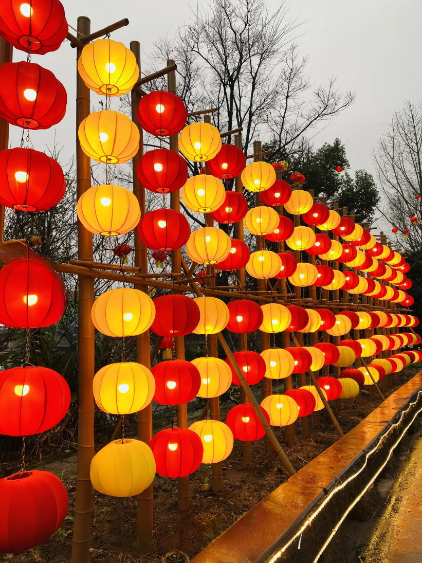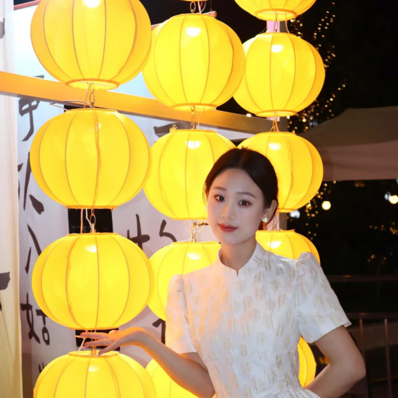 圆形灯笼新年黄色橙色可连串景区元宵节美陈装饰户外防水布艺吊灯