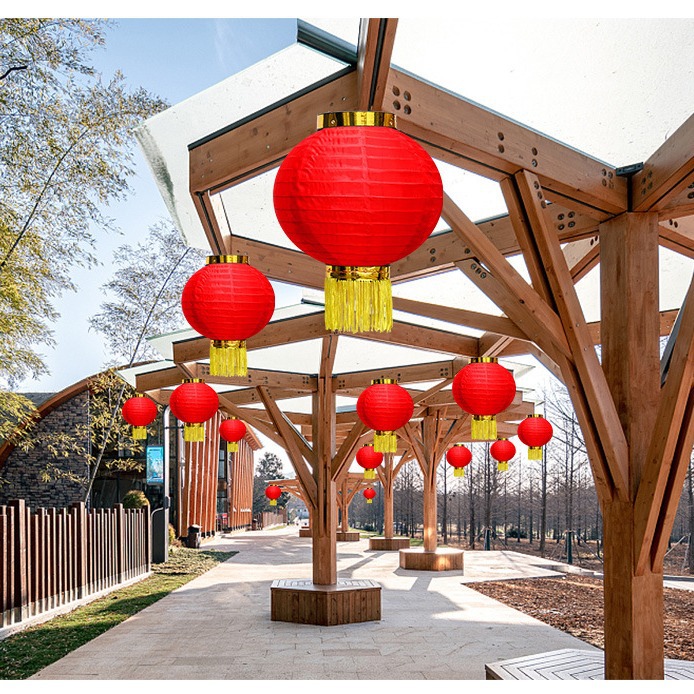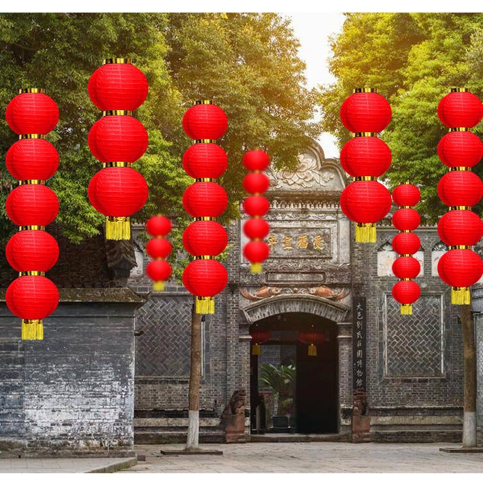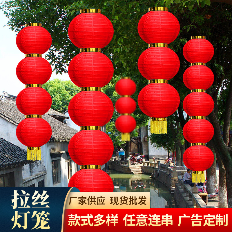 绸布圆拉丝红灯笼可加工定制印logo商场装饰户外悬挂灯笼防水宫灯