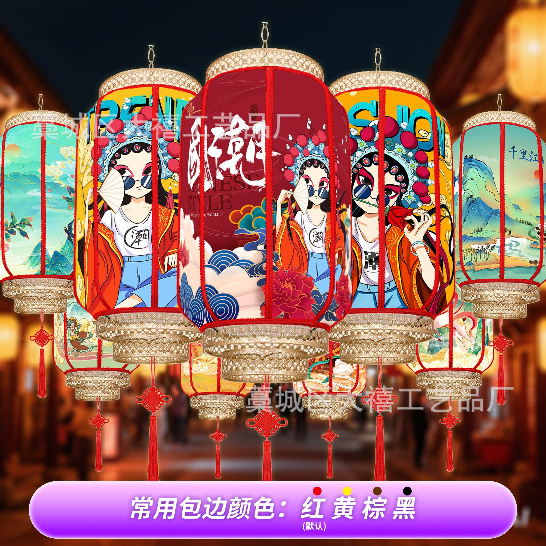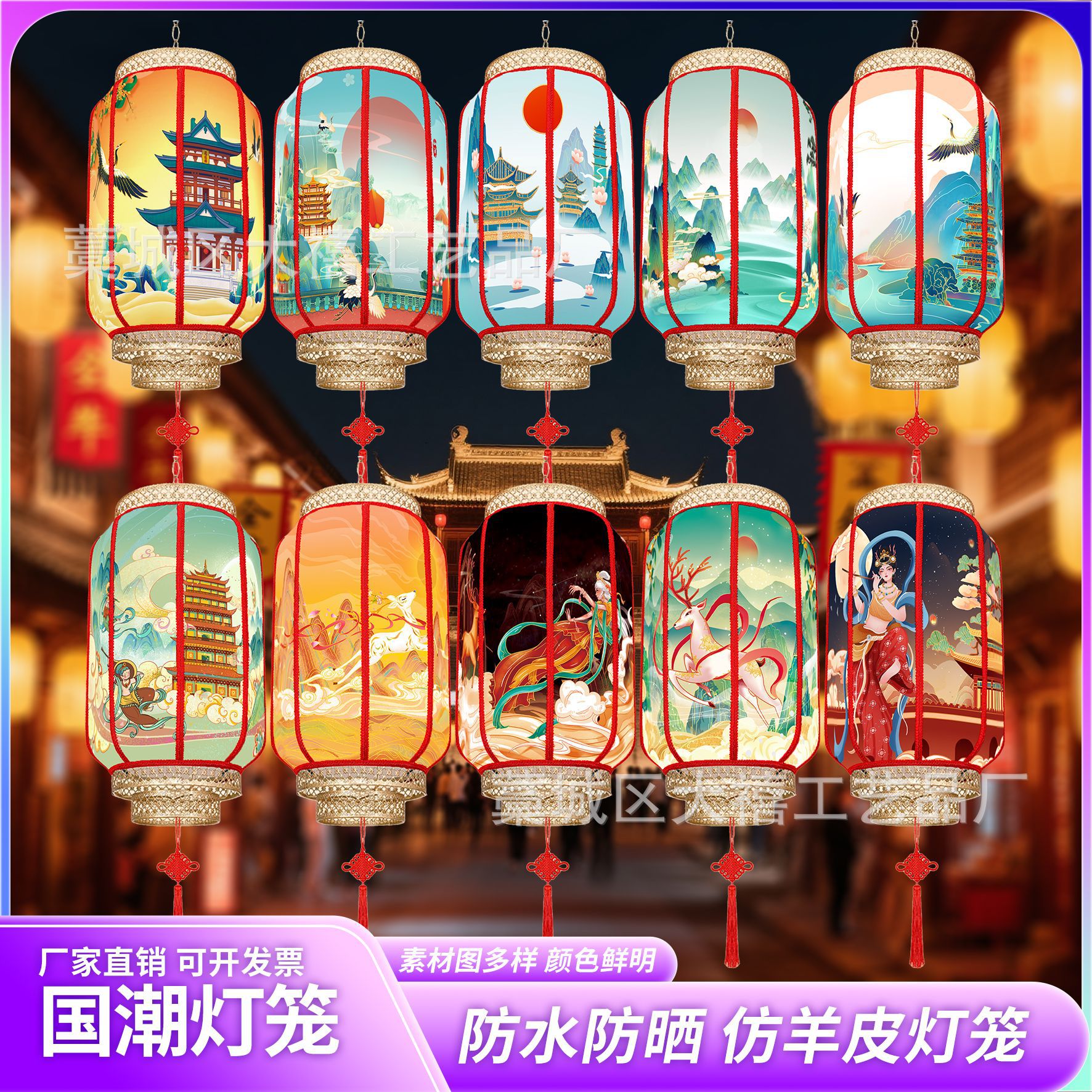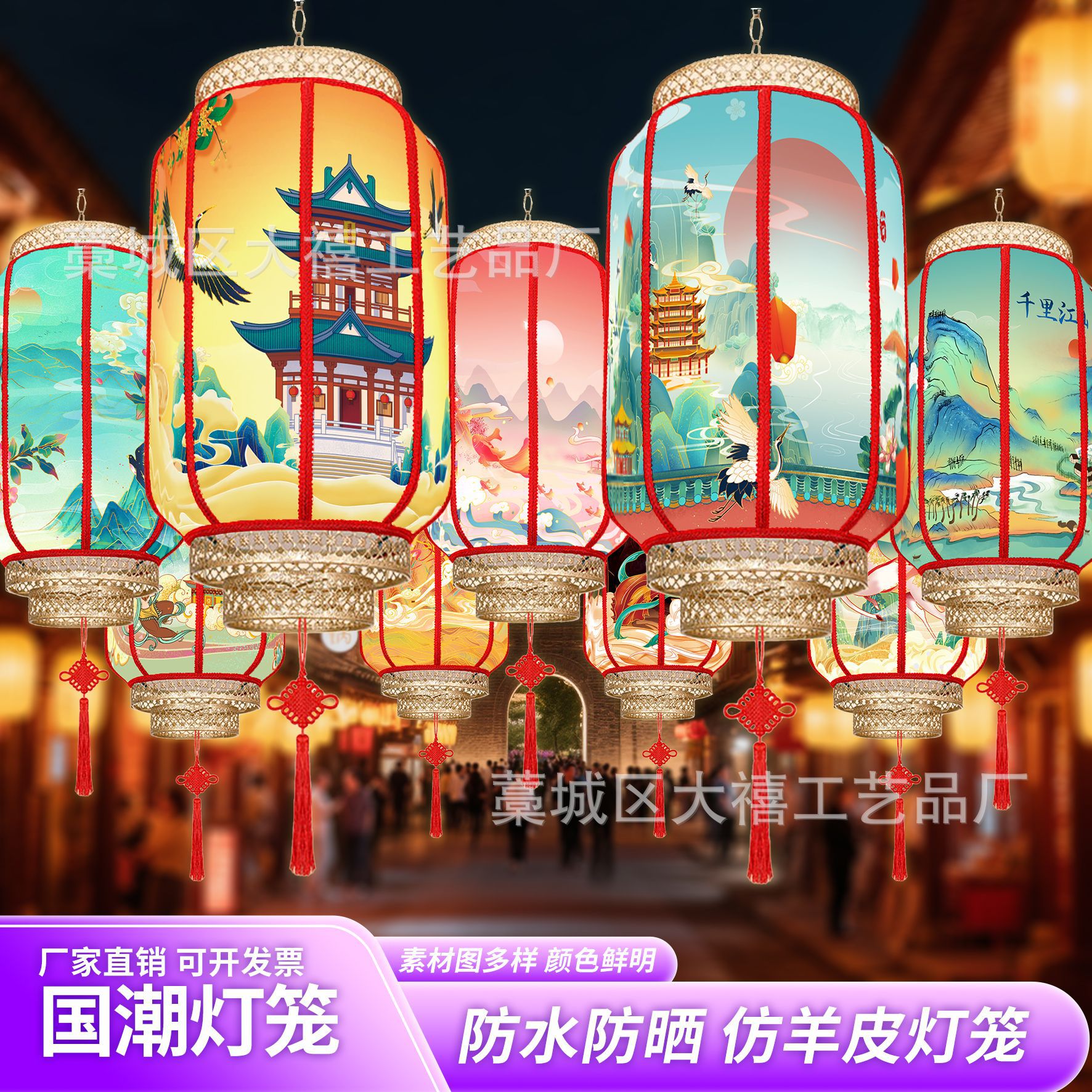 中国风国潮灯笼仿羊皮户外防水连串吊灯广告定制景区新中式挂灯