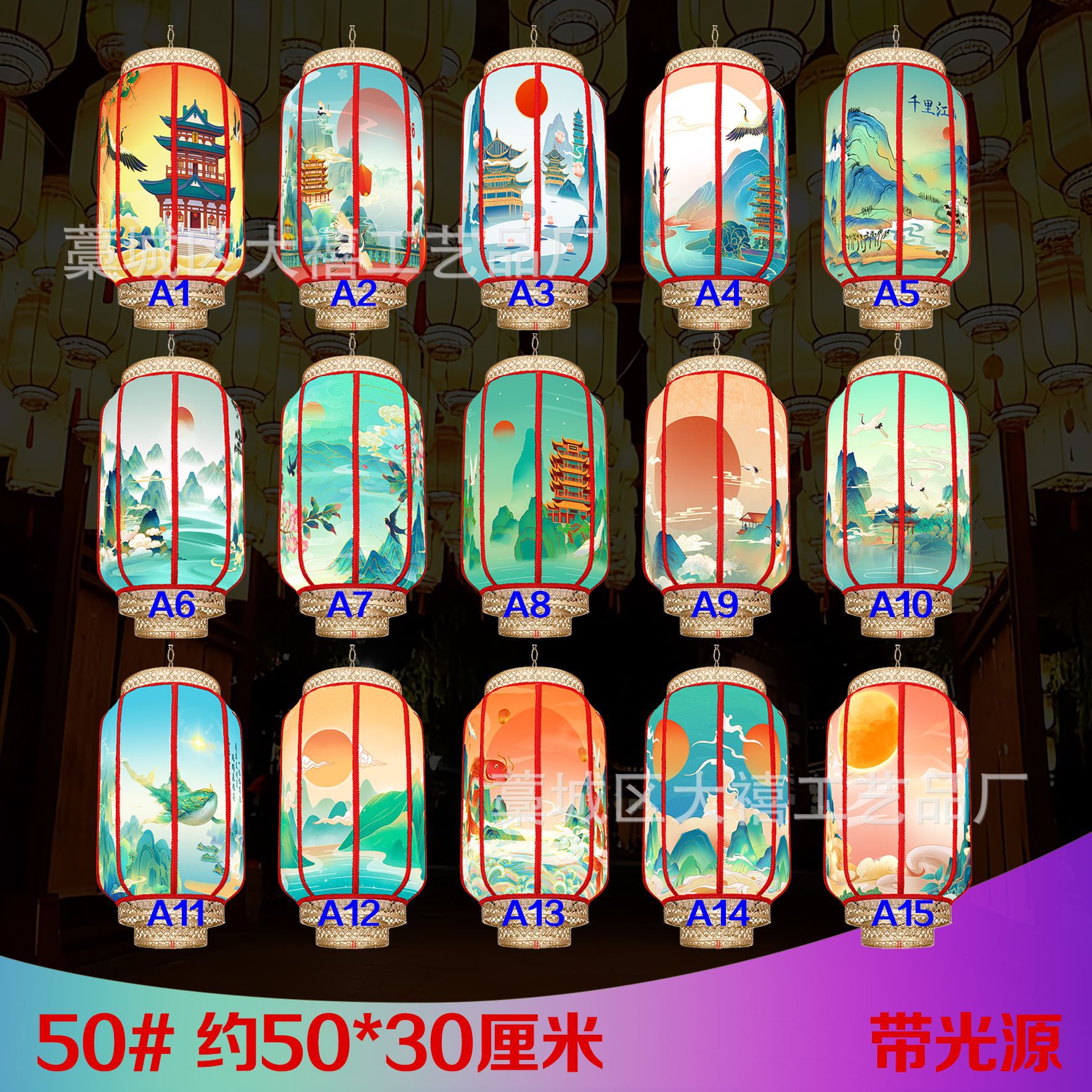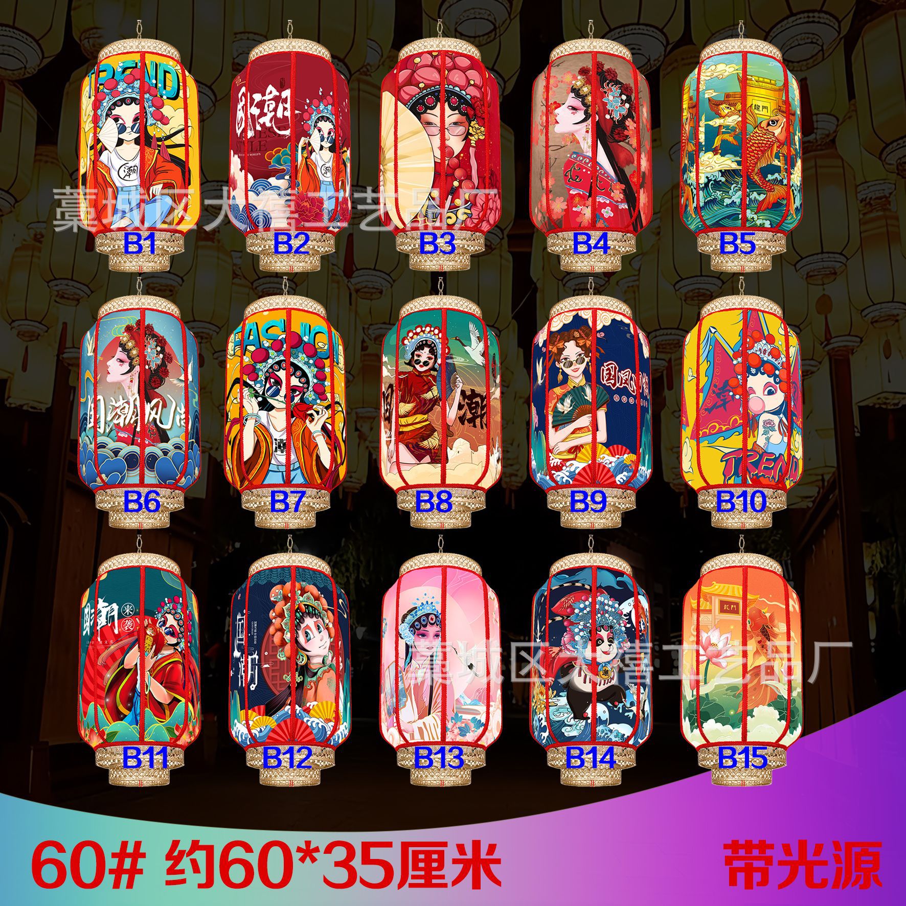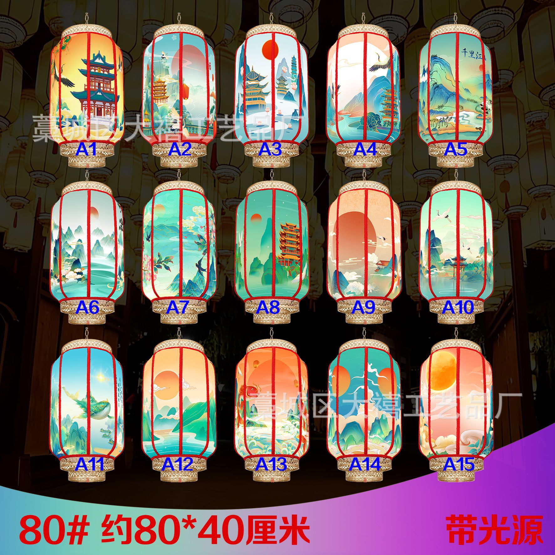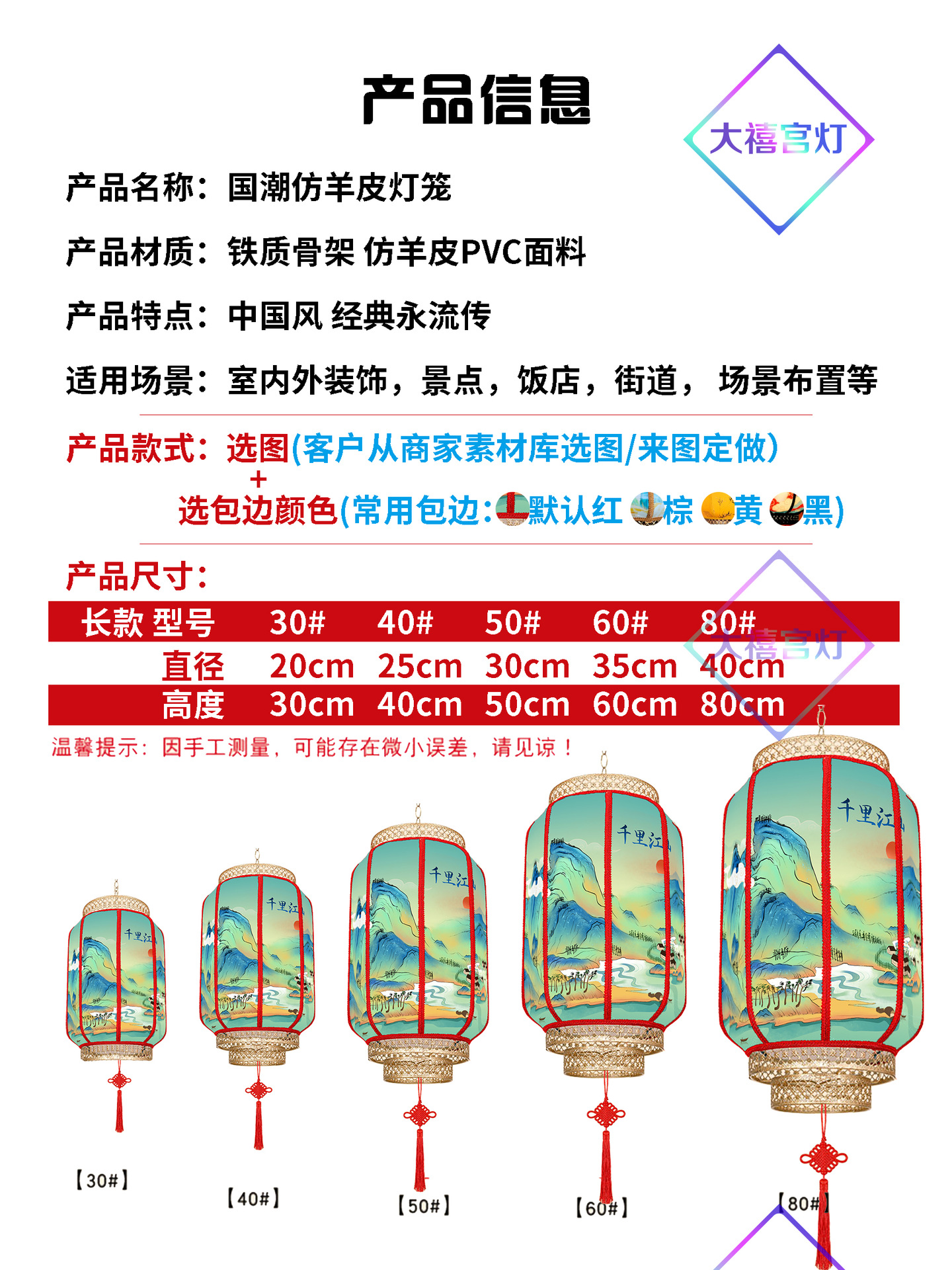 中国风国潮灯笼仿羊皮户外防水连串吊灯广告定制景区新中式挂灯