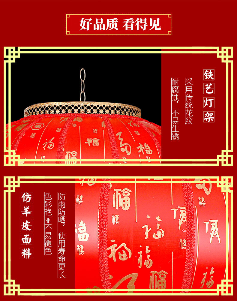 羊皮灯笼户外防水景区别墅大门口装饰中式宫灯阳台定制发光门头