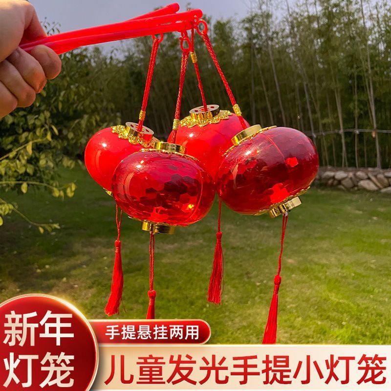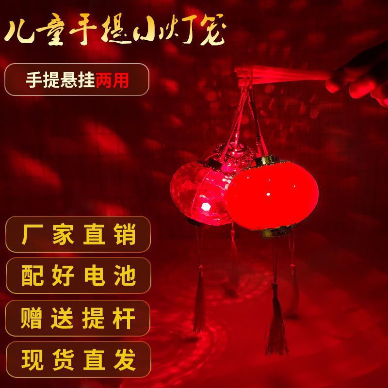 小灯笼儿童手提新款2026发光水晶投影挂饰春节新年玩具红非遗玩具