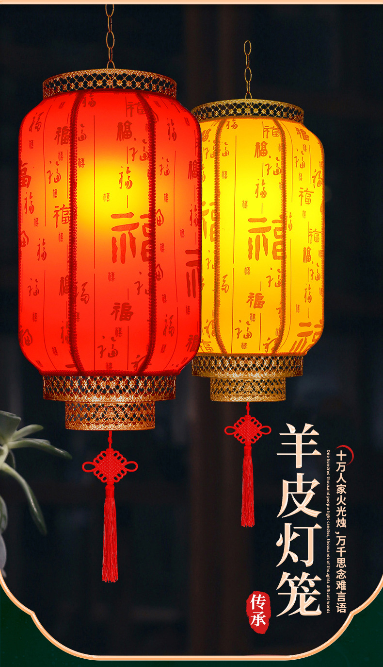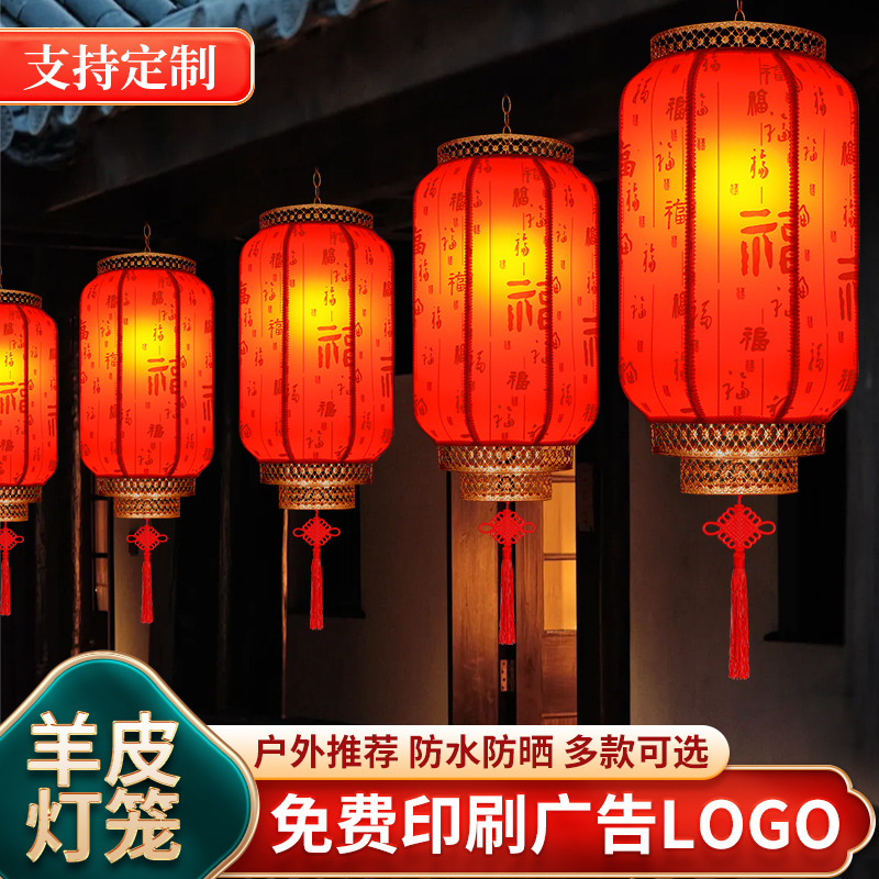 仿羊皮灯笼户外防水防晒广告印字仿古中式装饰冬瓜红灯笼批发