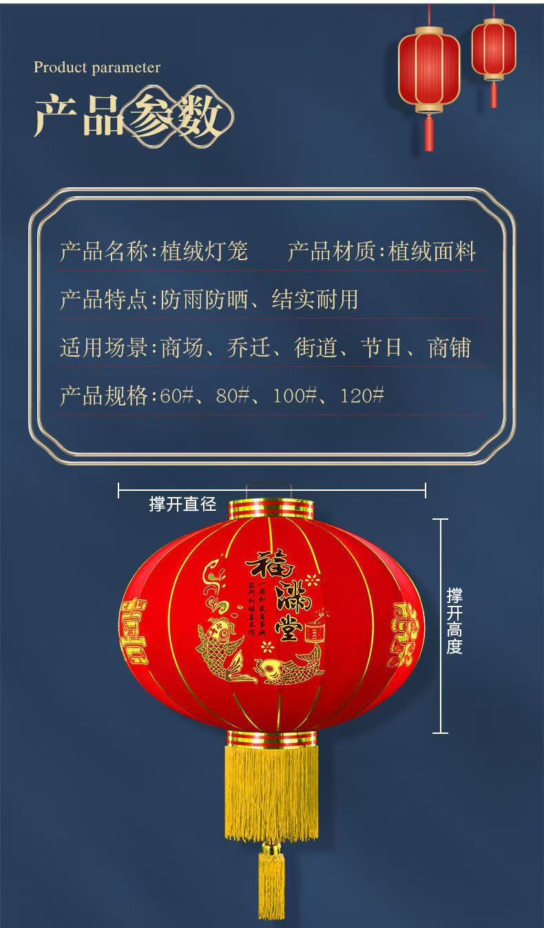 大红灯笼植绒灯笼礼炮结婚仿古羊皮灯笼春节户外防水喜庆节日定制