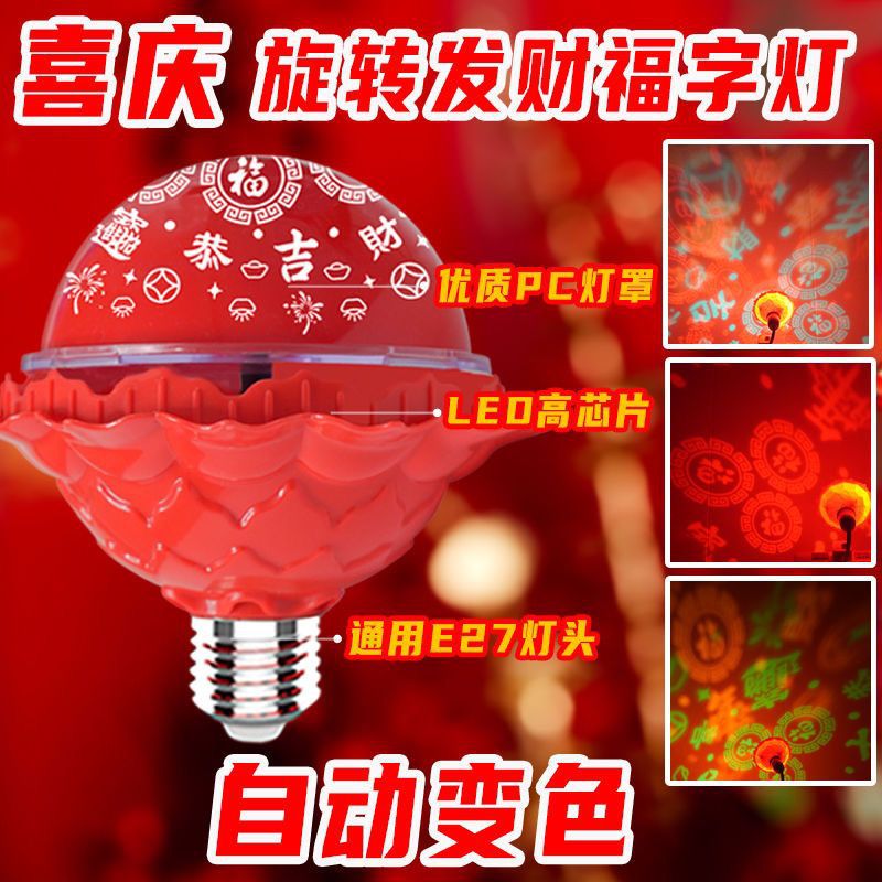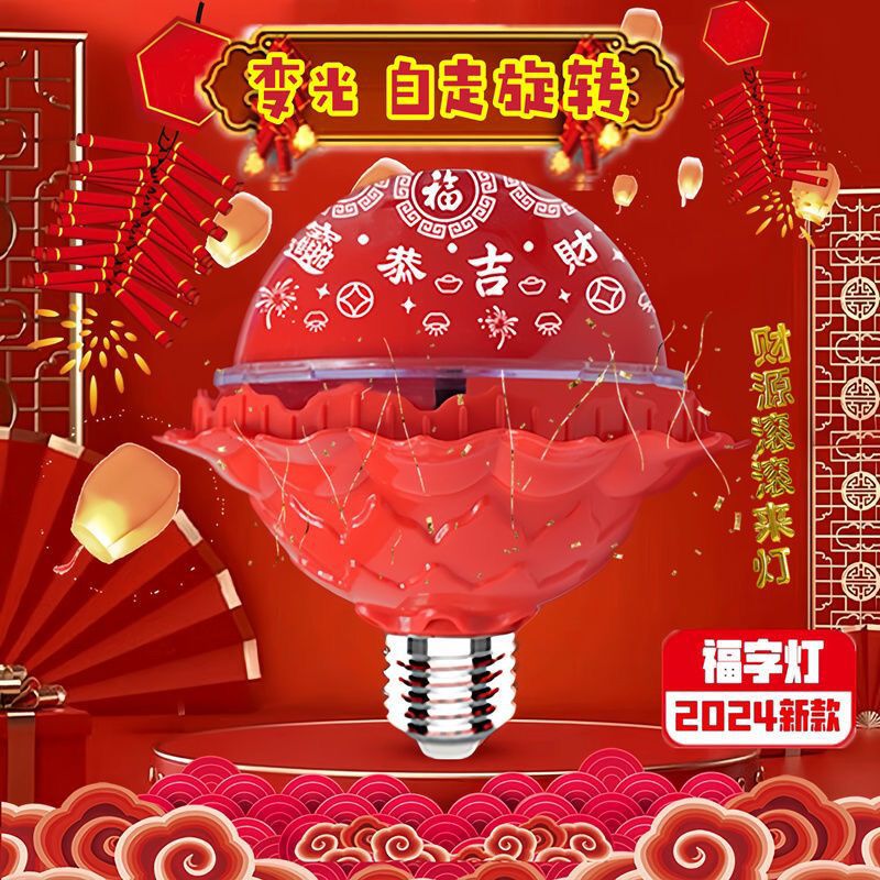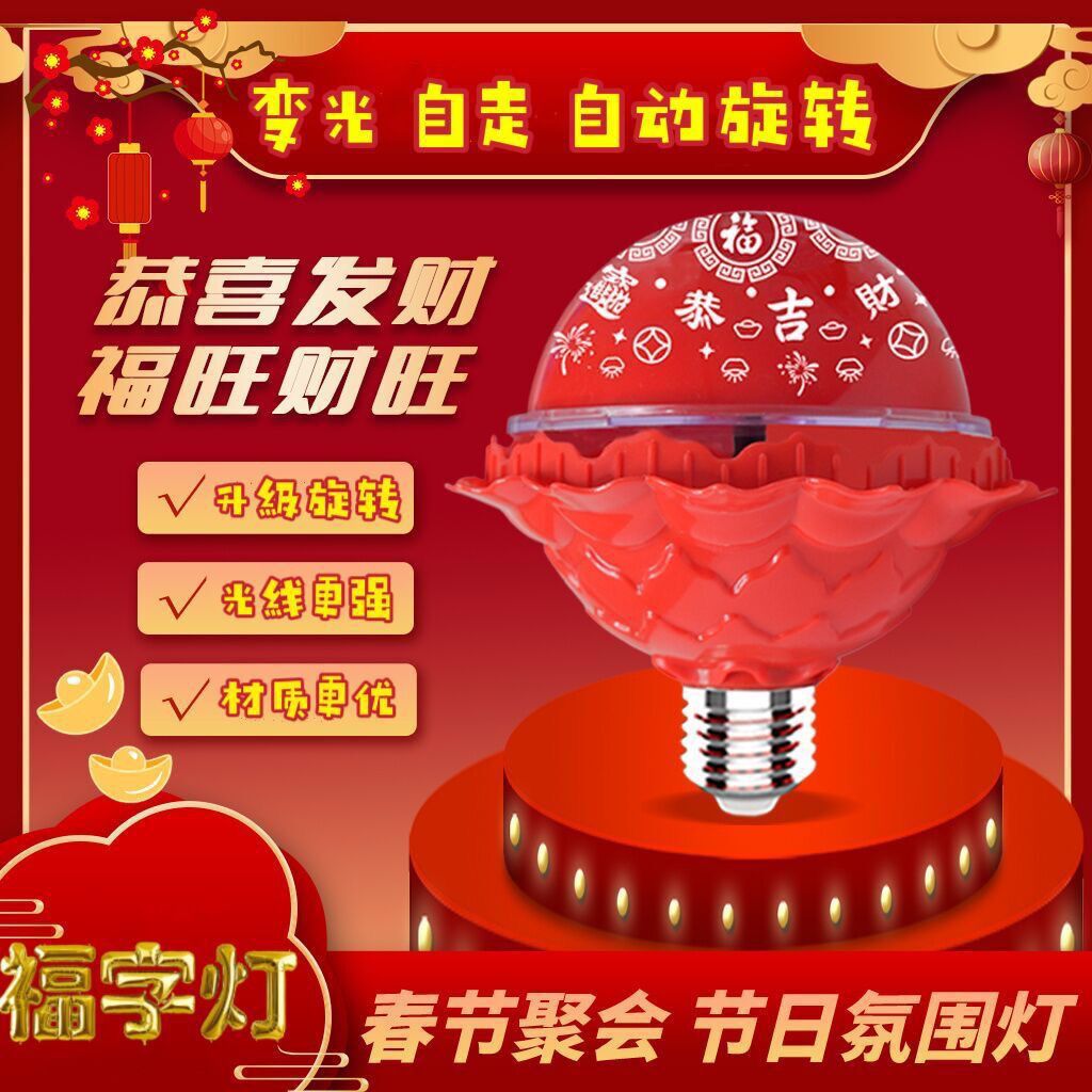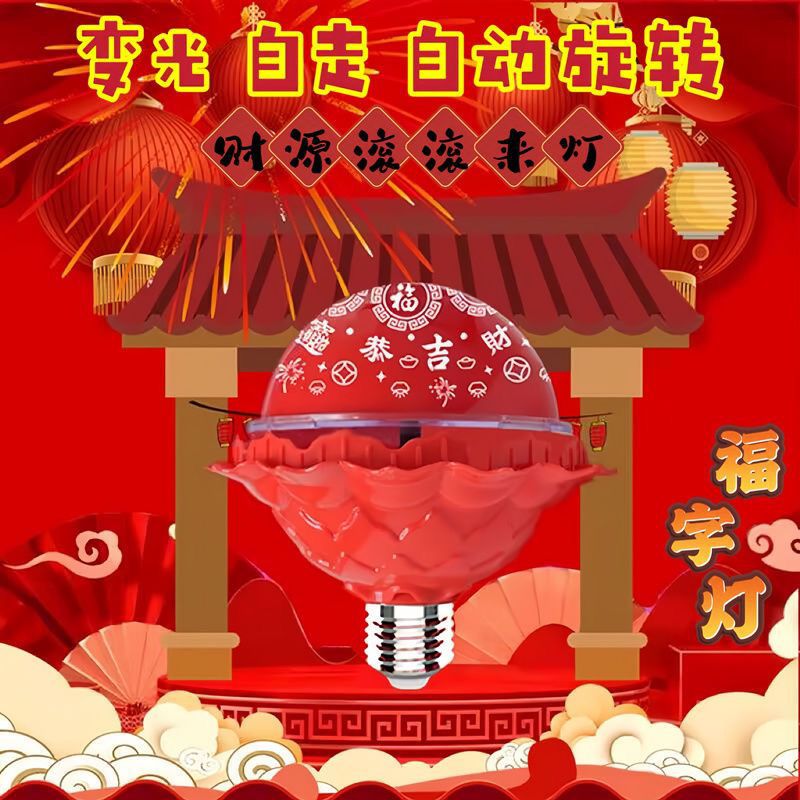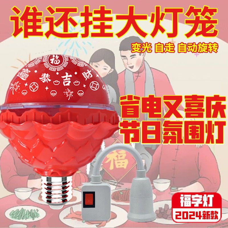 新款喜庆自动旋转福字灯变色彩灯2026年灯笼七彩旋转彩灯装饰灯