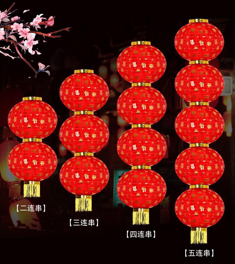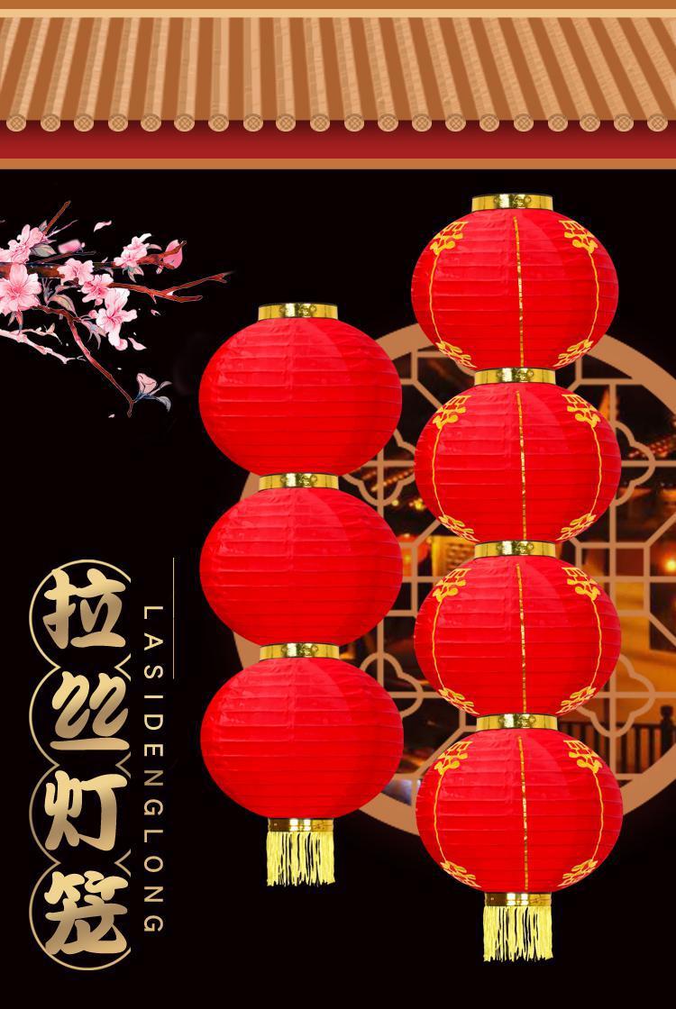 大红拉丝连串灯笼户外防水三四五连串新年装饰舞蹈折叠婚庆红灯笼