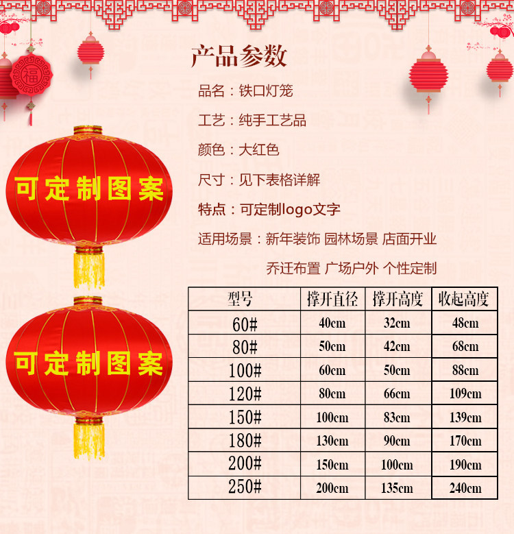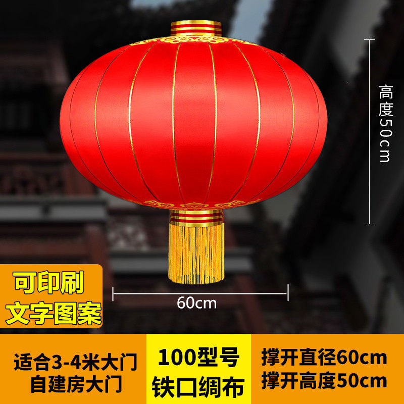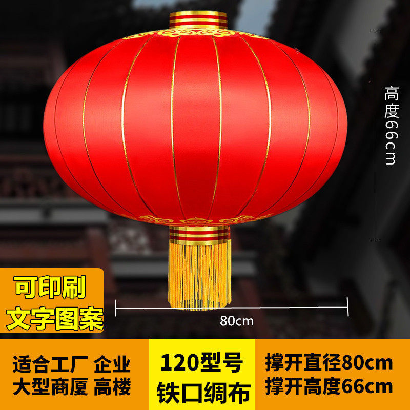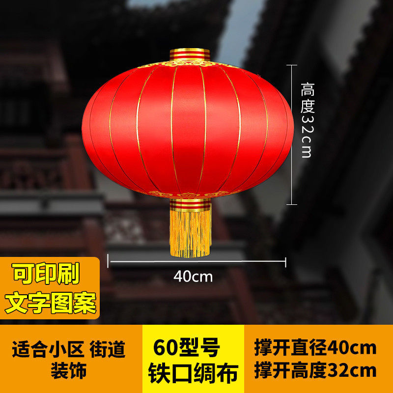 厂家批发广告大红绸布灯笼铁口灯笼户外防水新年挂饰元旦装饰宫灯