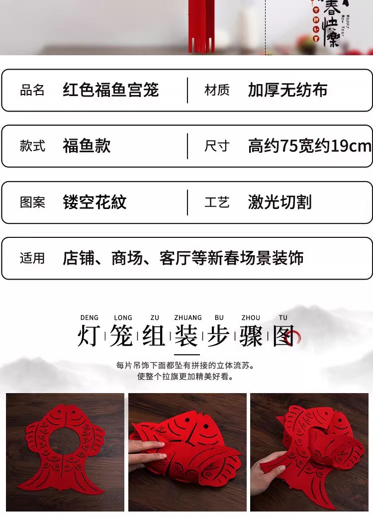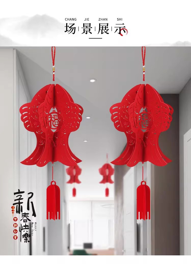 2026马年新年福鱼灯笼春节装饰福字挂饰挂件过年灯笼室内场景布置