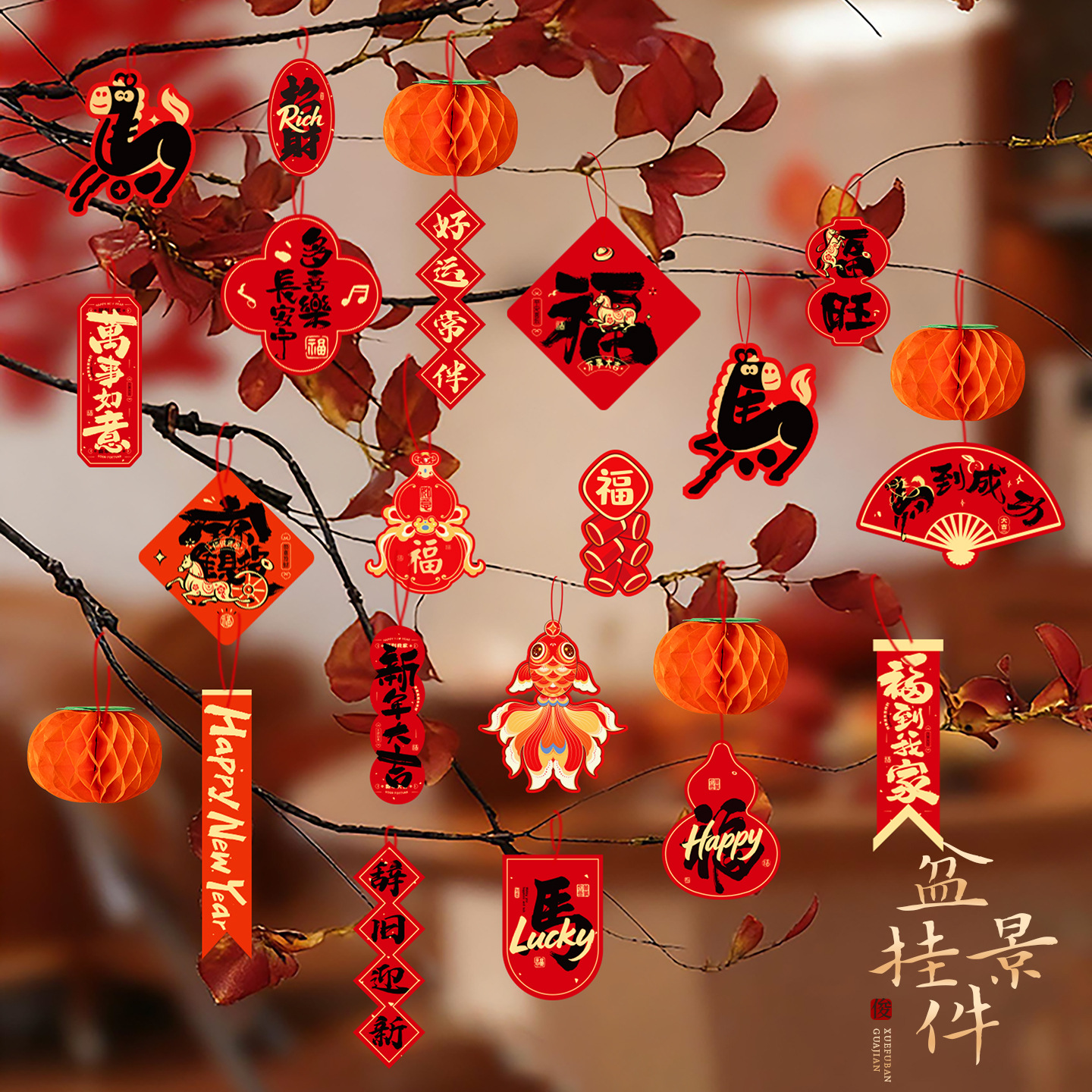 新年植绒灯笼挂饰中式红灯笼过年盆景挂件装饰春节户外喜庆小灯笼