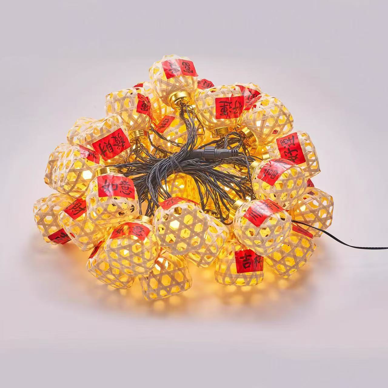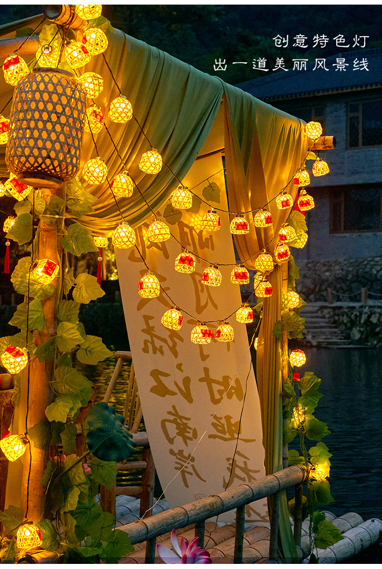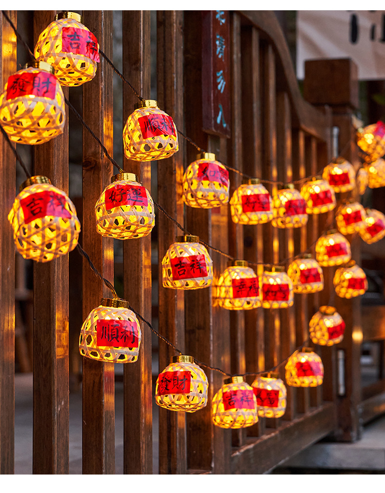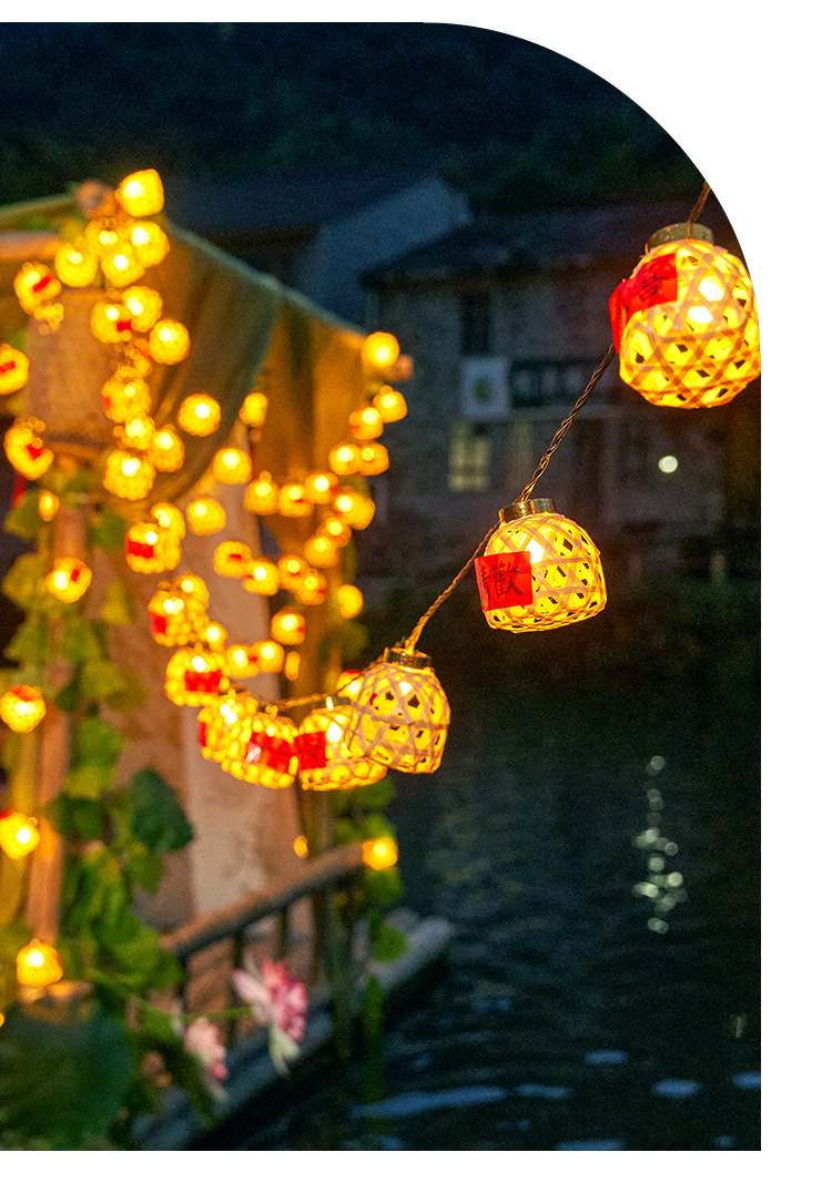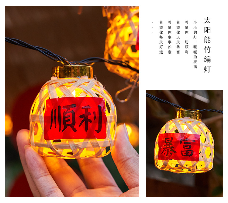 新款竹编灯笼新年彩灯过年氛围灯led太阳能灯串春节庭院装饰串灯