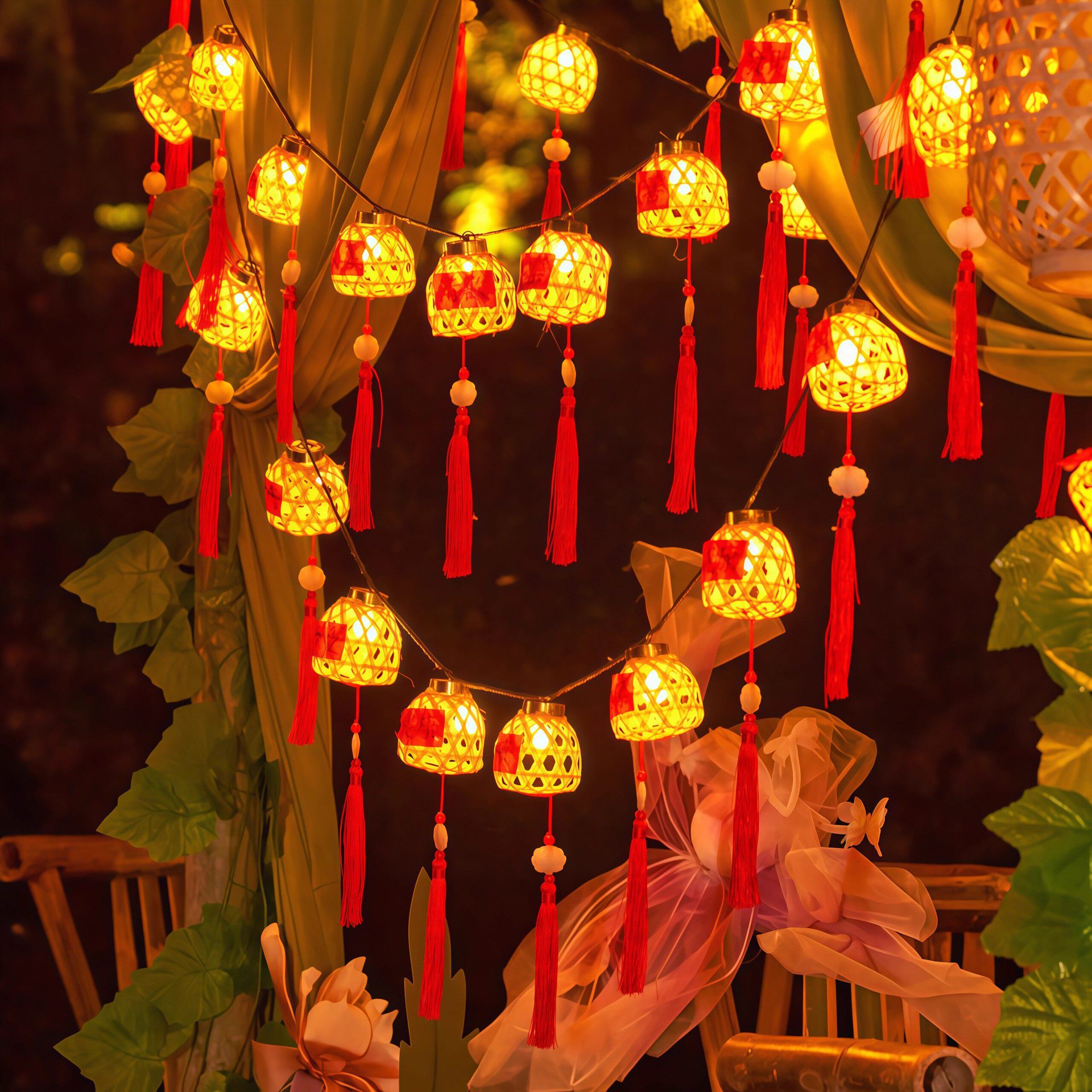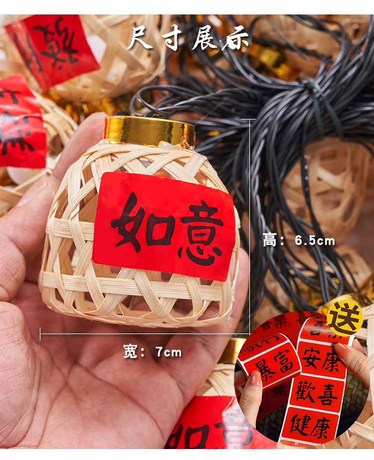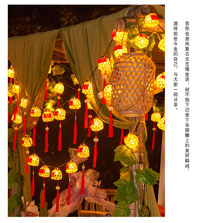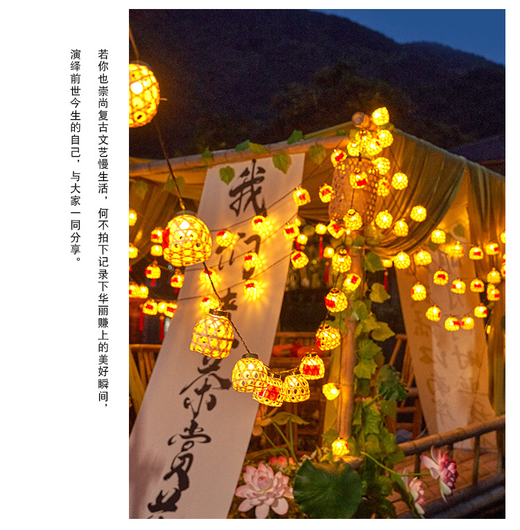 新款竹编灯笼新年彩灯过年氛围灯led太阳能灯串春节庭院装饰串灯