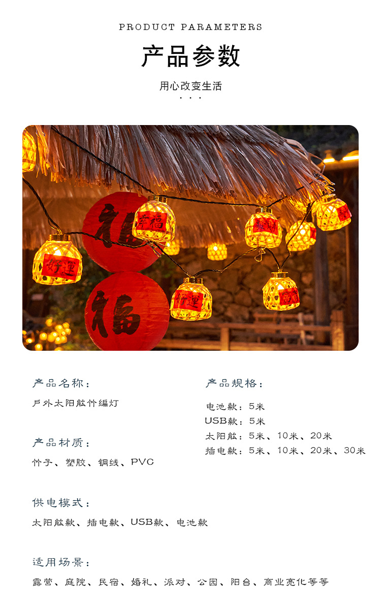 | 30米120个手工竹编灯【2400Am太阳能款+USB充电两用款】 | USD $91.77 | 8888 piece available |