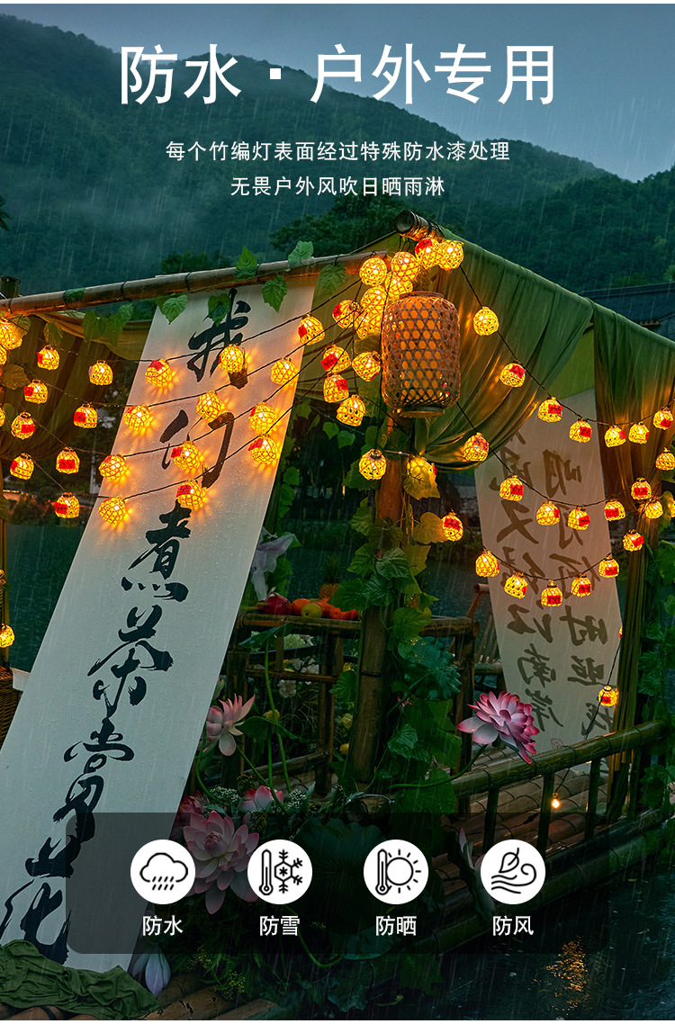 | 10米40个手工竹编灯【户外防水低压插电款】 | USD $29.5 | 8888 piece available |