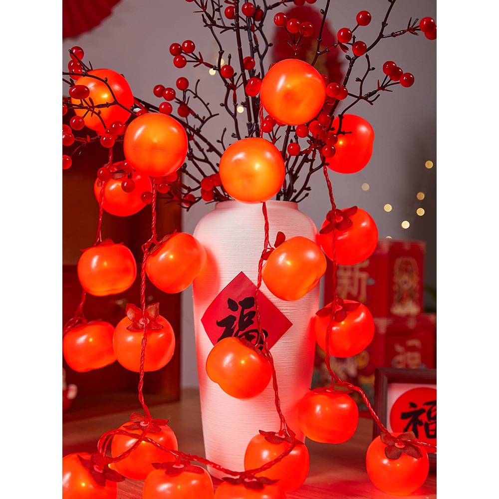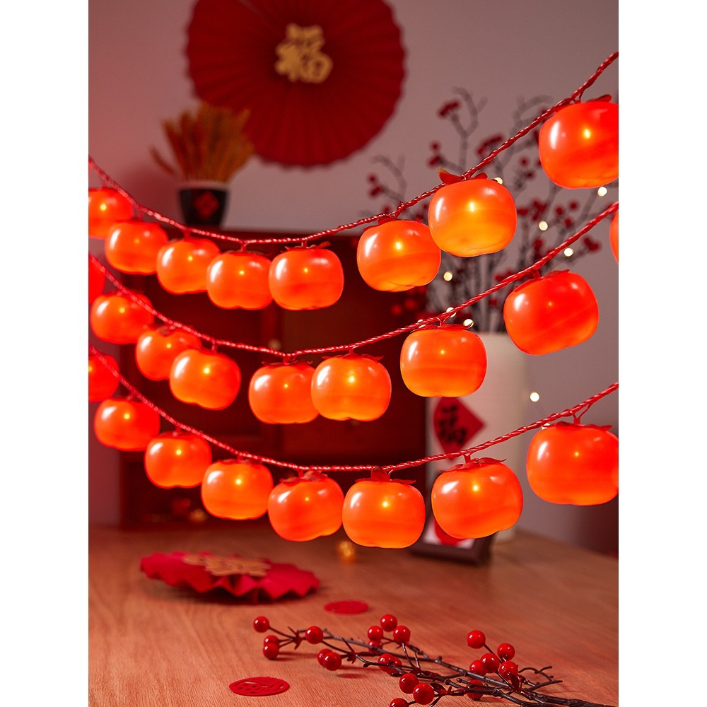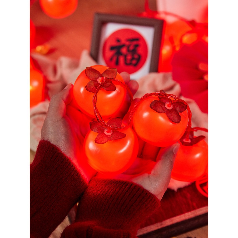 2026新年装饰挂件彩灯 led柿子灯串户外防水挂树庭院灯春节小灯笼