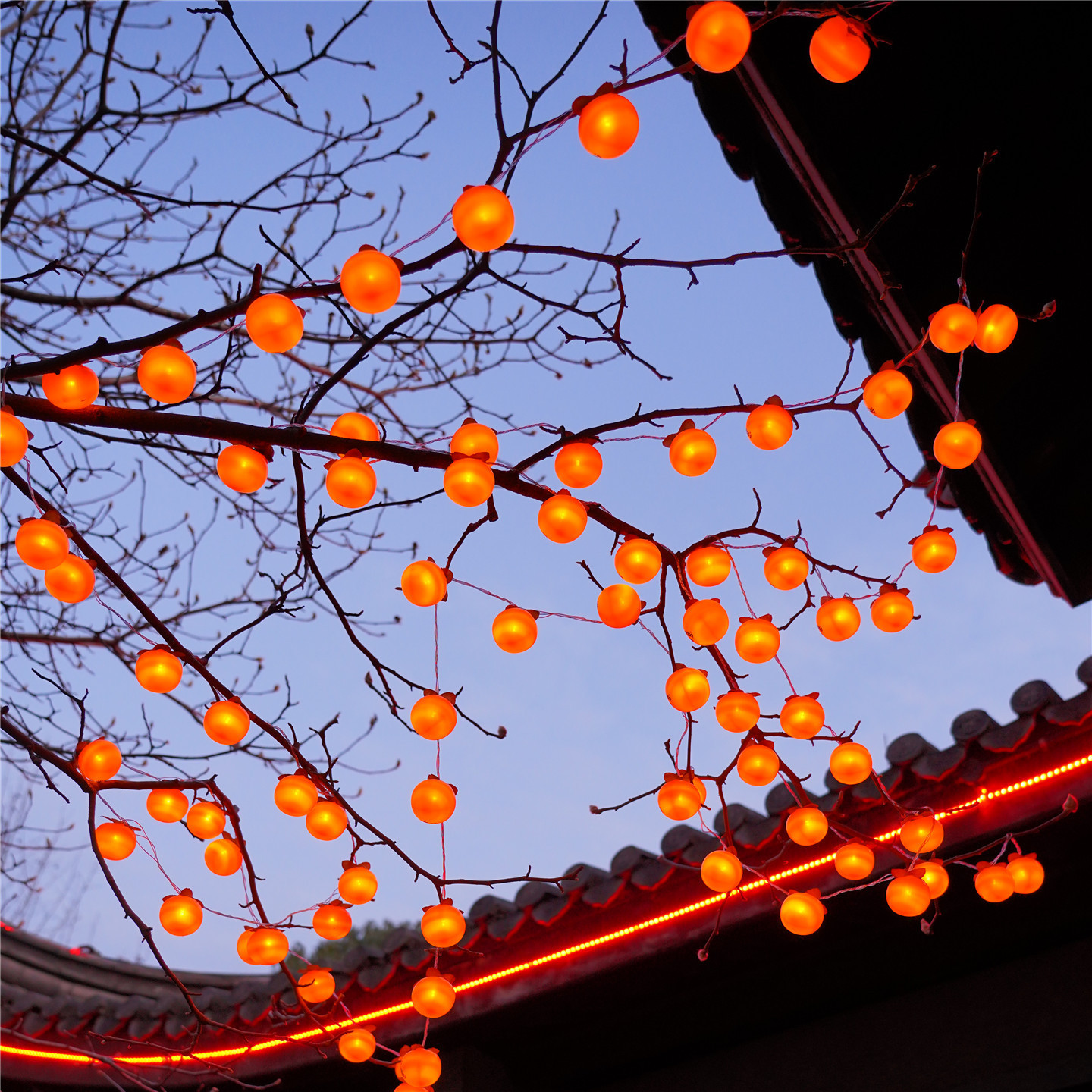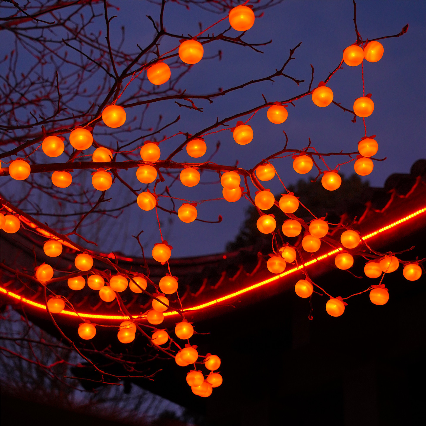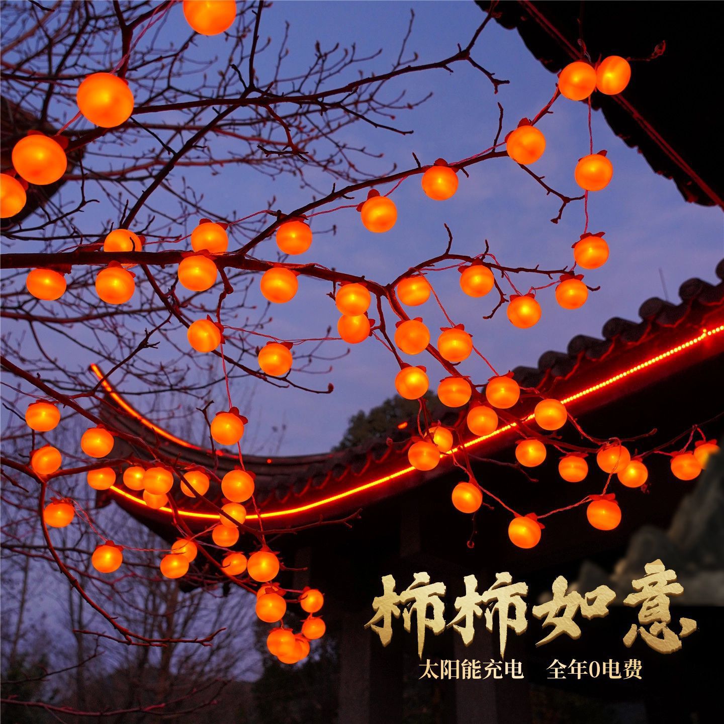 2026新年装饰挂件彩灯 led柿子灯串户外防水挂树庭院灯春节小灯笼