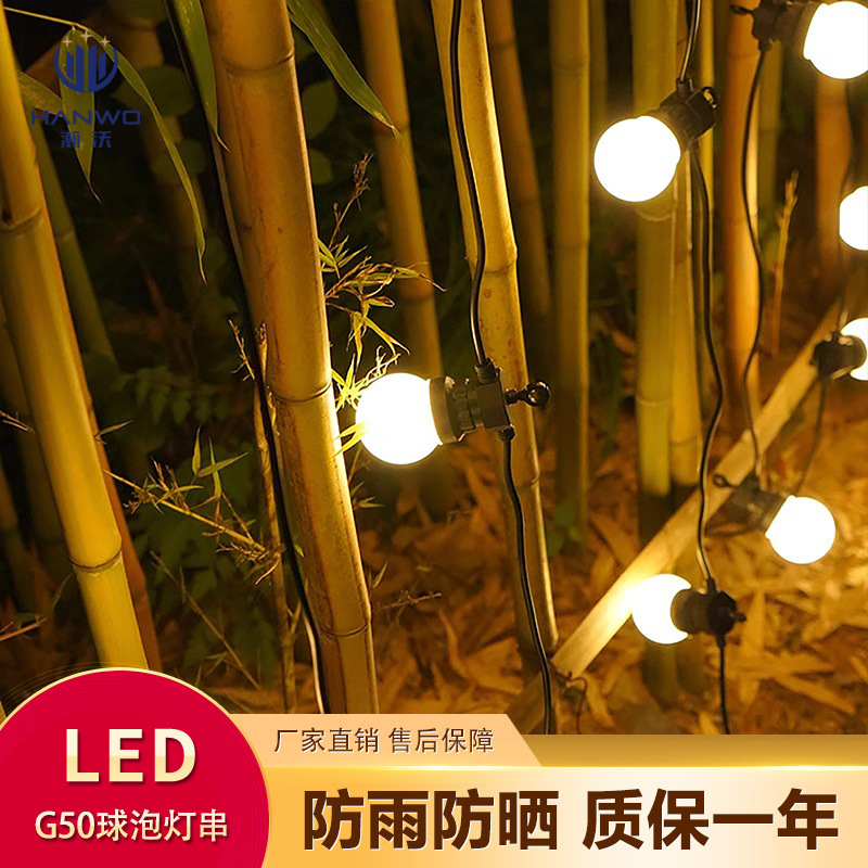 户外磨砂小圆球灯串帐篷天幕装饰灯led白色美规室外G50球泡灯笼