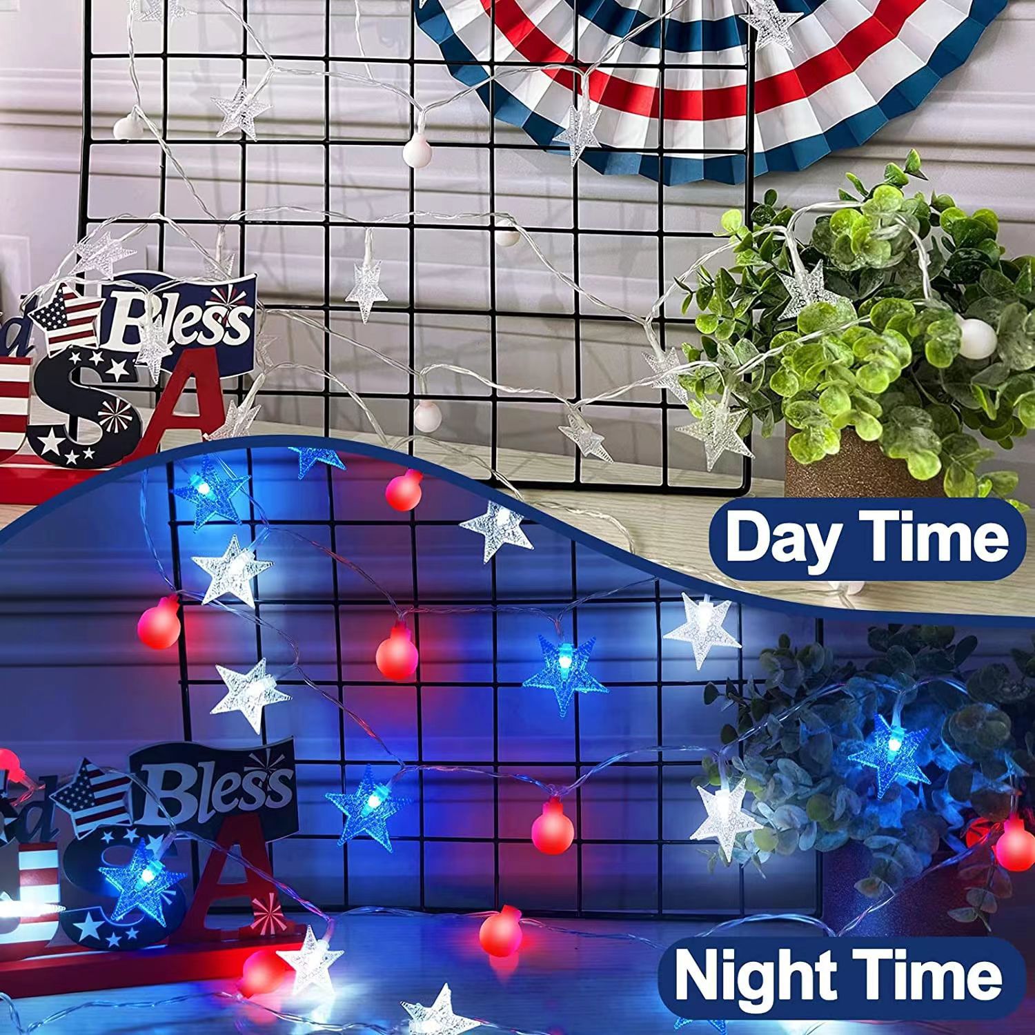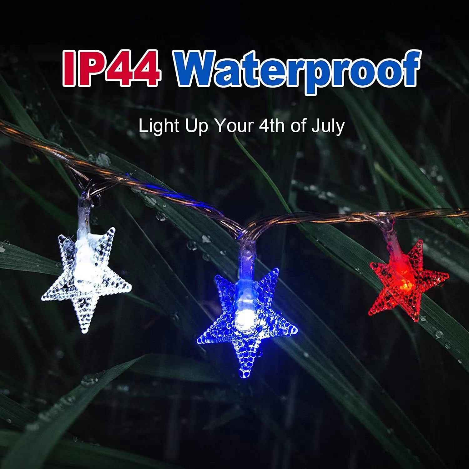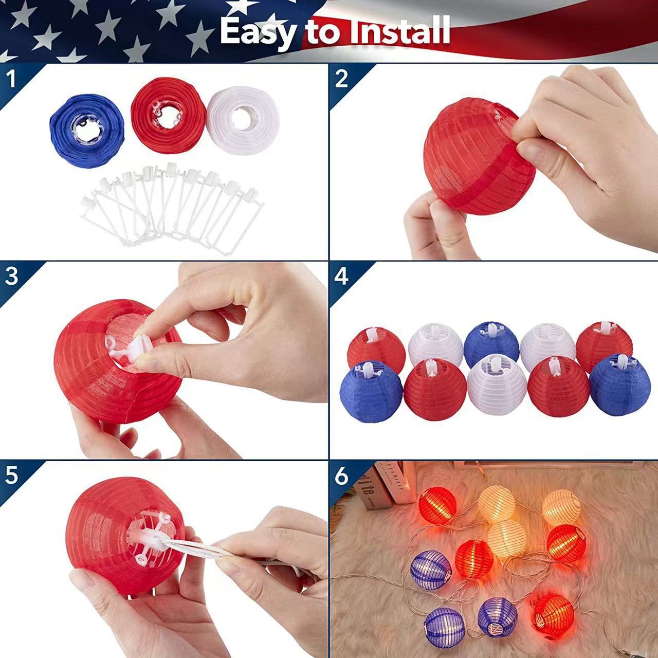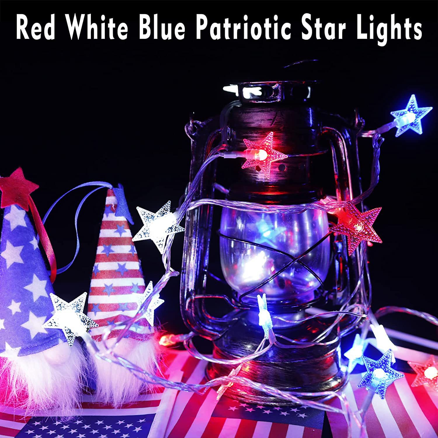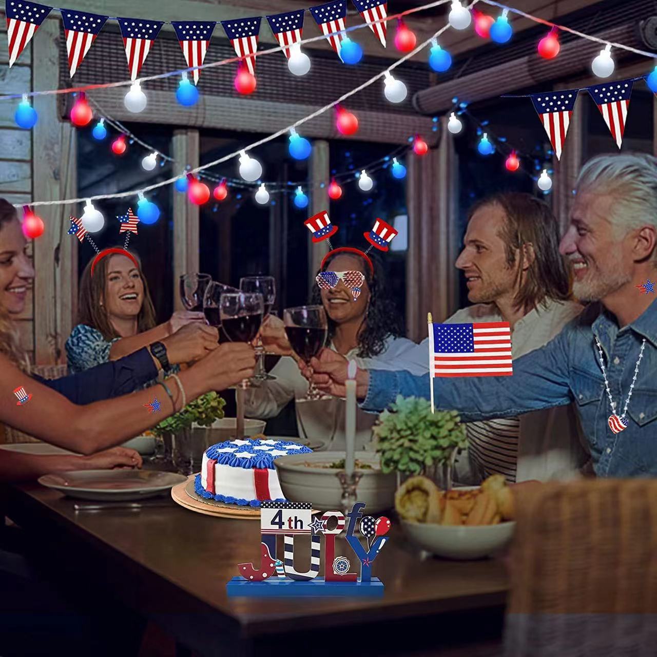 美国独立日红白蓝星星灯定制藤条五角星led灯笼圆珠串灯装饰灯串