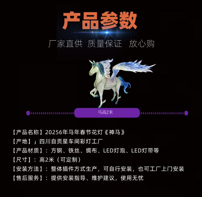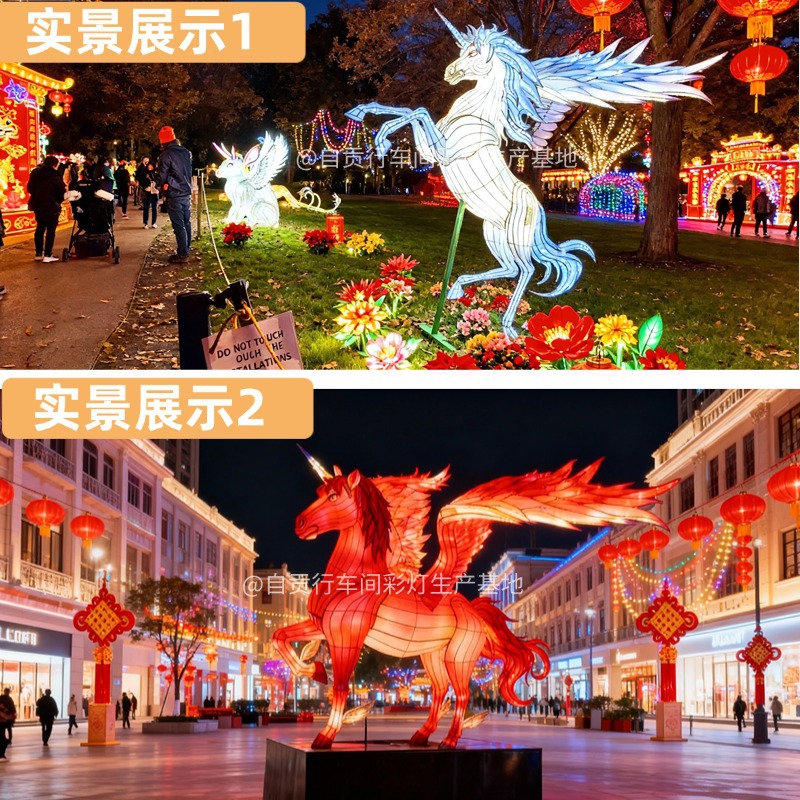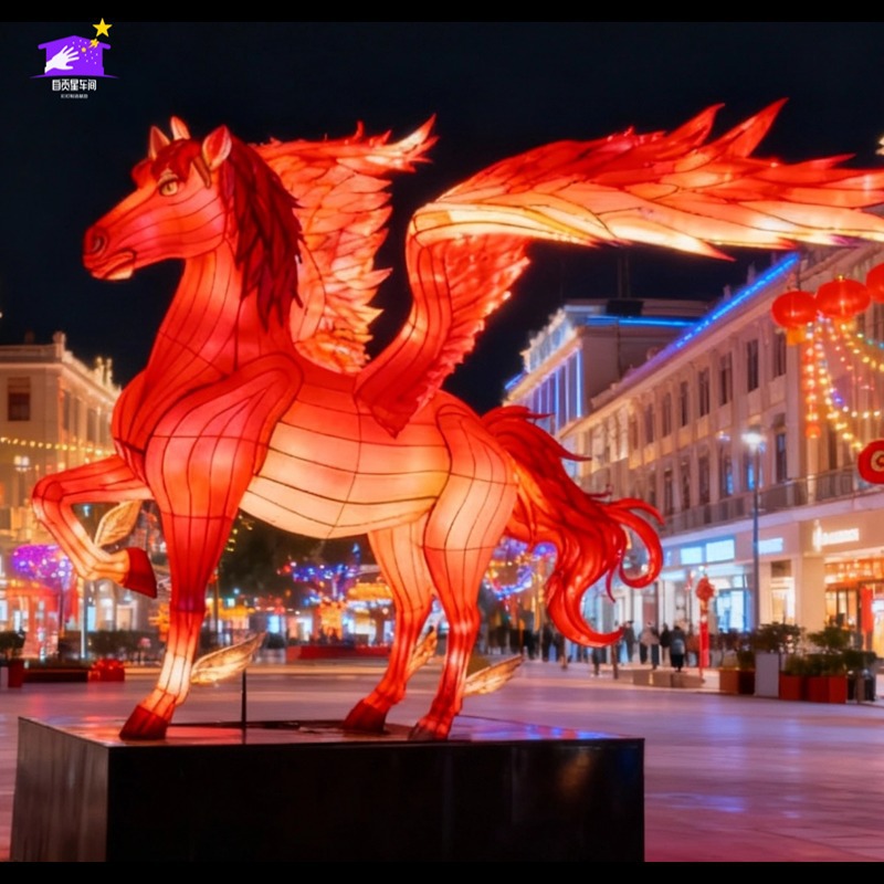 大型花灯飞马彩灯马年主题花灯展春节元宵节马造型灯笼厂家直供