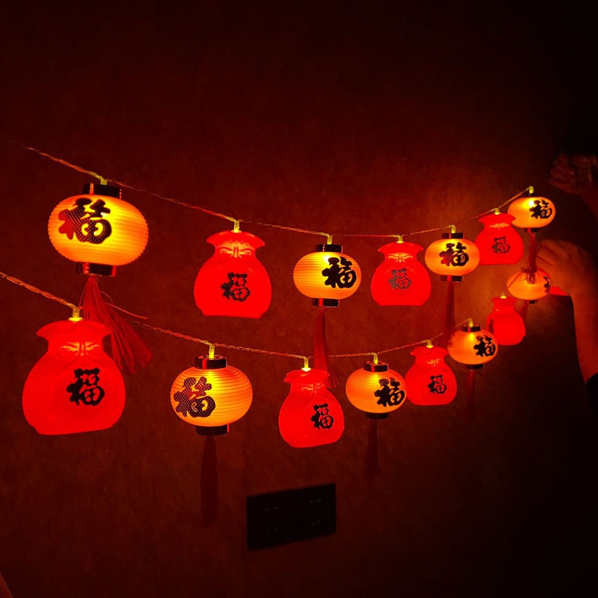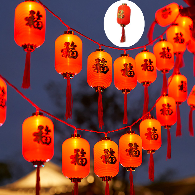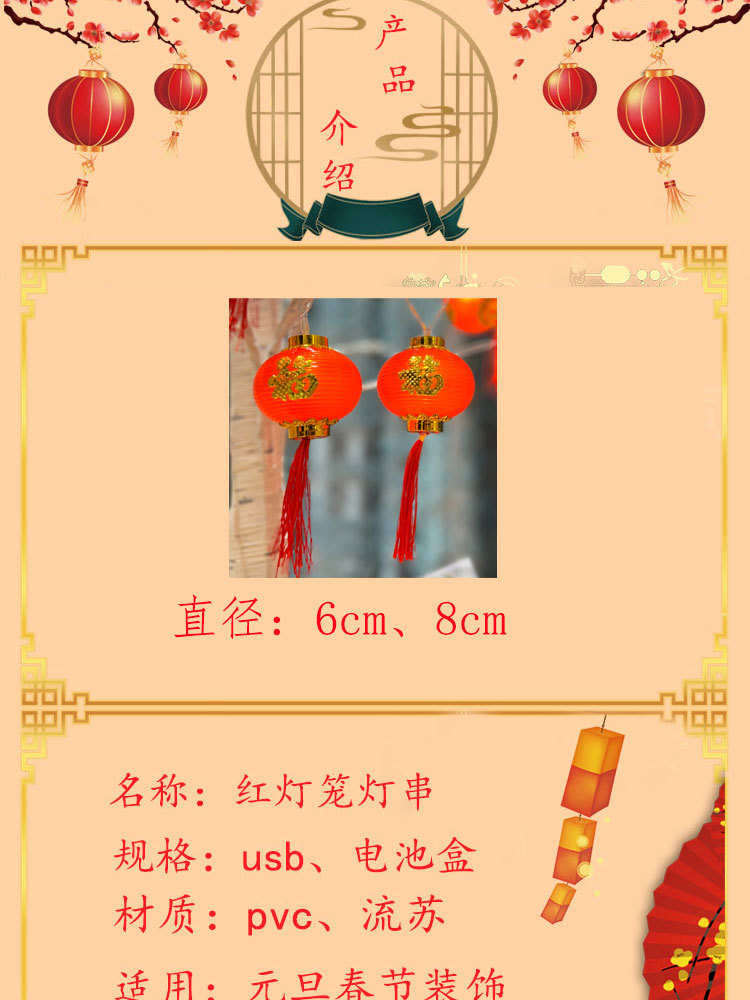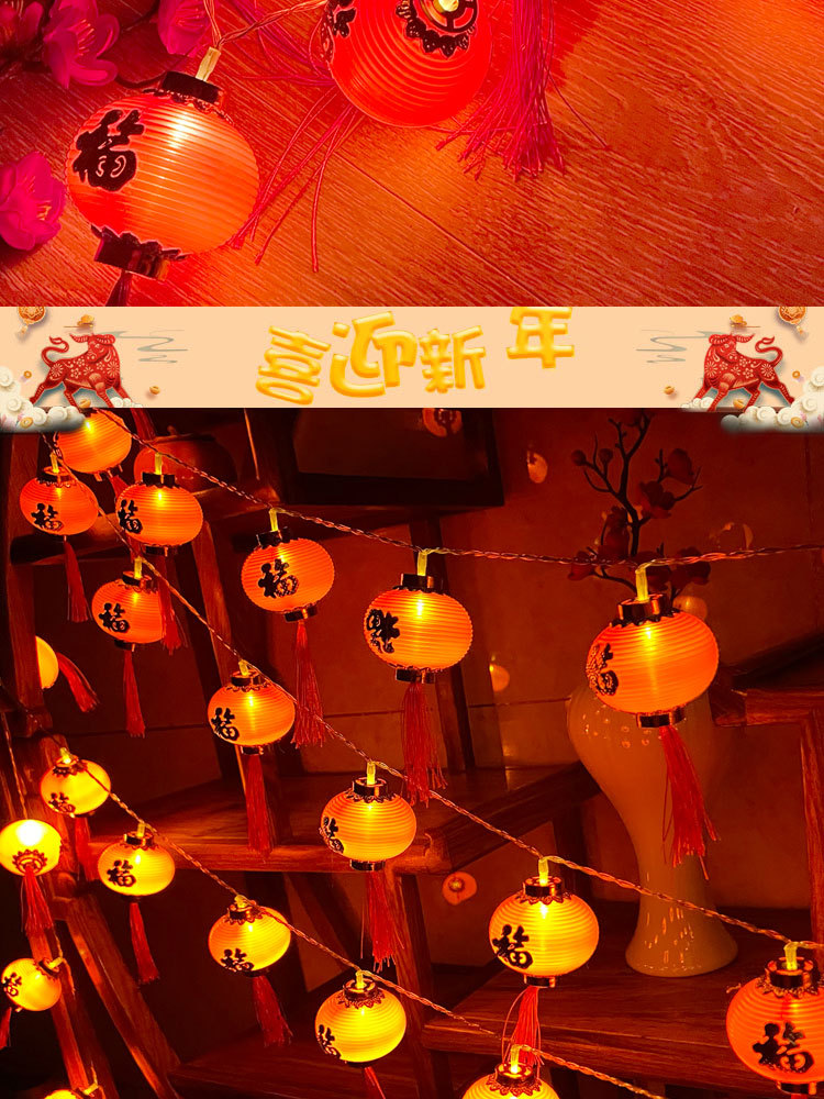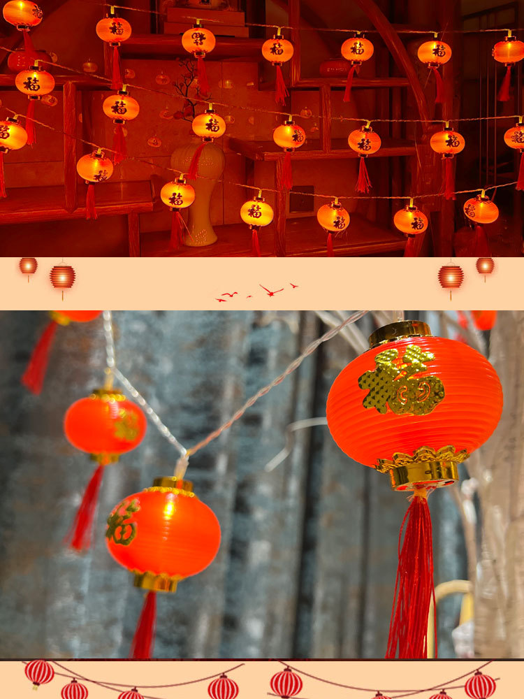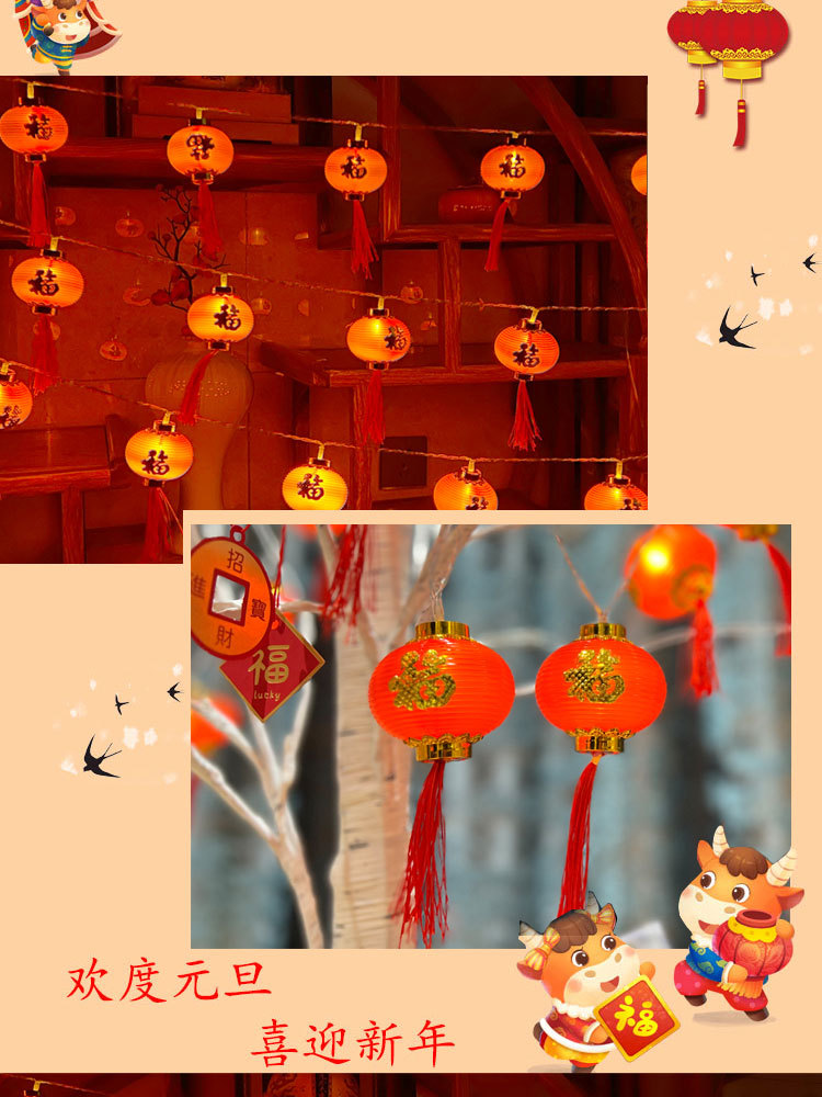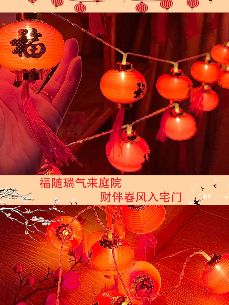 led流苏红灯笼灯串 春节新年元宵装饰串灯红火中国风福字灯笼彩灯