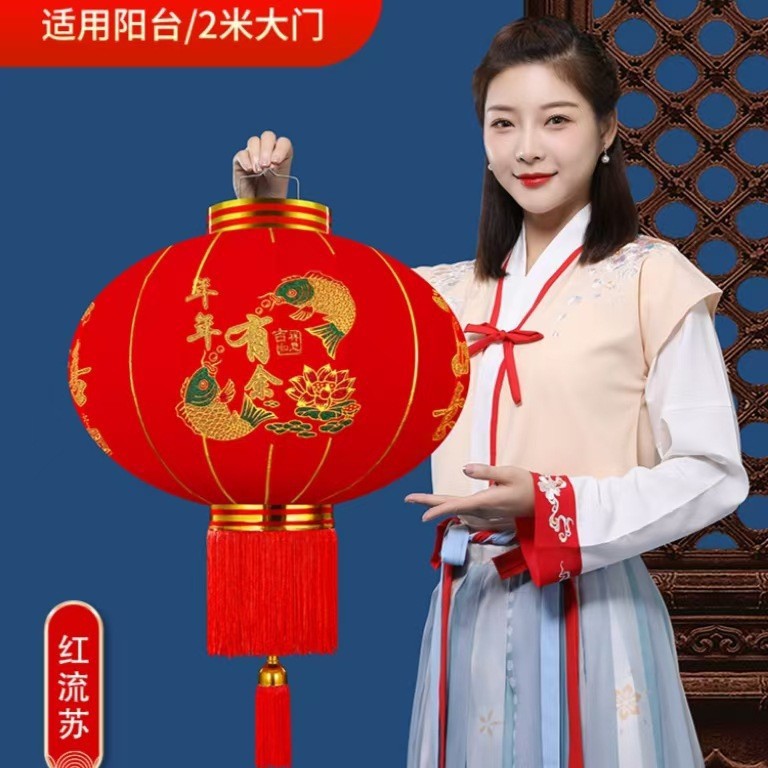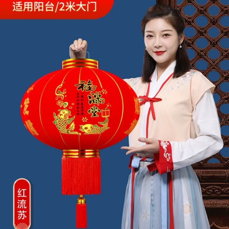 大红植绒灯笼大门口挂件广告灯笼户外防水春节新年灯笼过年装饰品