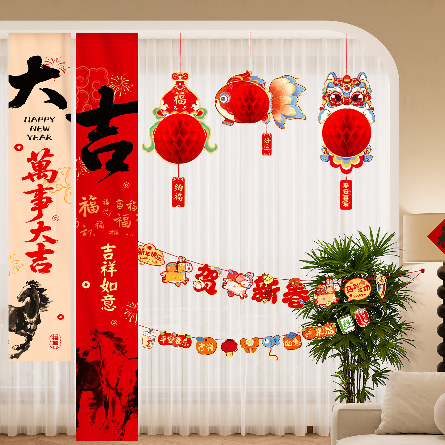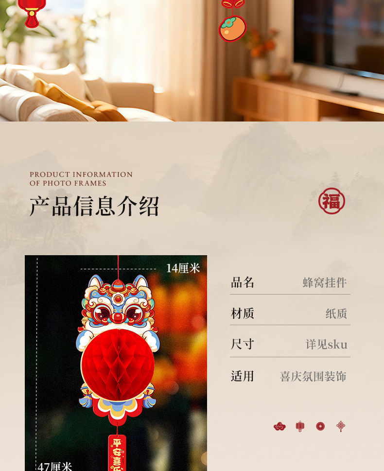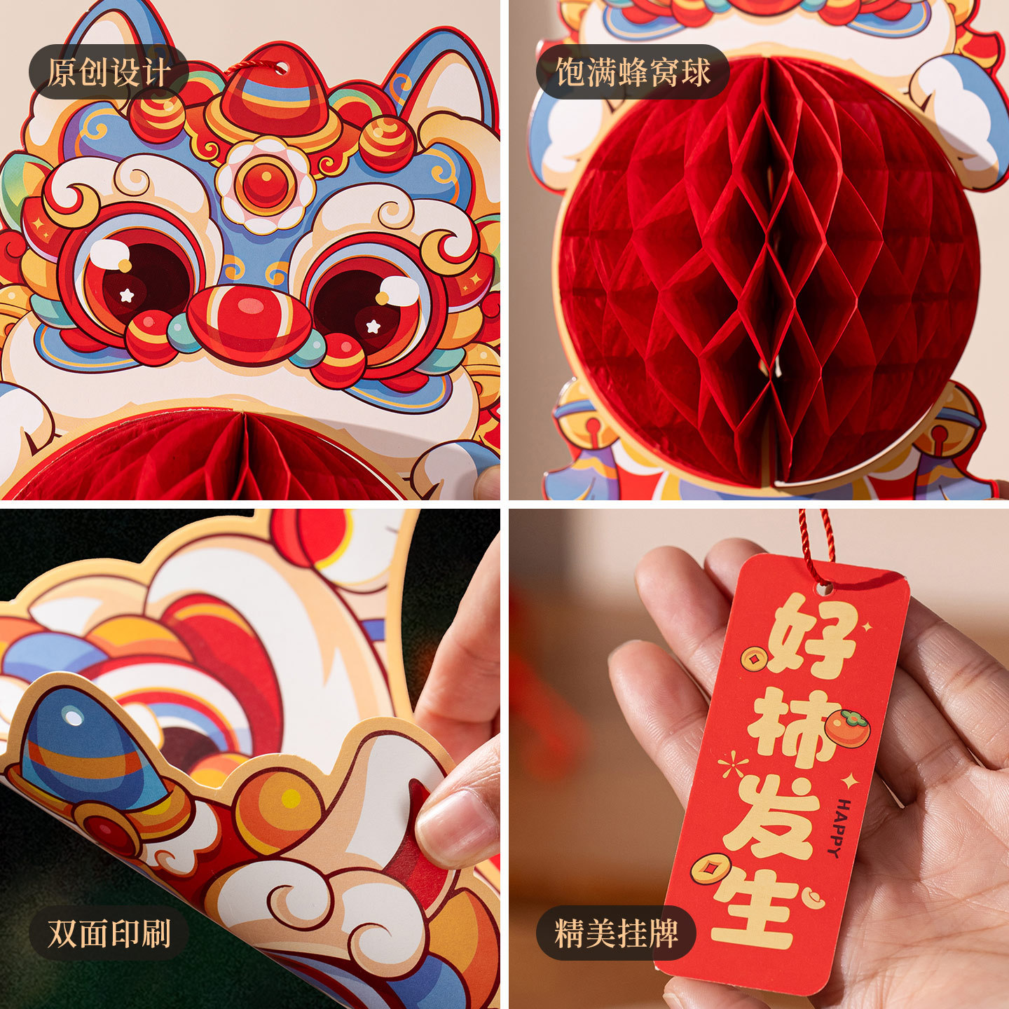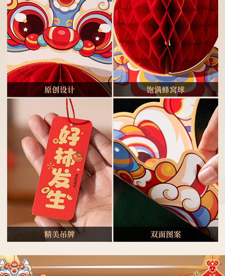 醒狮灯笼挂件diy过年元宵新年装饰居家喜庆年货氛围布置马年摆摊