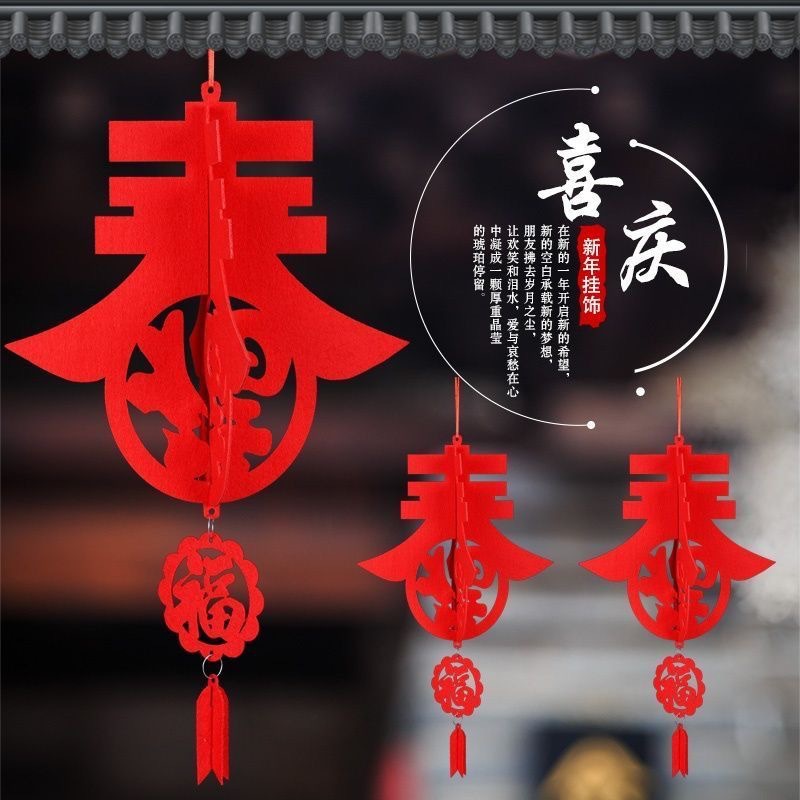 无纺布灯笼批发元旦春节装饰商场春字福字绣球立体挂件宫灯厂家直