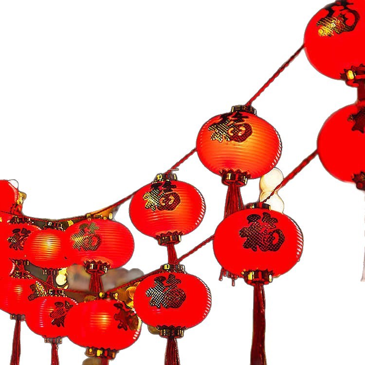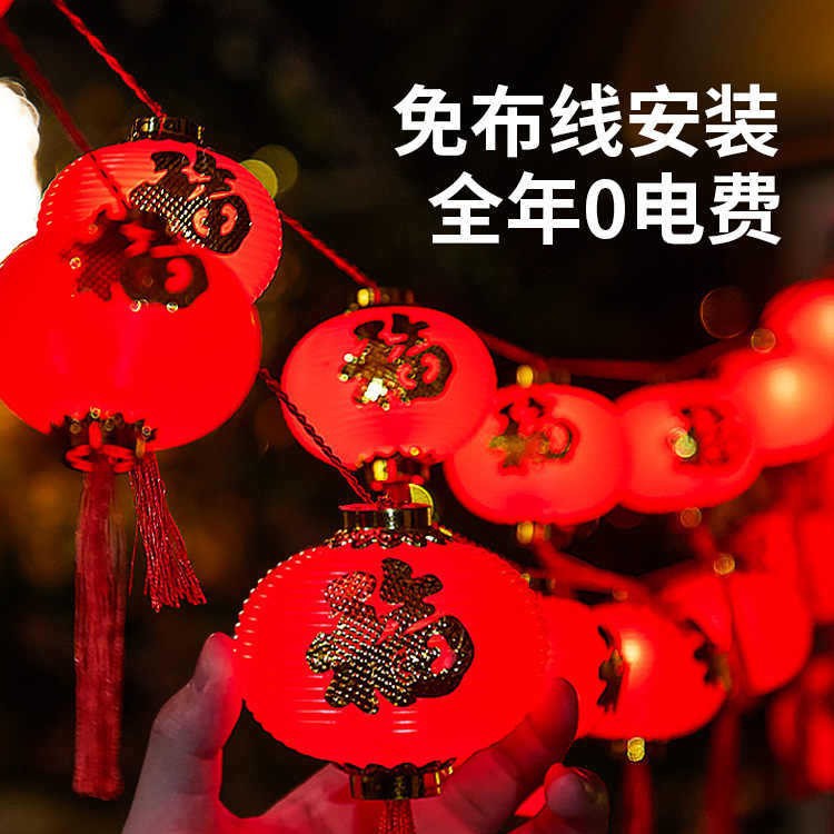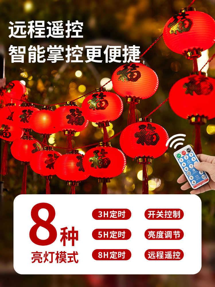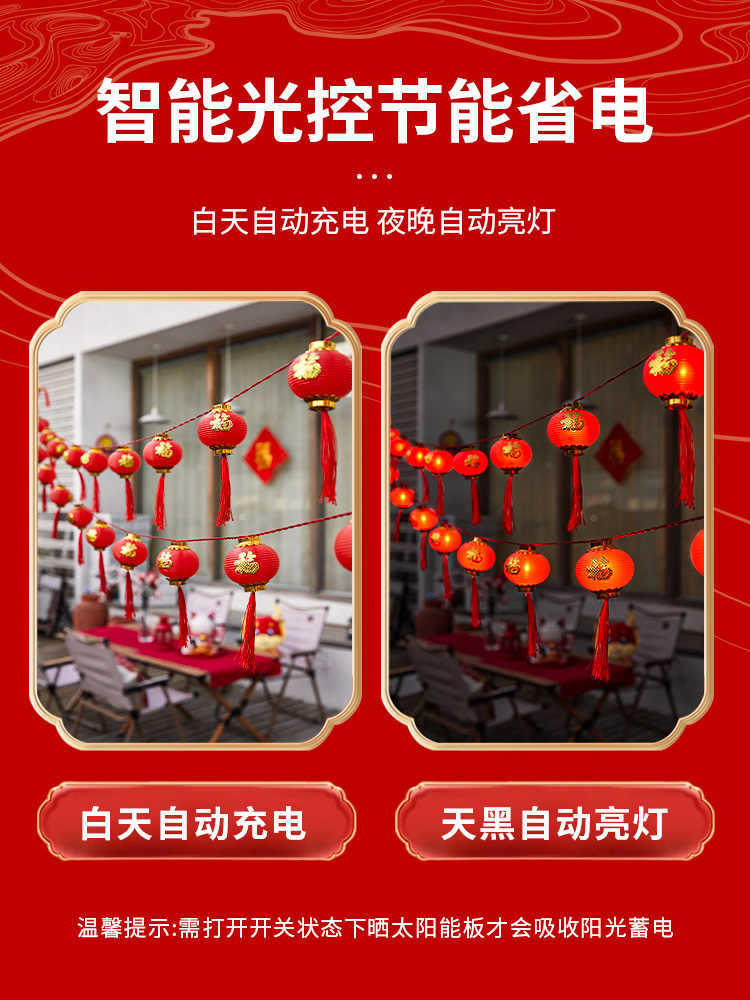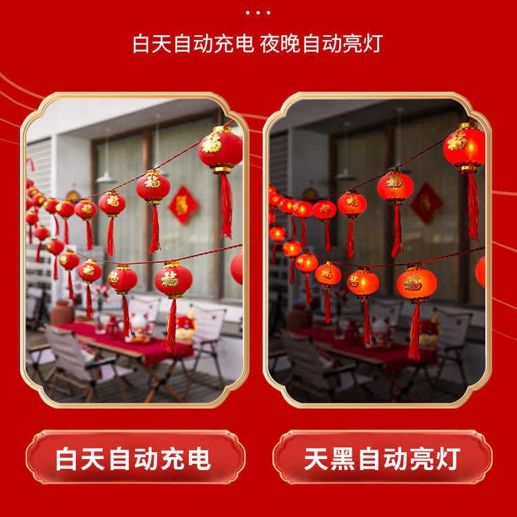 新年红灯笼灯串LED装饰彩灯福字灯笼庭院布置户外防水春节氛围灯