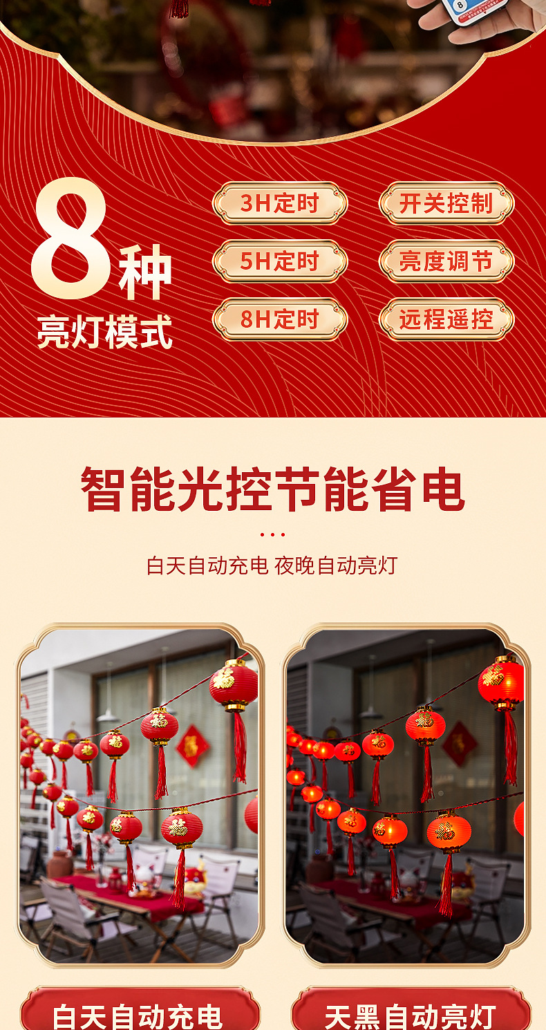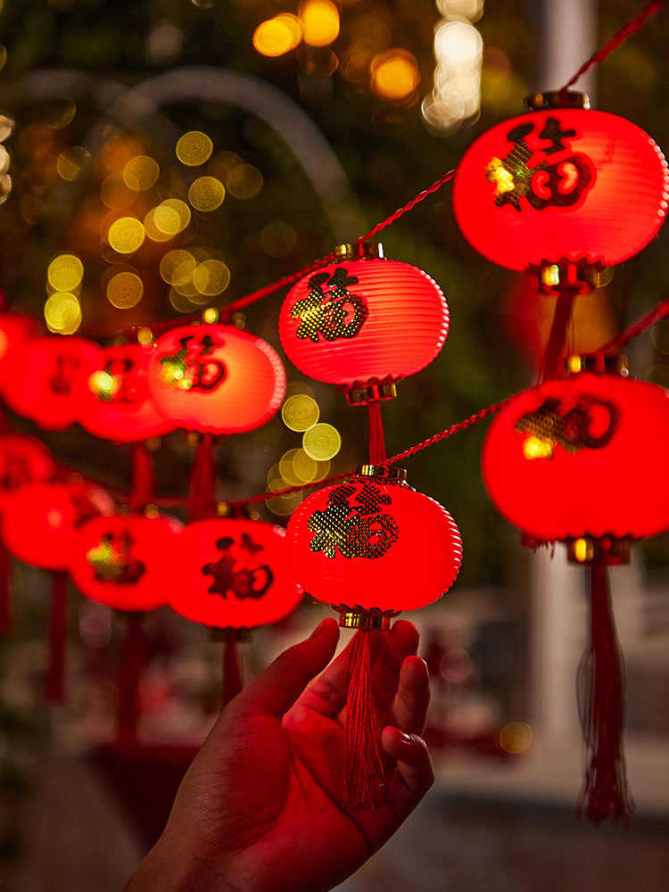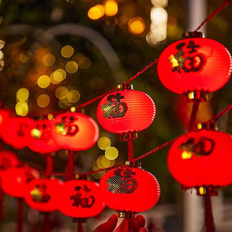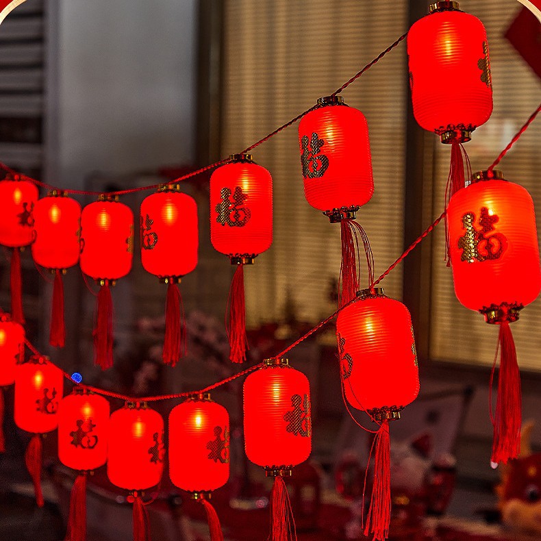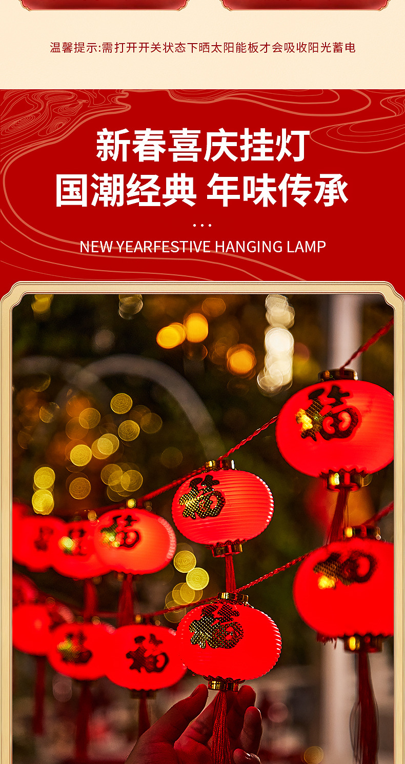 新年红灯笼灯串LED装饰彩灯福字灯笼庭院布置户外防水春节氛围灯