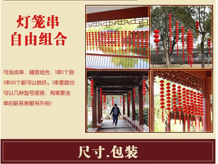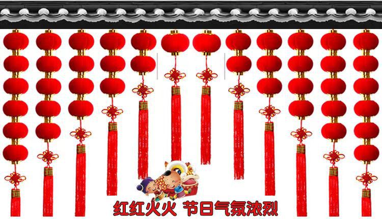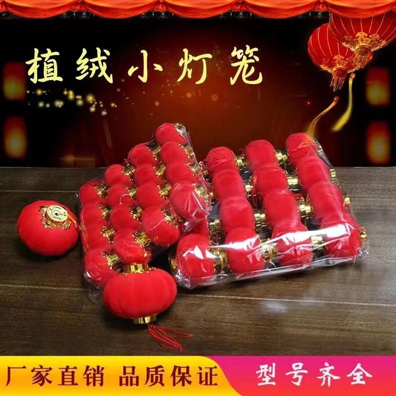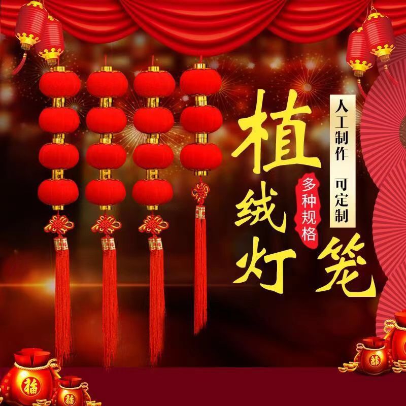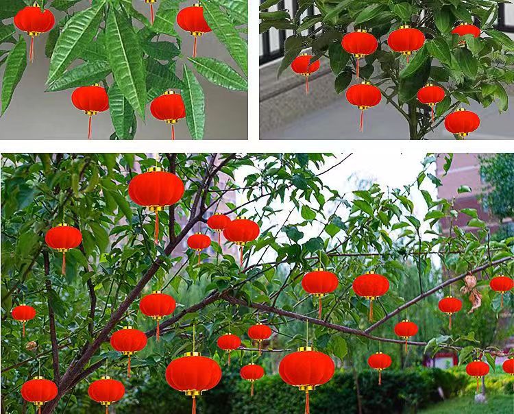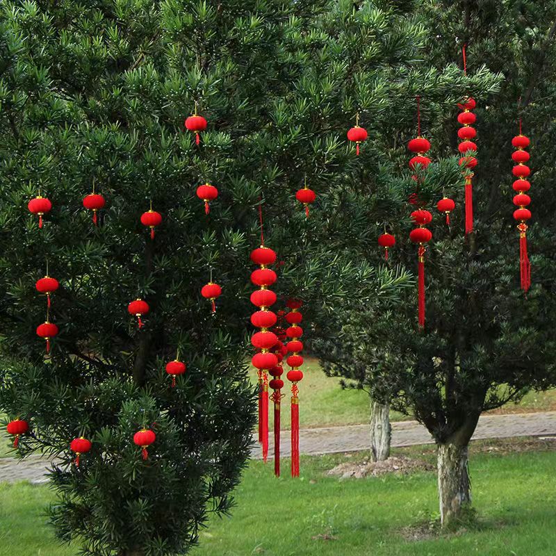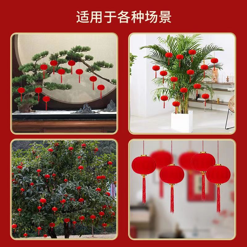 春节婚礼新年挂饰植绒球小灯笼盆栽乔迁新居挂件树上门庭窗沿喜庆