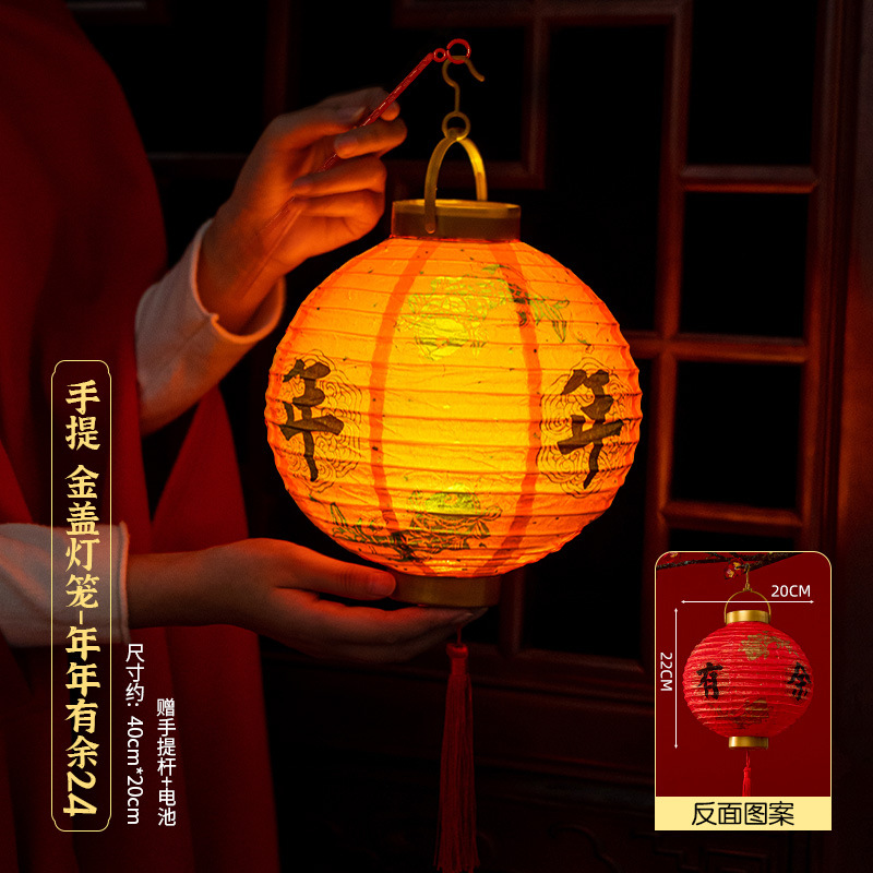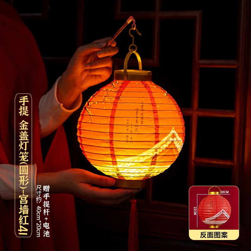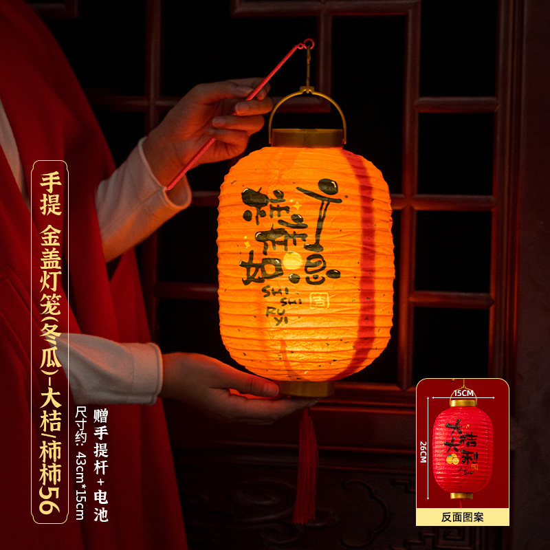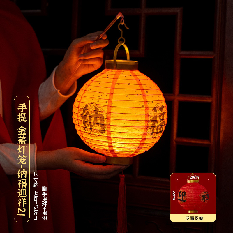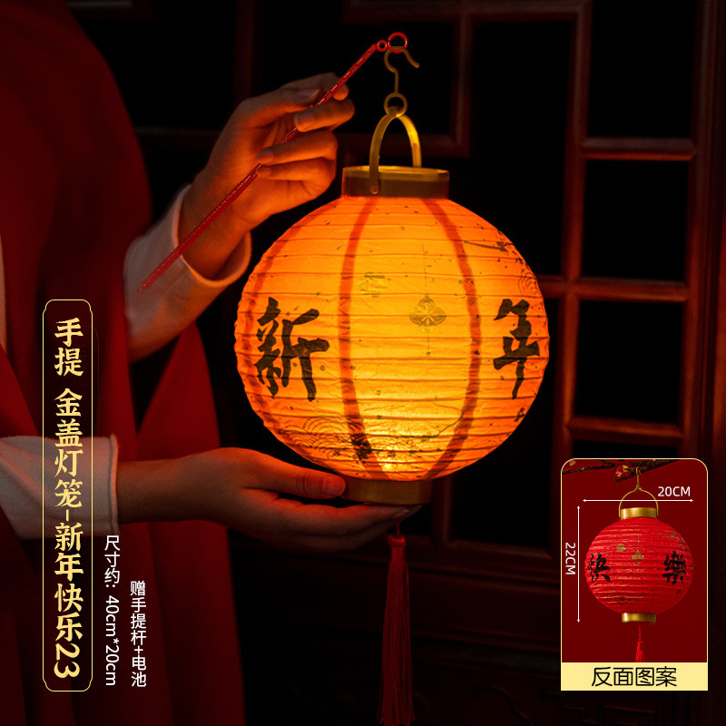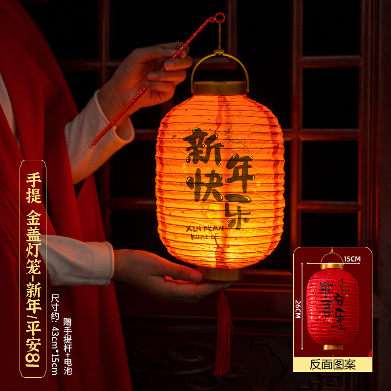 2026马年新款春节金盖灯笼宫灯装饰挂件马年新春儿童手提发光彩灯