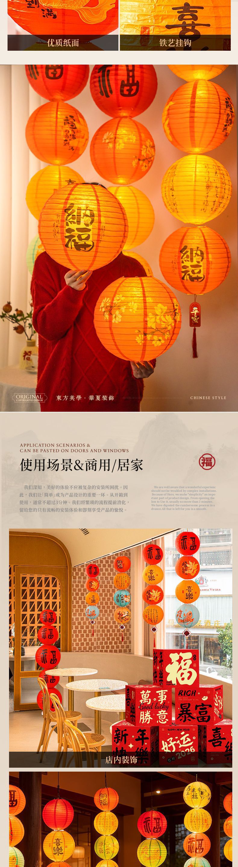 2026新年装饰中式古风马年商场店铺挂件春节过年布置用品灯笼挂饰