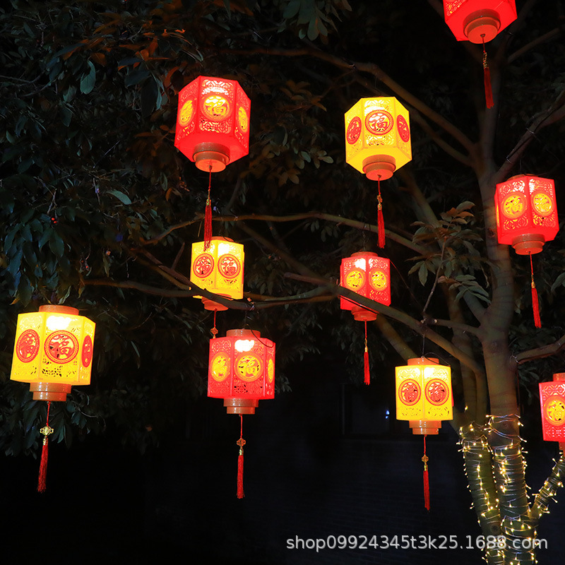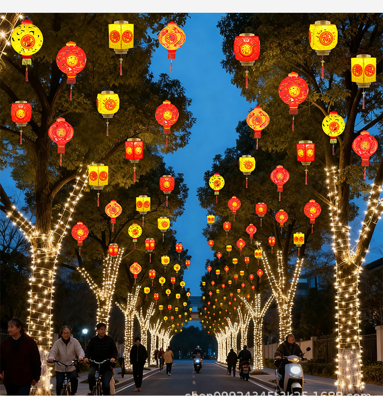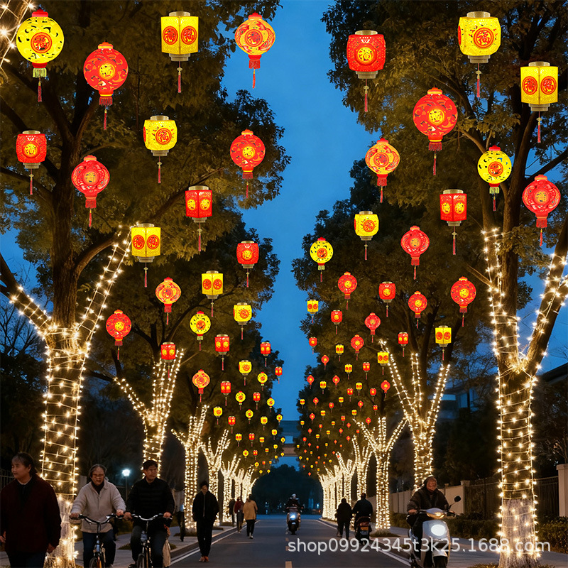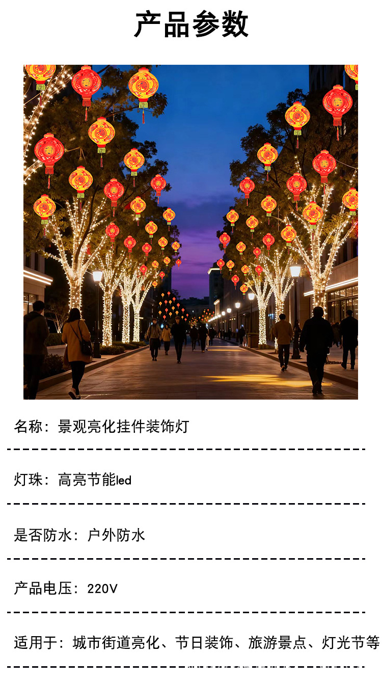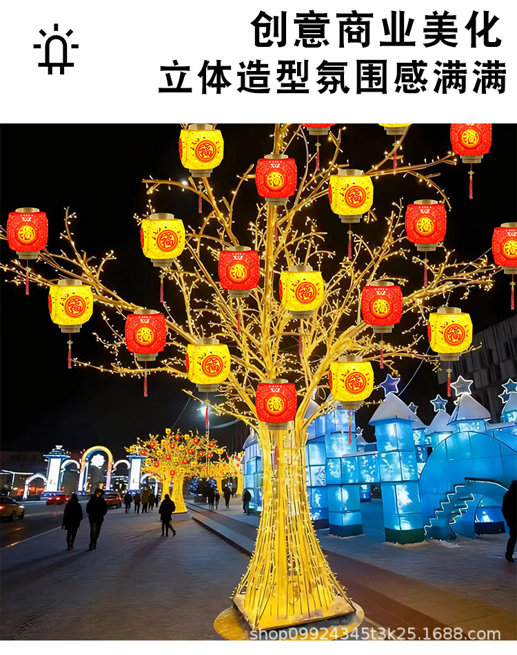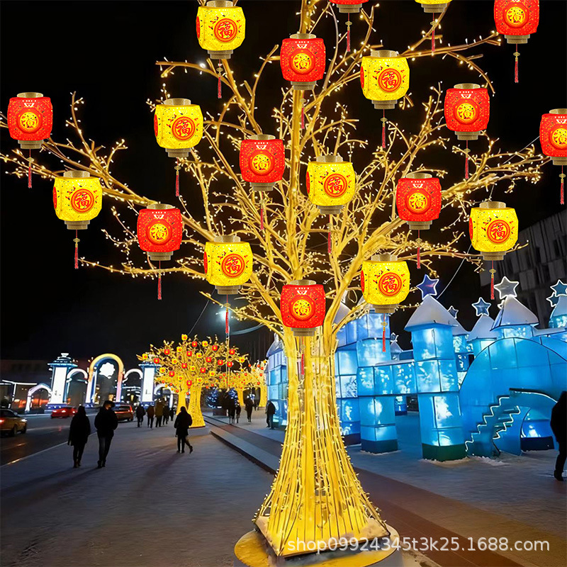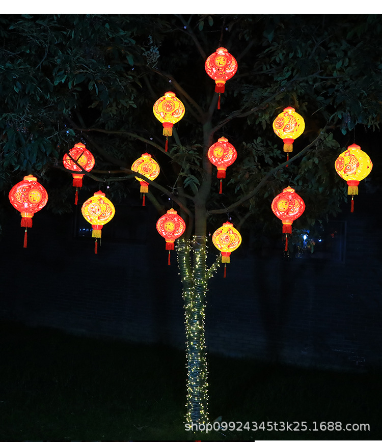 元旦春节镂空灯笼景区街道树木亮化装饰氛围灯挂树上的彩灯