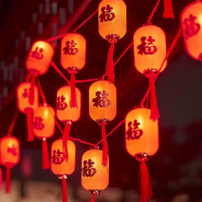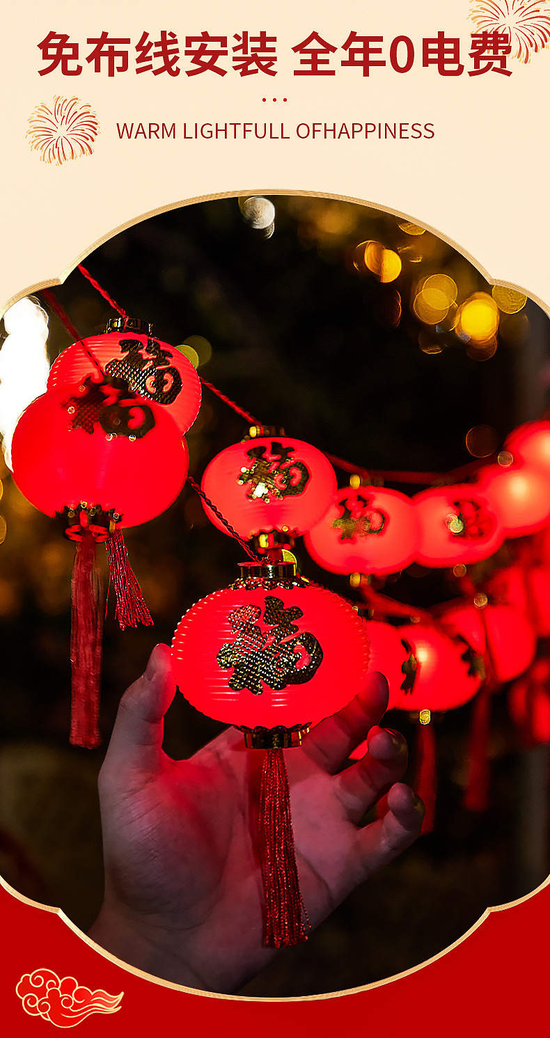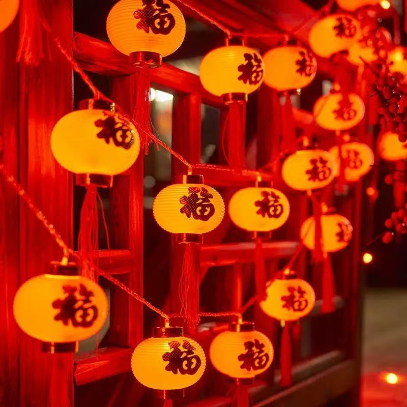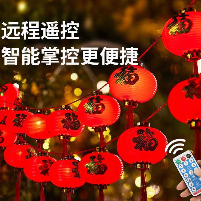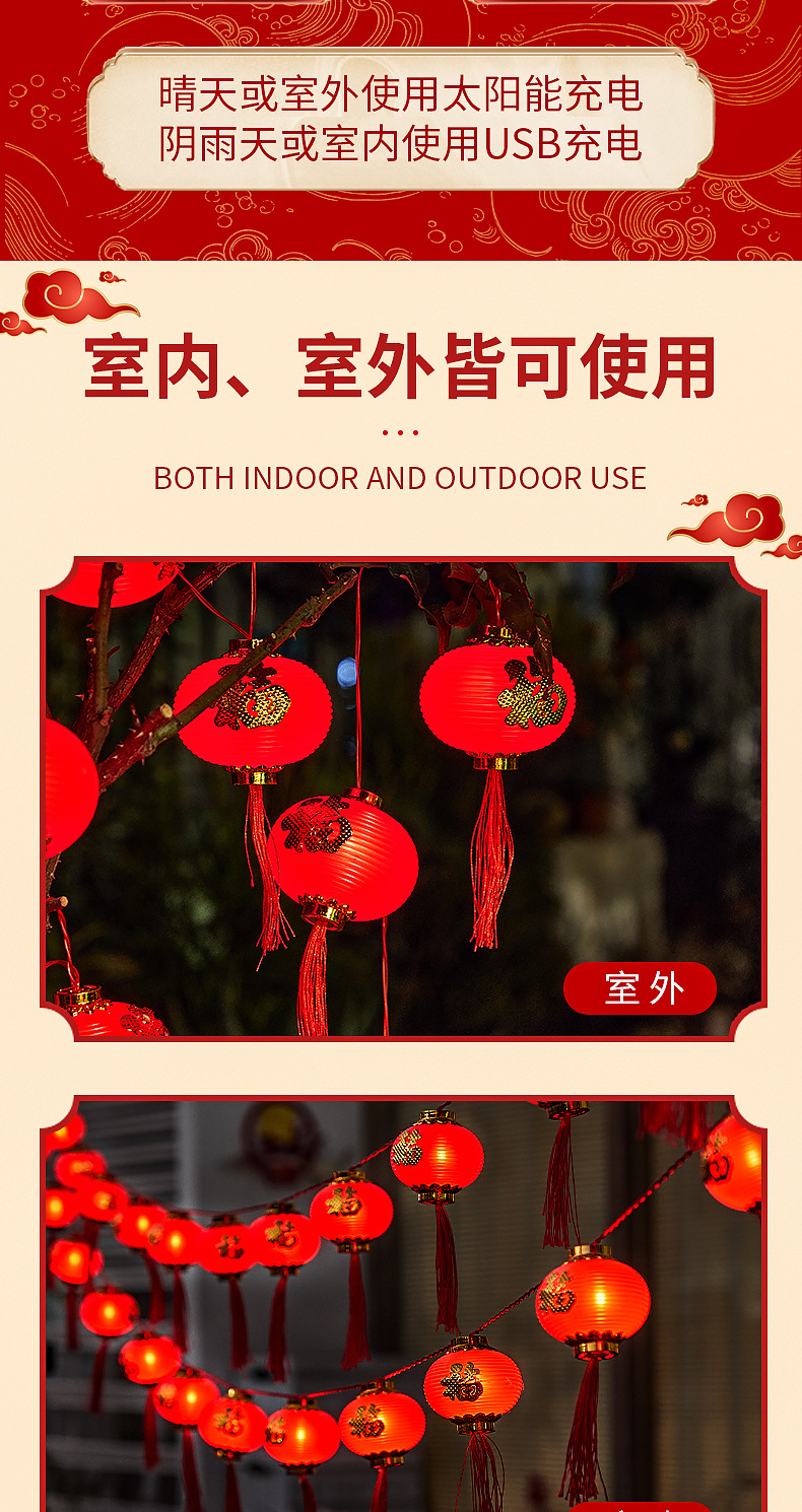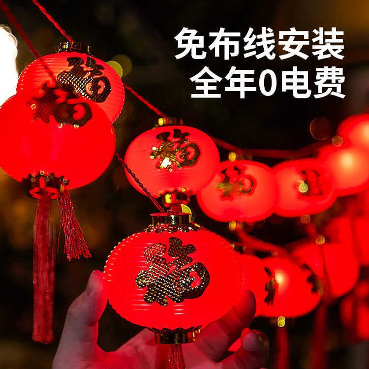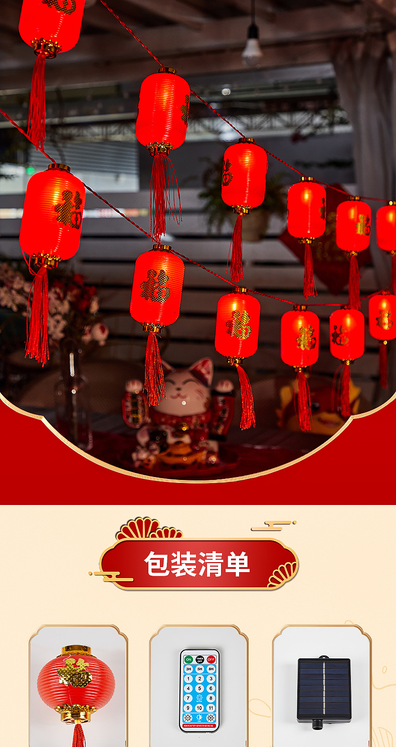 春节庭院福字红灯笼太阳能家用阳台小灯笼新春氛围防水彩灯串代发