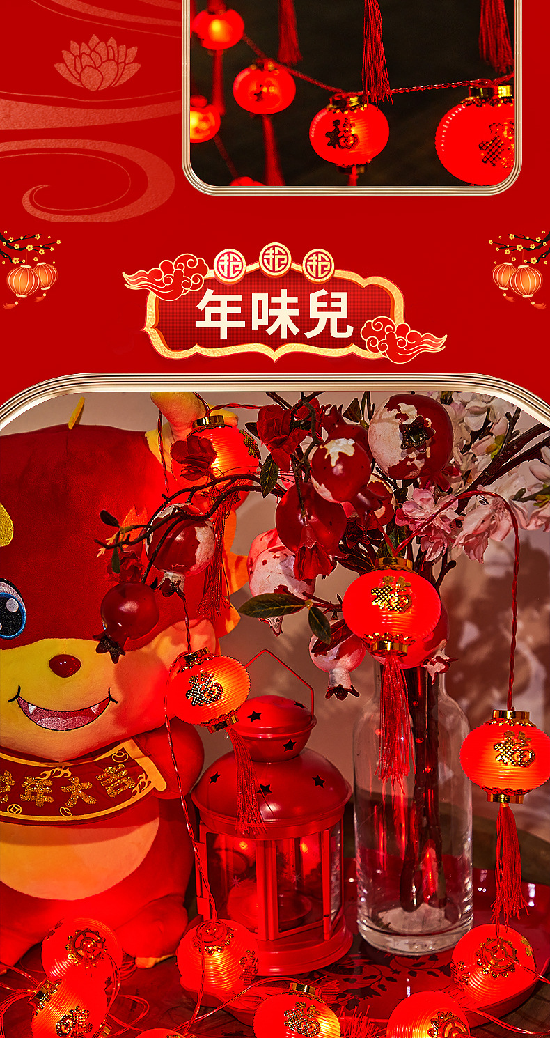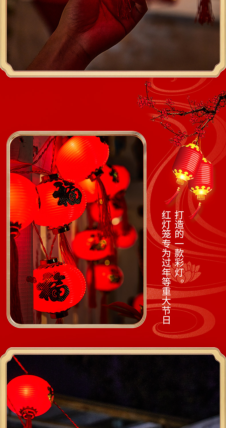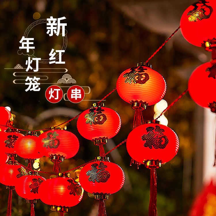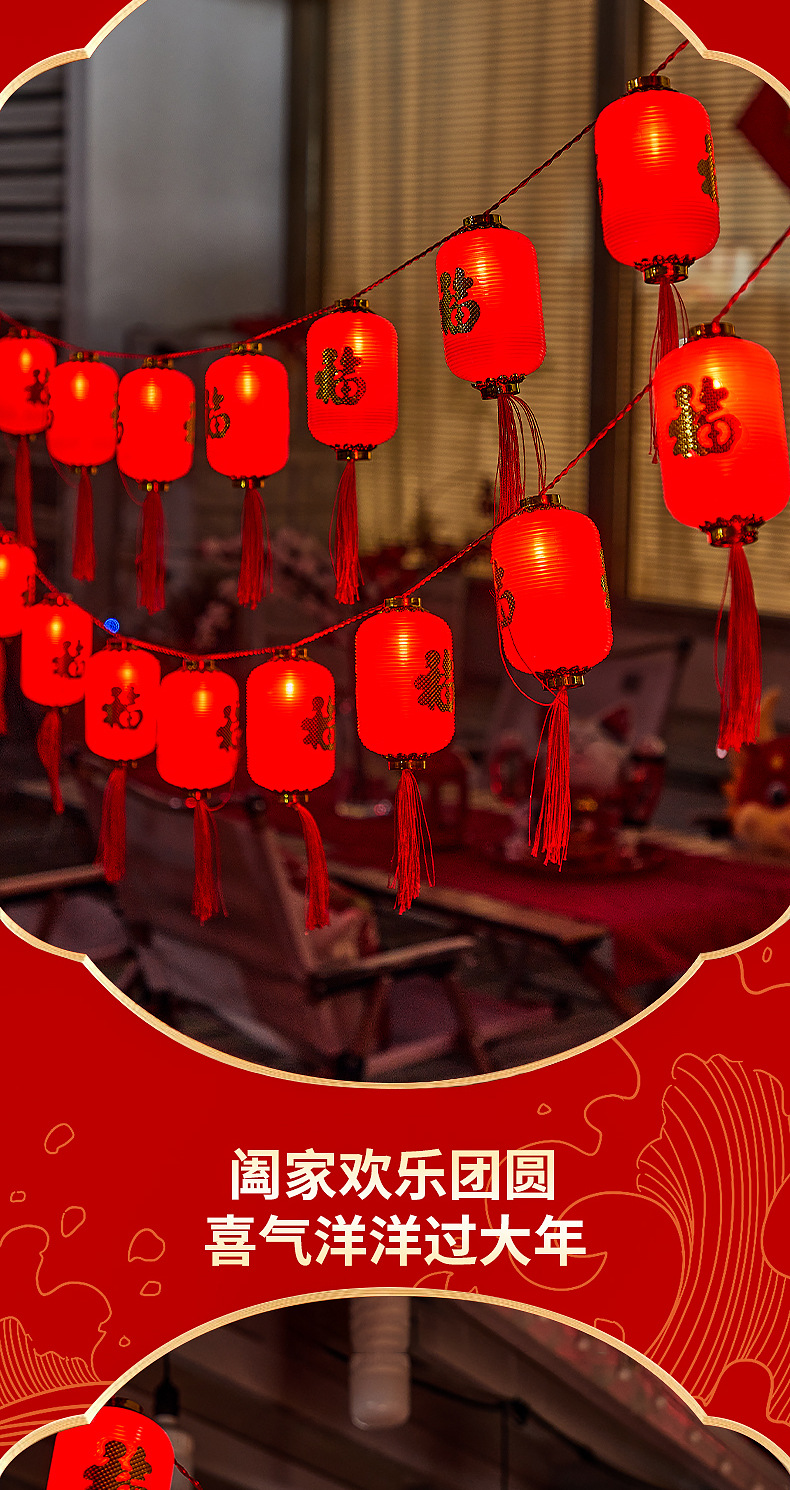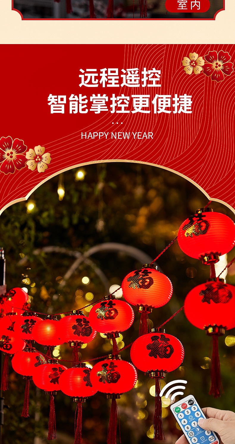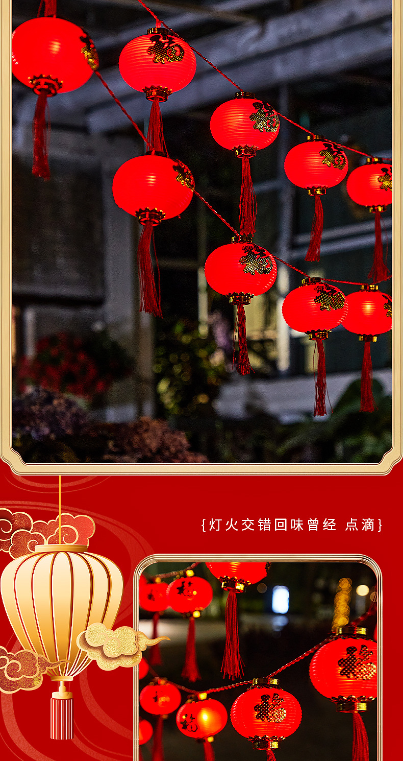 春节庭院福字红灯笼太阳能家用阳台小灯笼新春氛围防水彩灯串代发