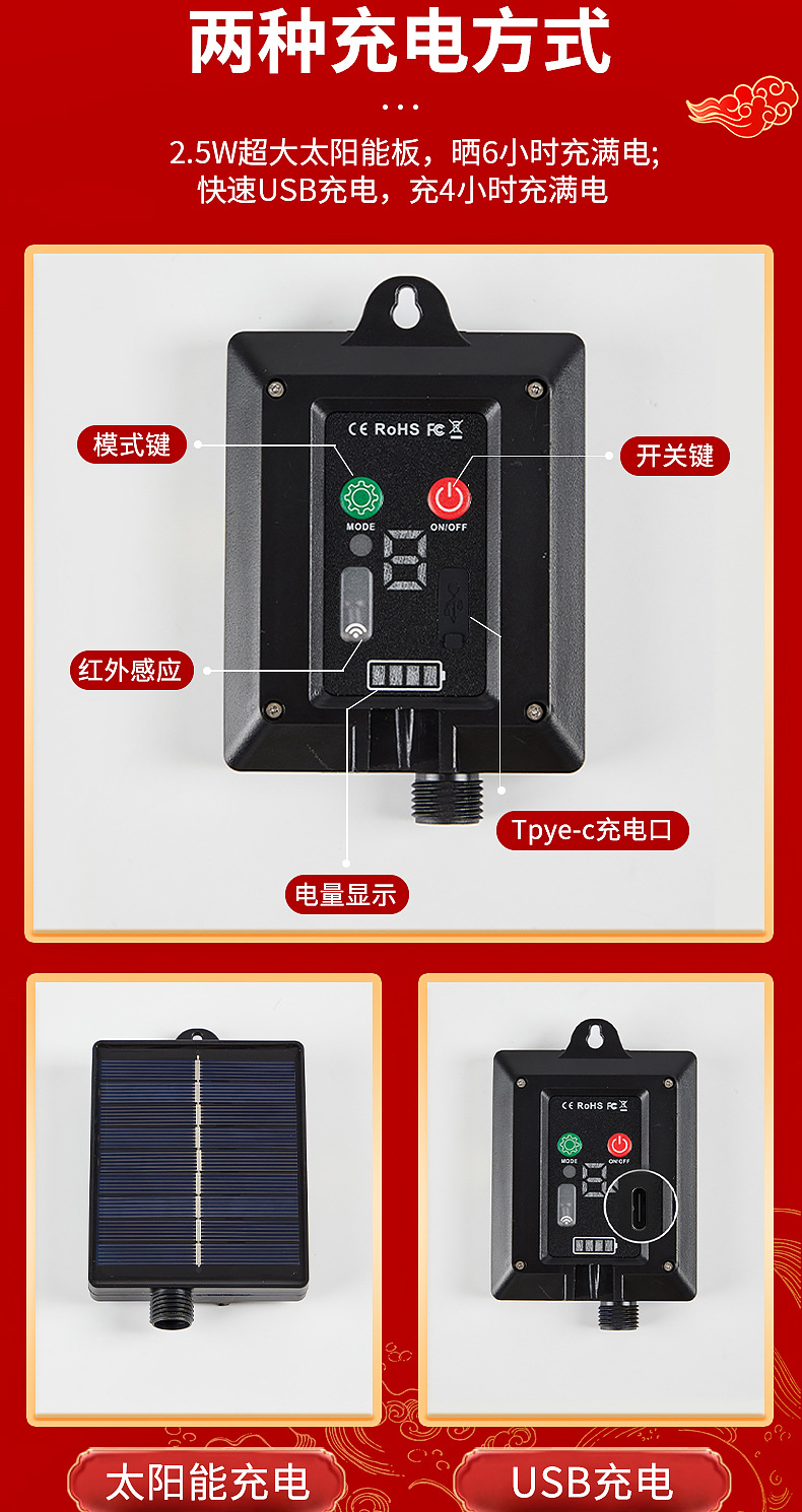 | 【太阳能款】10米36灯(2400太阳能板带遥控带充电) | USD $9.76 | 9995 piece available |