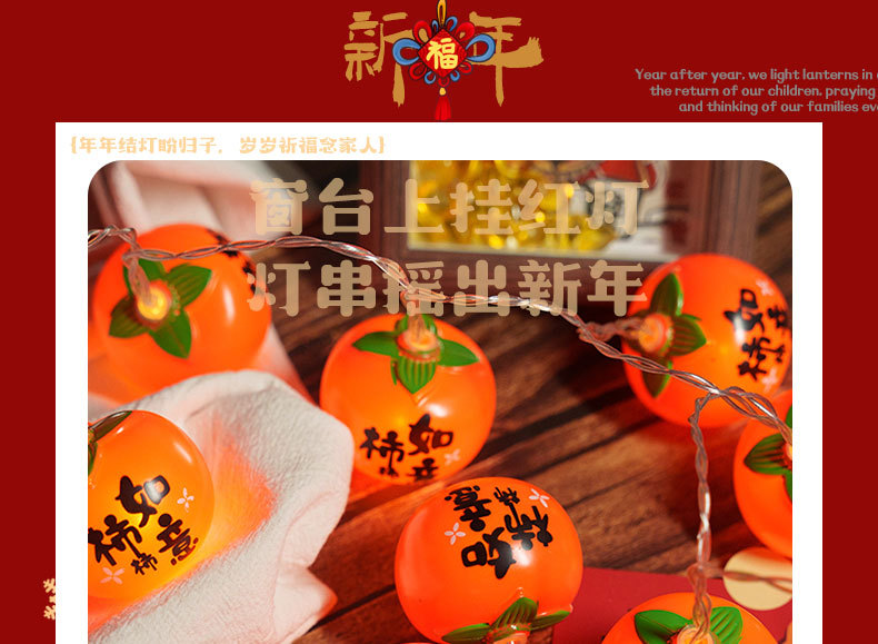 2026春节新年装饰大吉大利柿子气氛灯福字灯笼彩灯串灯马年氛围灯