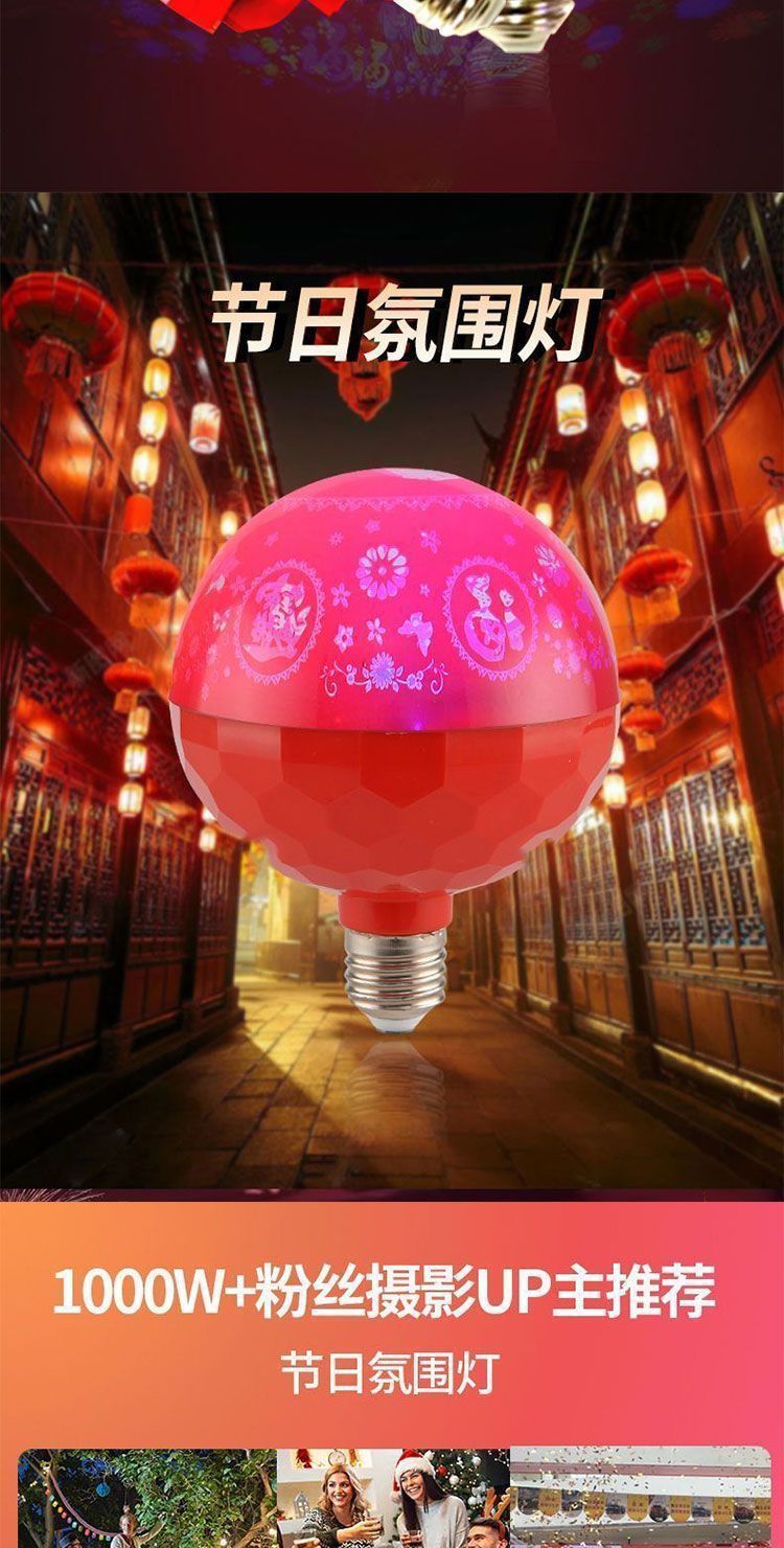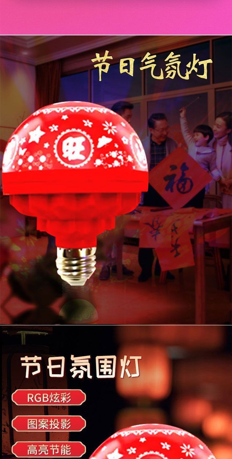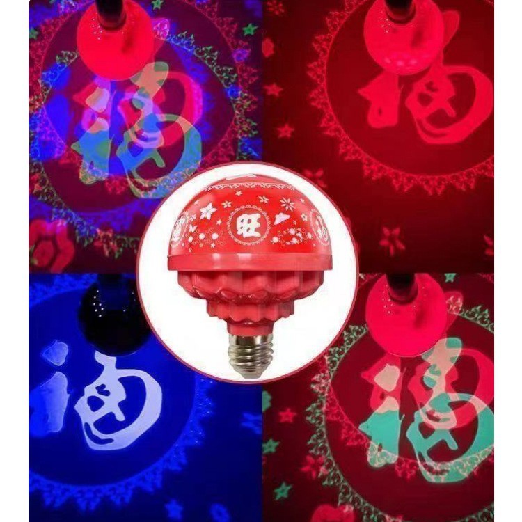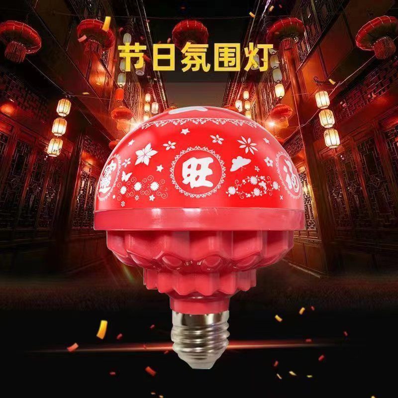 家用喜庆福字灯旋转发财led灯泡彩灯七彩过年节日家庭氛围灯灯笼