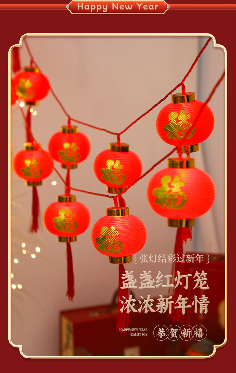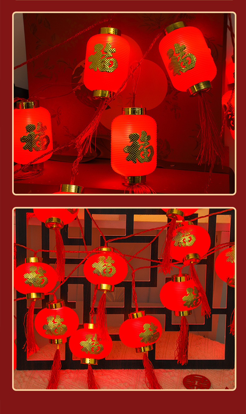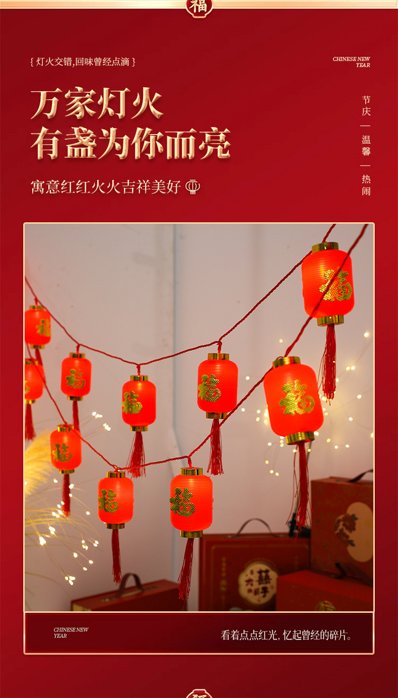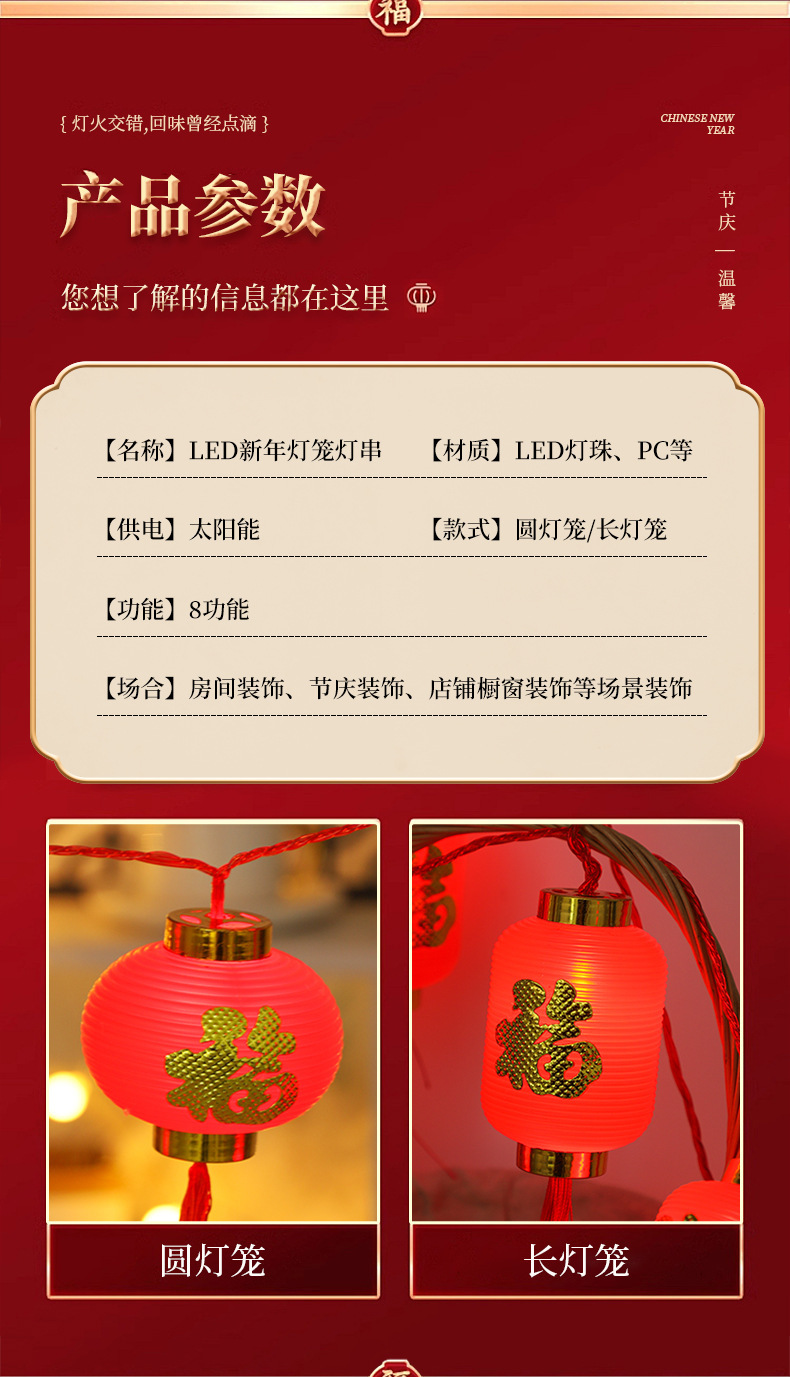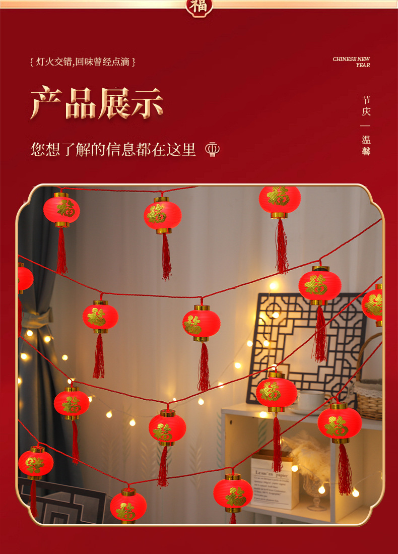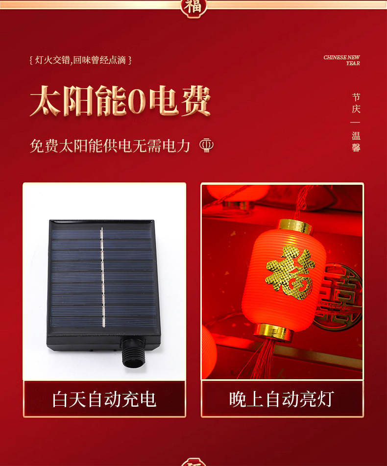 春节户外福字红灯笼太阳能灯笼灯串挂灯过年氛围布置装饰彩灯批发