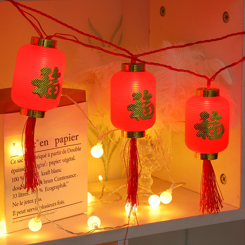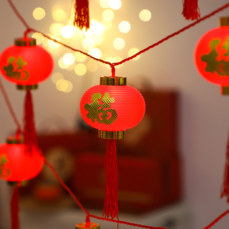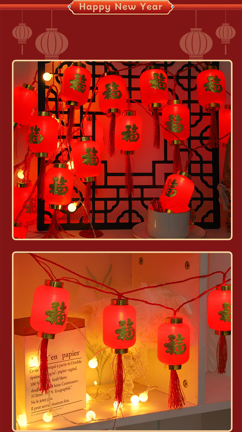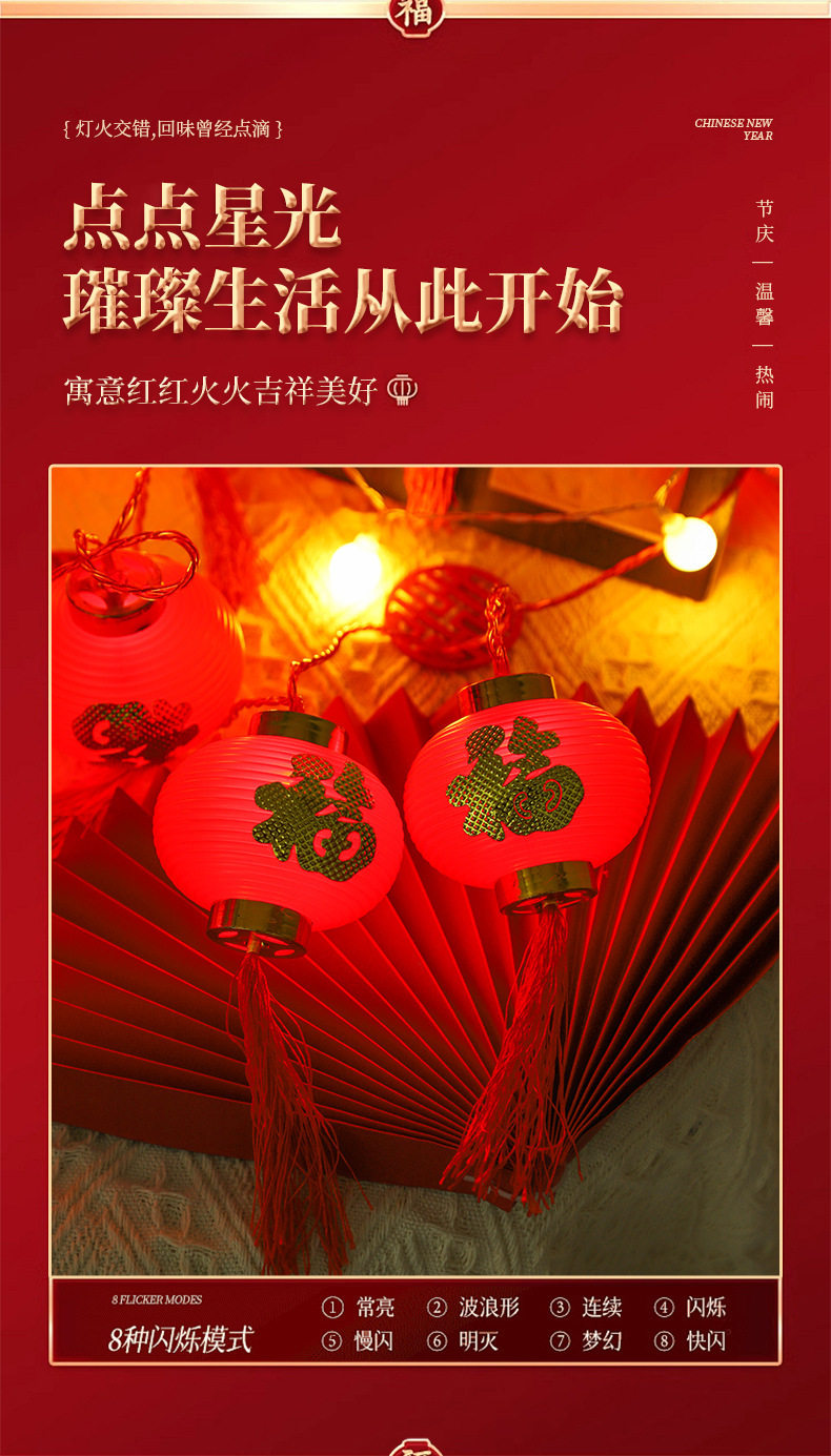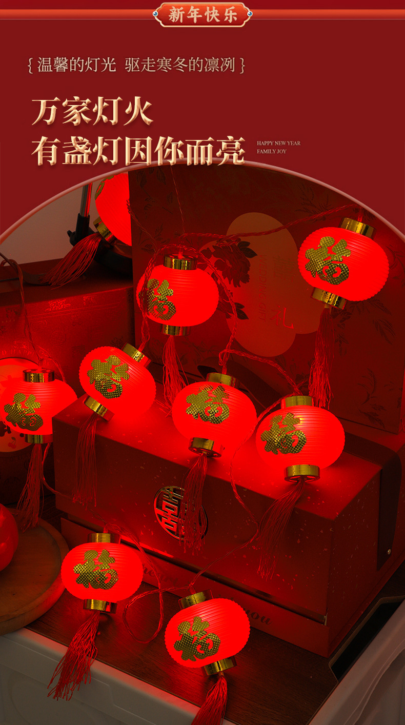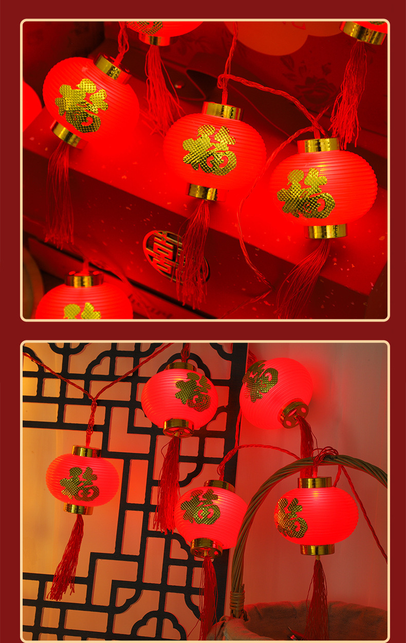 春节户外福字红灯笼太阳能灯笼灯串挂灯过年氛围布置装饰彩灯批发