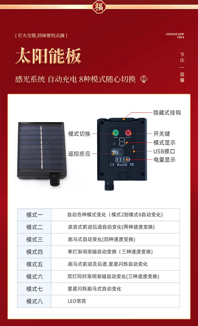 | 8米30灯-太阳能+USB双充【红线】 | USD $6.48 | 9999996 piece available |