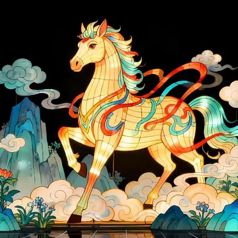 大型新年花灯马年彩灯马主题花灯展庙会春节元宵节花灯马造型厂家